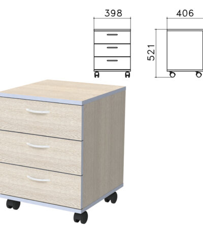 Тумба подкатная «Бюджет», 398х406х521 мм, 3 ящика, дуб шамони светлый, 402952-430
