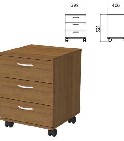 Тумба подкатная «Бюджет», 398х406х521 мм, 3 ящика, орех французский, 402952-190