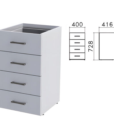 Тумба (каркас БЕЗ КРЫШКИ) приставная «Монолит», 400х416х728 мм, 4 ящика, серая, ТМ05.11