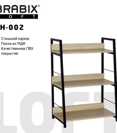 Стеллаж на металлокаркасе BRABIX «LOFT SH-002», 600х350х845 мм, цвет дуб натуральный, 641233
