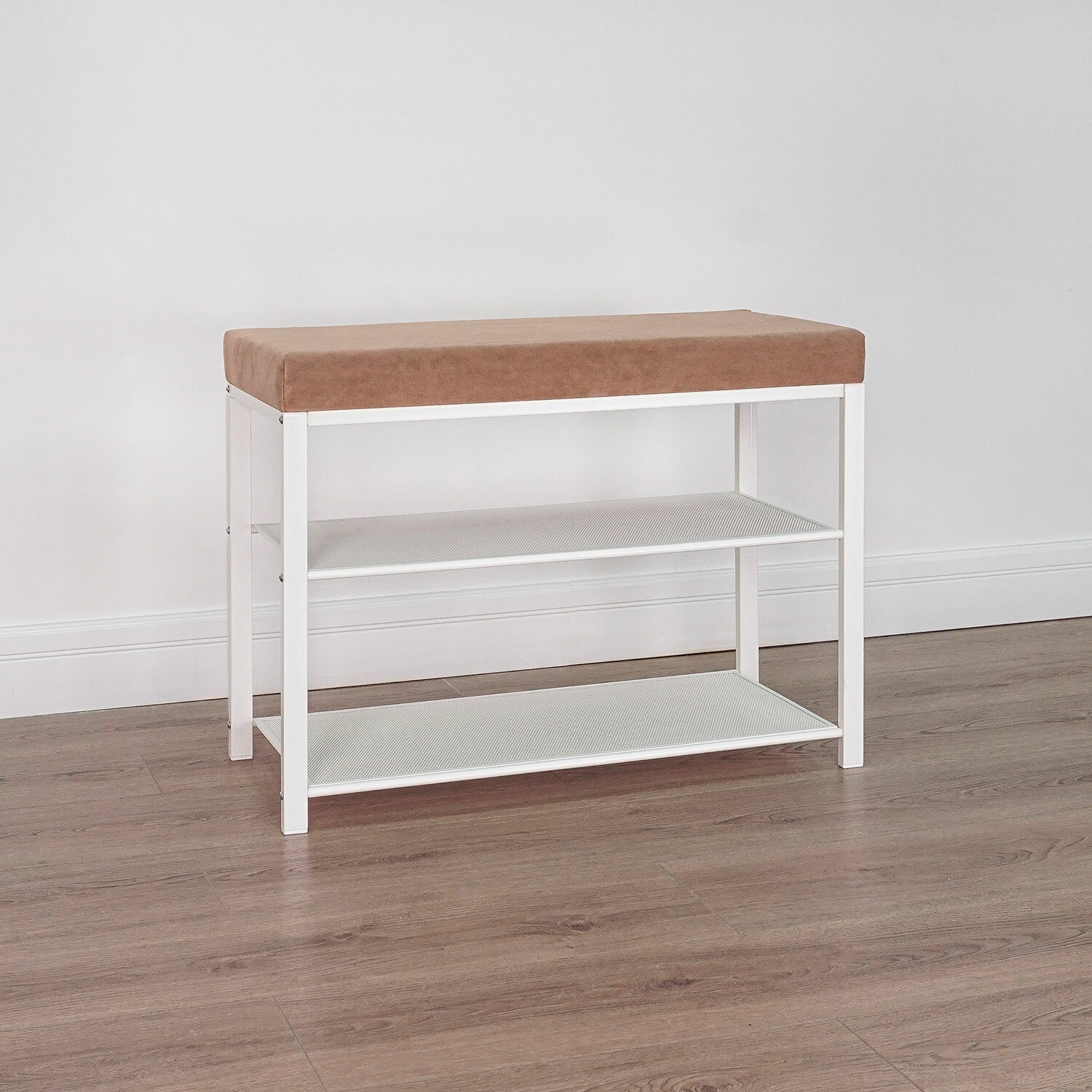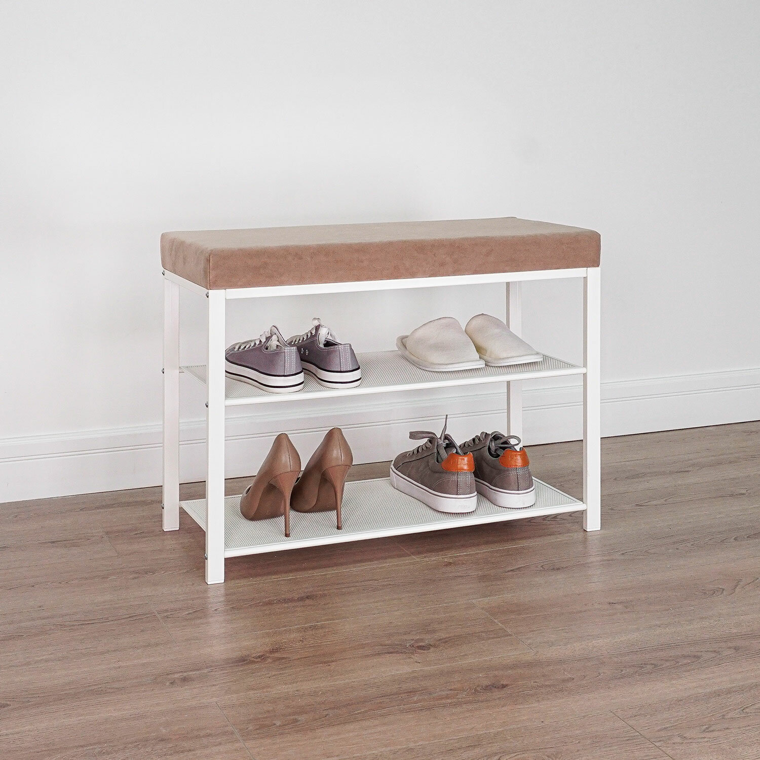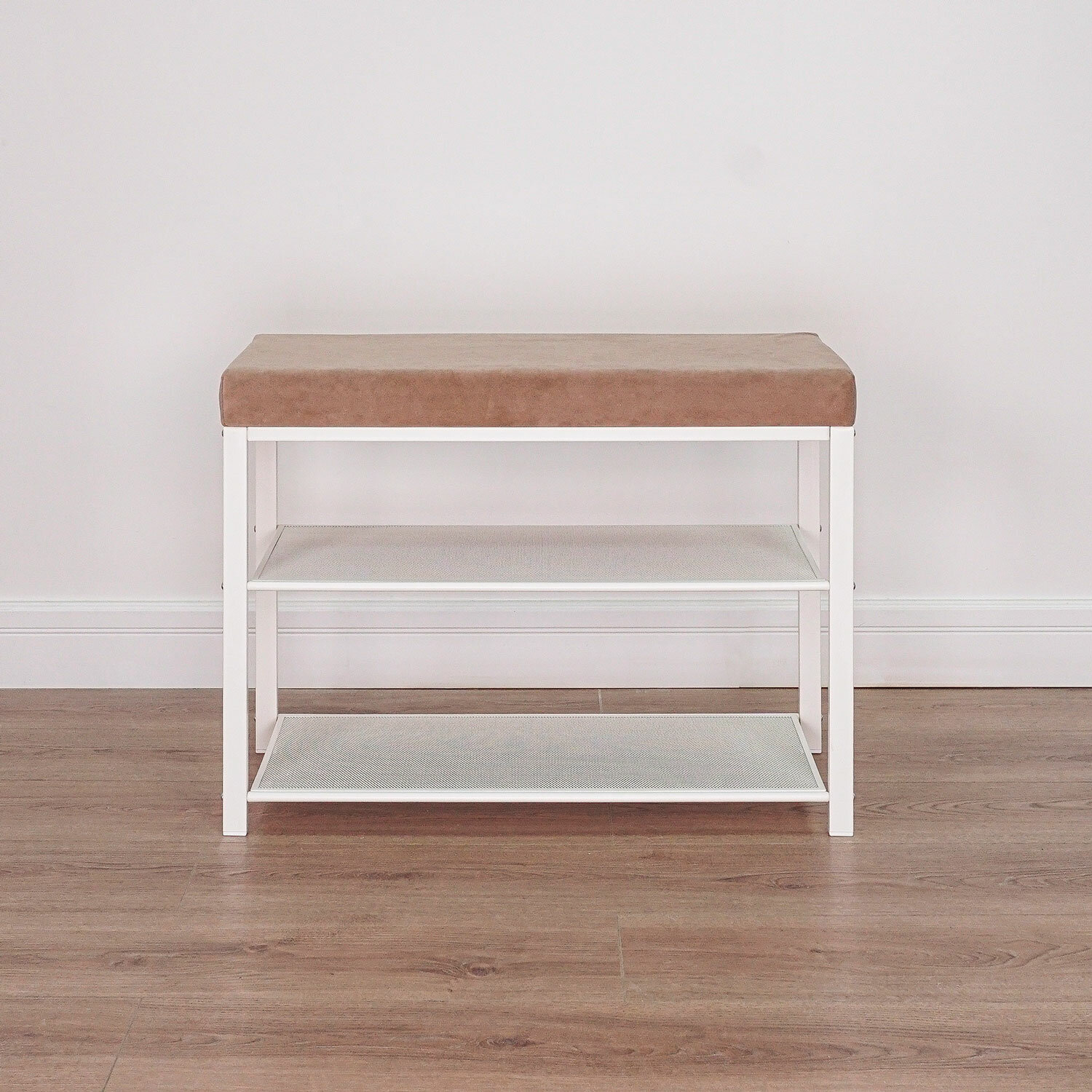 Банкетка для обуви «Торонто-23S», 670х300х490 мм, 2 полки, металл/ткань, белая/бежевая, БТ23СББ
