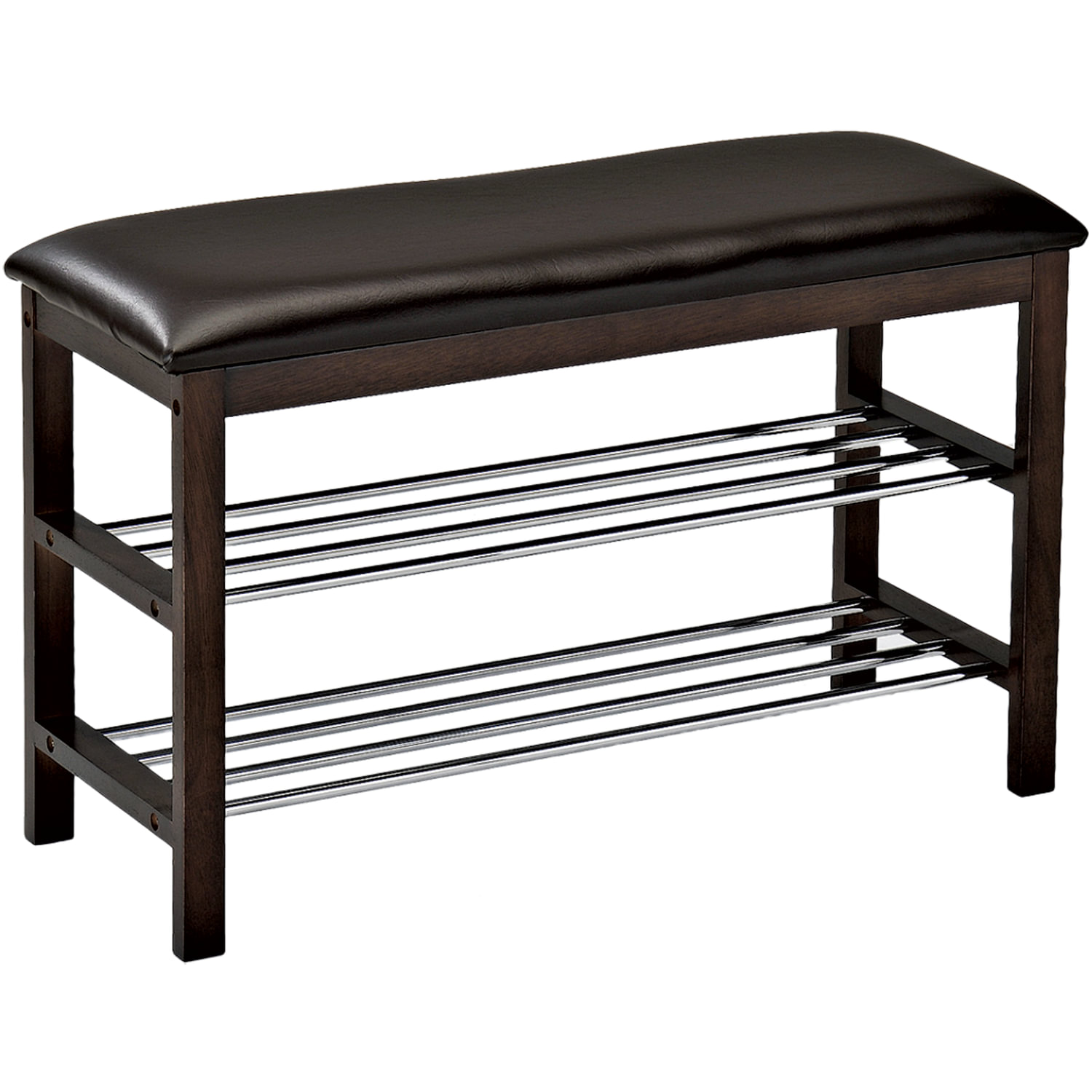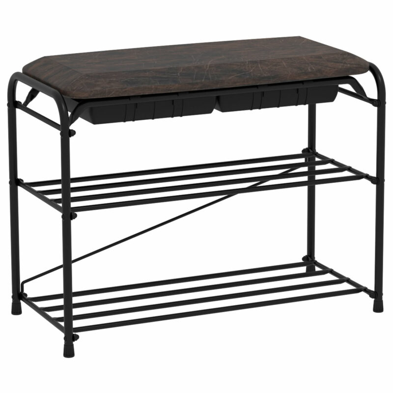 Банкетка-полка для обуви SR-0628, 760х310х490 мм, 2 отделения, дерево/металл, темный орех/хром