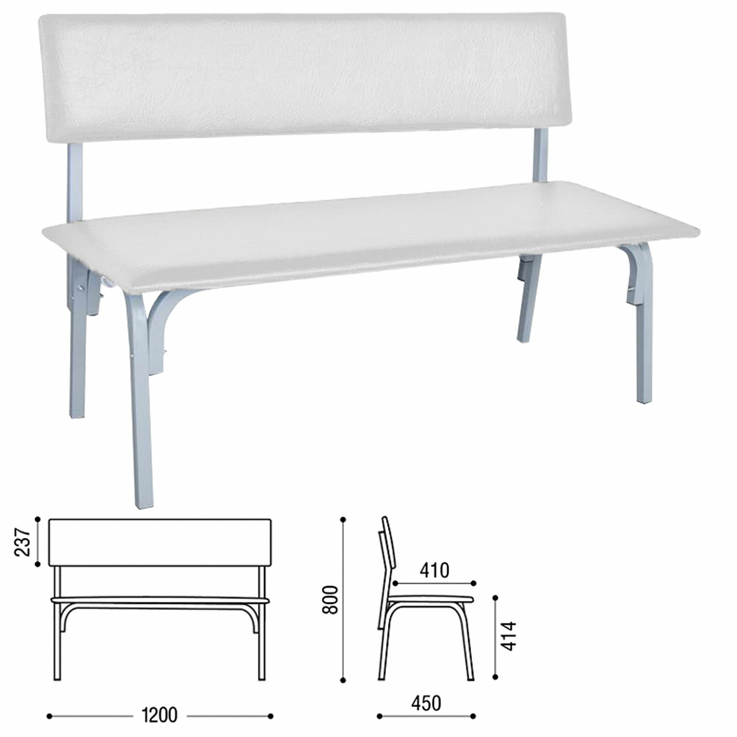 Банкетка со спинкой «Астрид», 1200х450х800 мм, каркас светло-серый, кожзам светло-серый