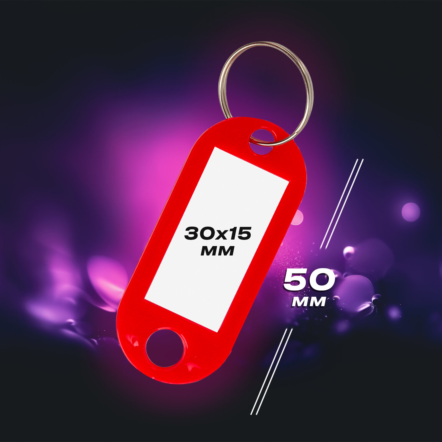 Изготовлены из эластичного пластика. Каждая бирка снабжена металлическим кольцом, белым бумажным вкладышем для маркировки, защищённым пластиковой вставкой от повреждений. Размер бирки — 50х24 мм, информационного окна — 30х15 мм. Цвет — ассорти. 12 штук в упаковке.