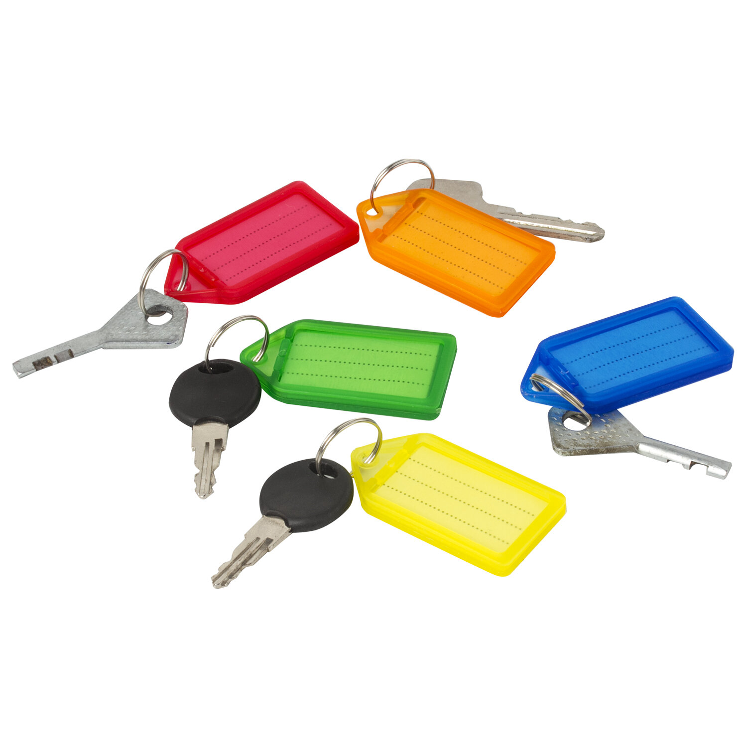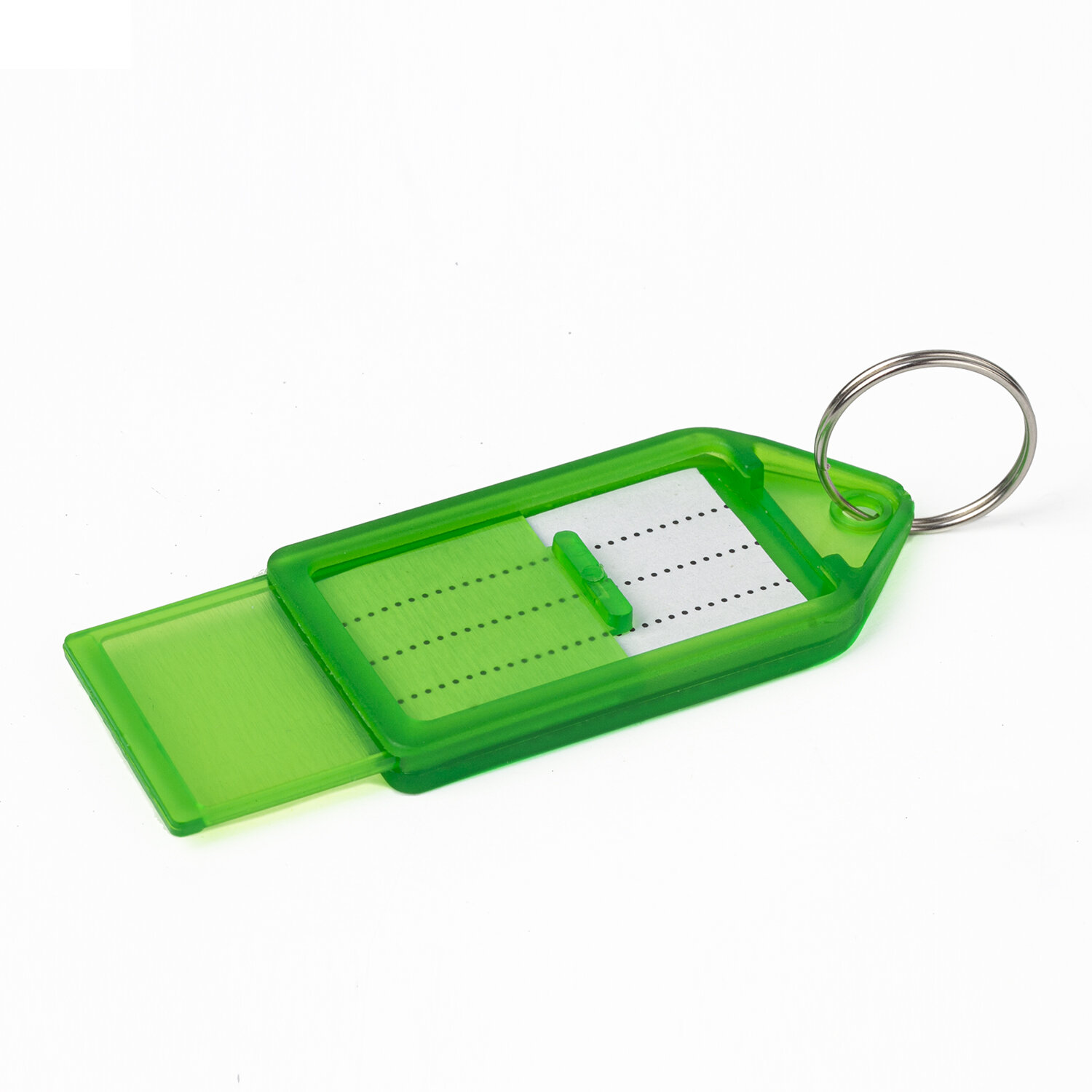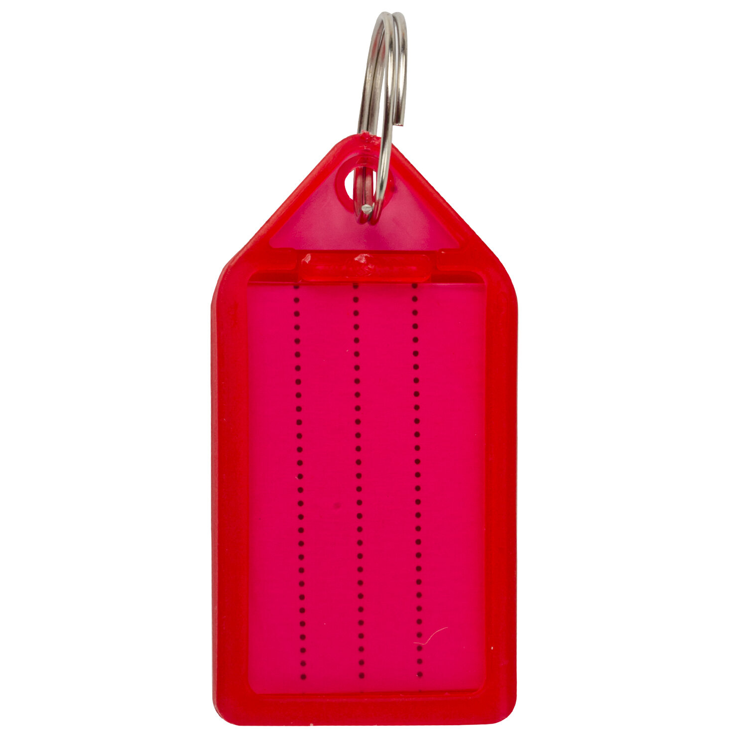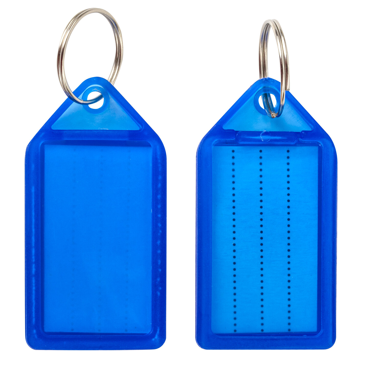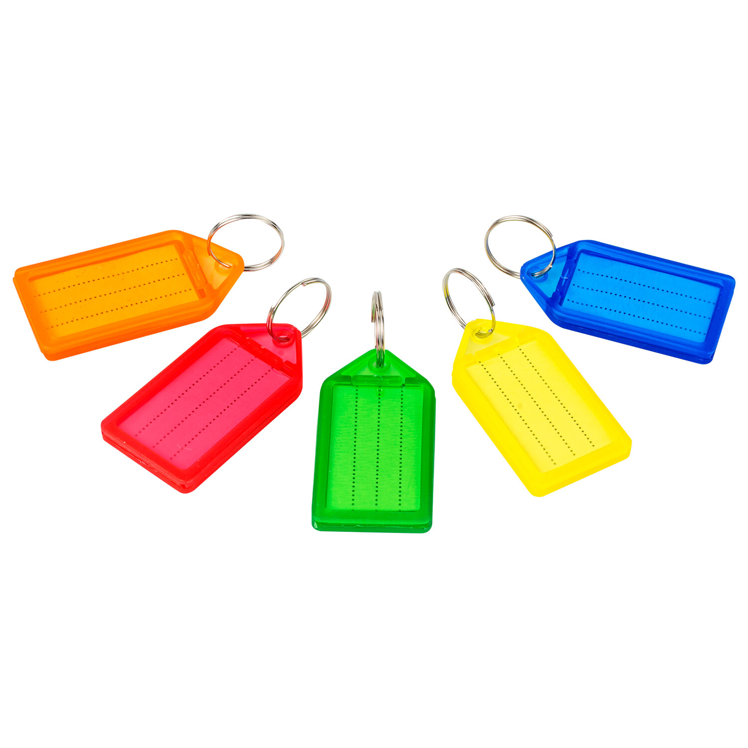 Изготовлены из пластика. Каждая бирка снабжена металлическим кольцом, белым бумажным вкладышем для маркировки, защищённым пластиковой вставкой от повреждений. Размер бирки — 55х29 мм, информационного окна — 39х22 мм. Цвет — ассорти. 20 штук в упаковке.