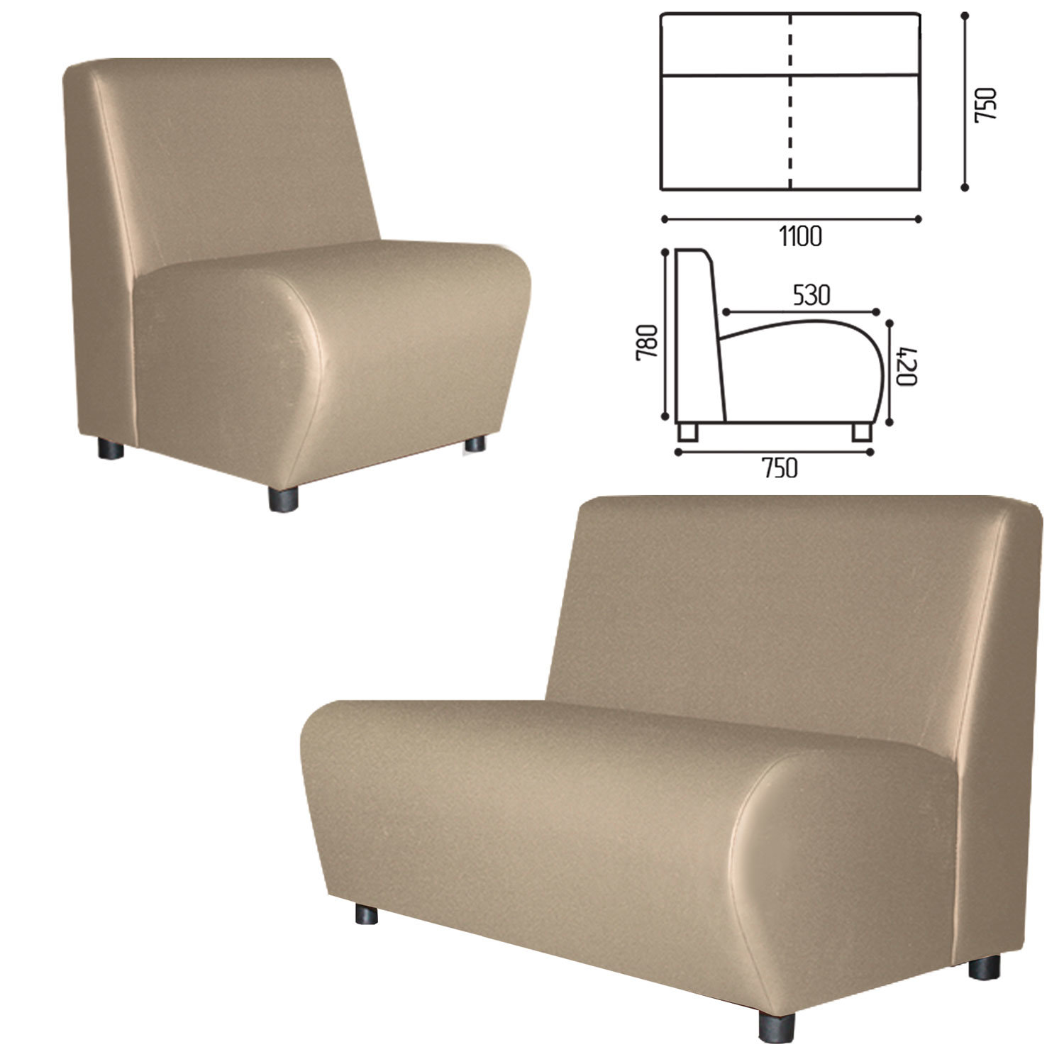 Диван мягкий двухместный «Клауд», «V-600», 1100х750х780 мм, без подлокотников, экокожа, бежевый