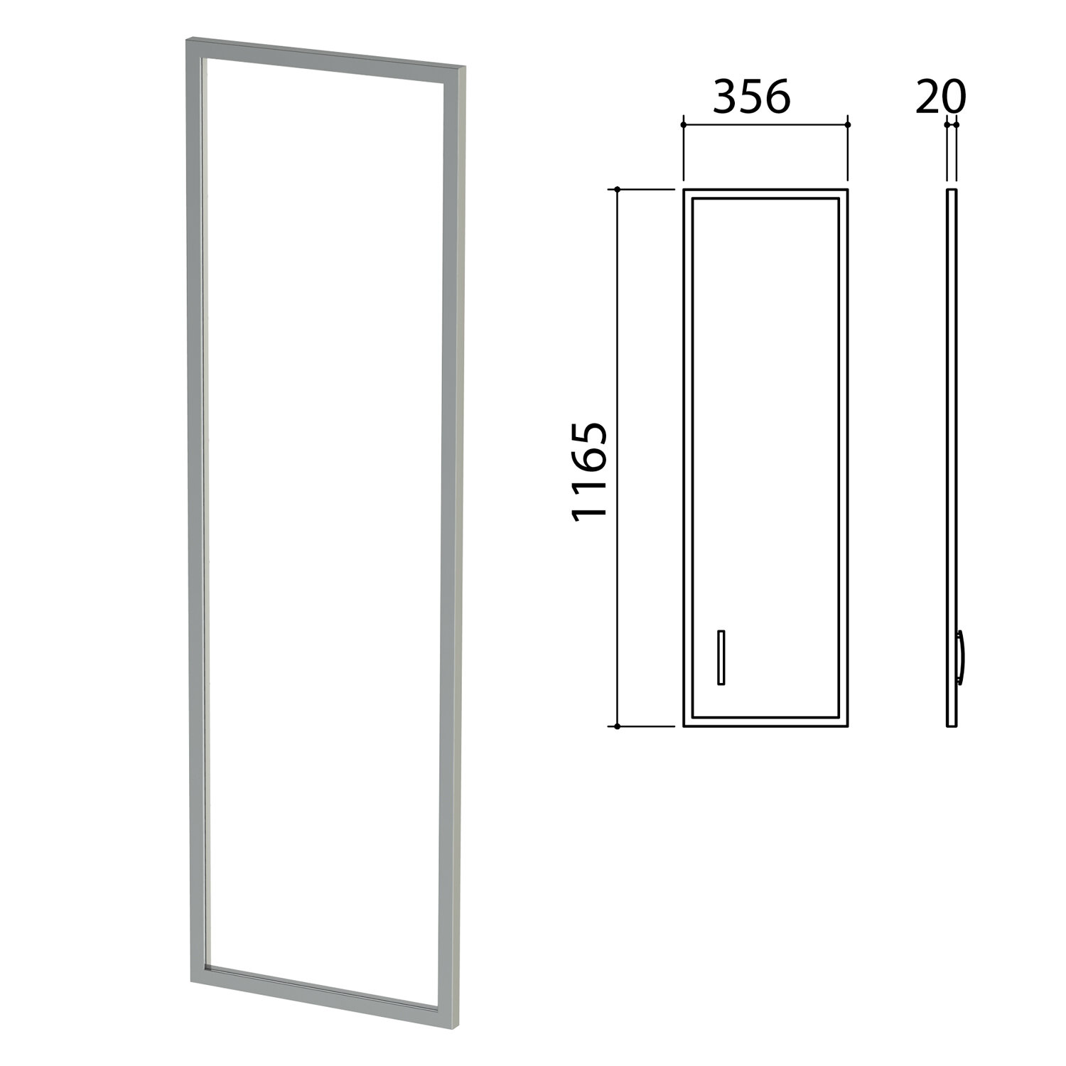 Стеклянная дверь в алюминиевой рамке (фасад) предназначена для навешивания на шкафы (стеллажи) «Приоритет». ВНИМАНИЕ! Стеклянную дверь необходимо доукомплектовать фурнитурой — код 640429.