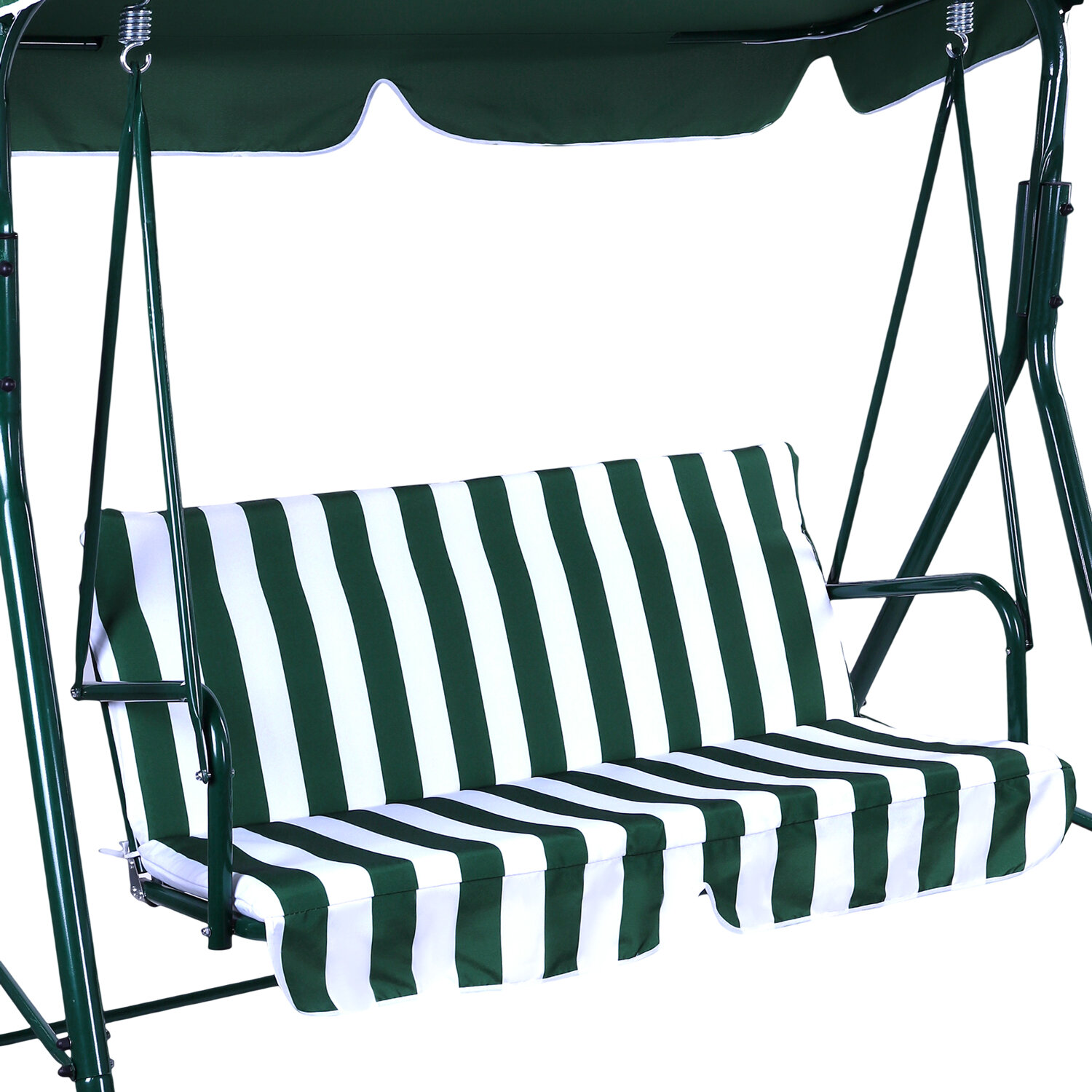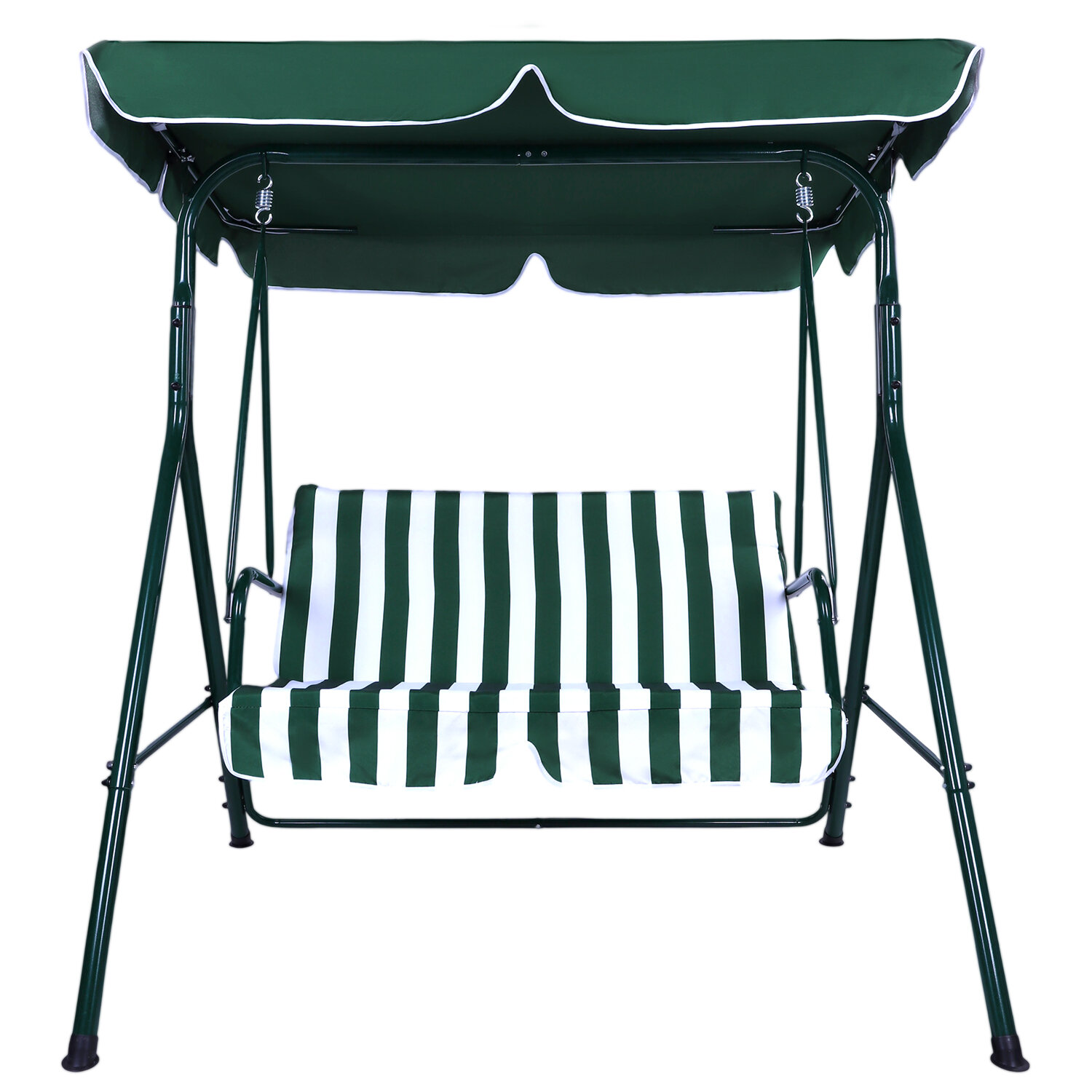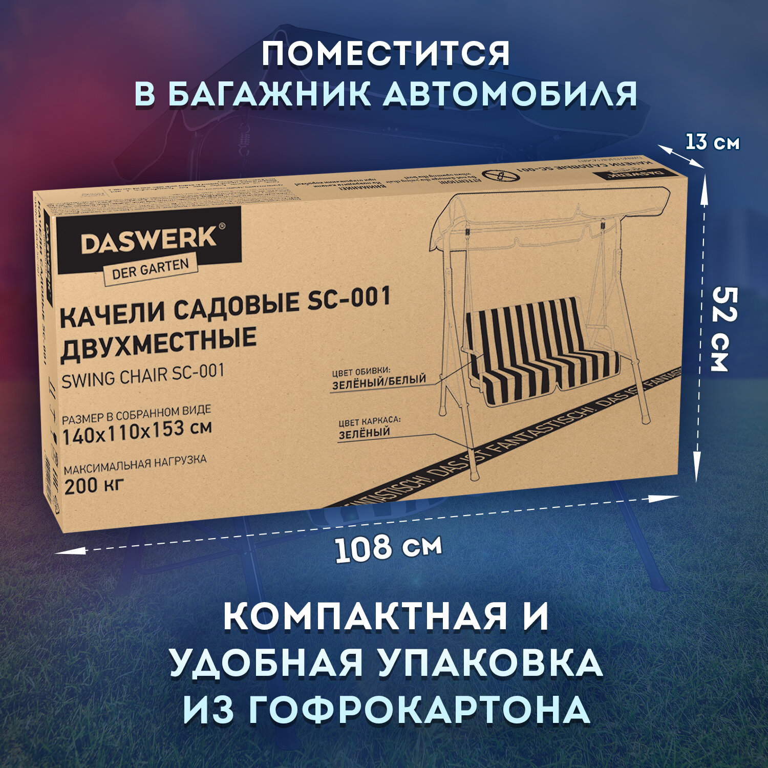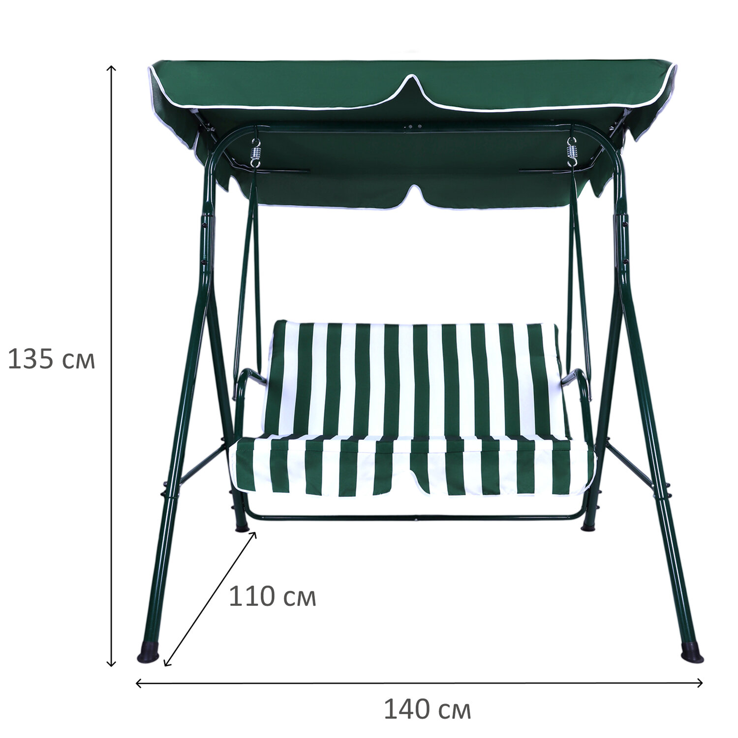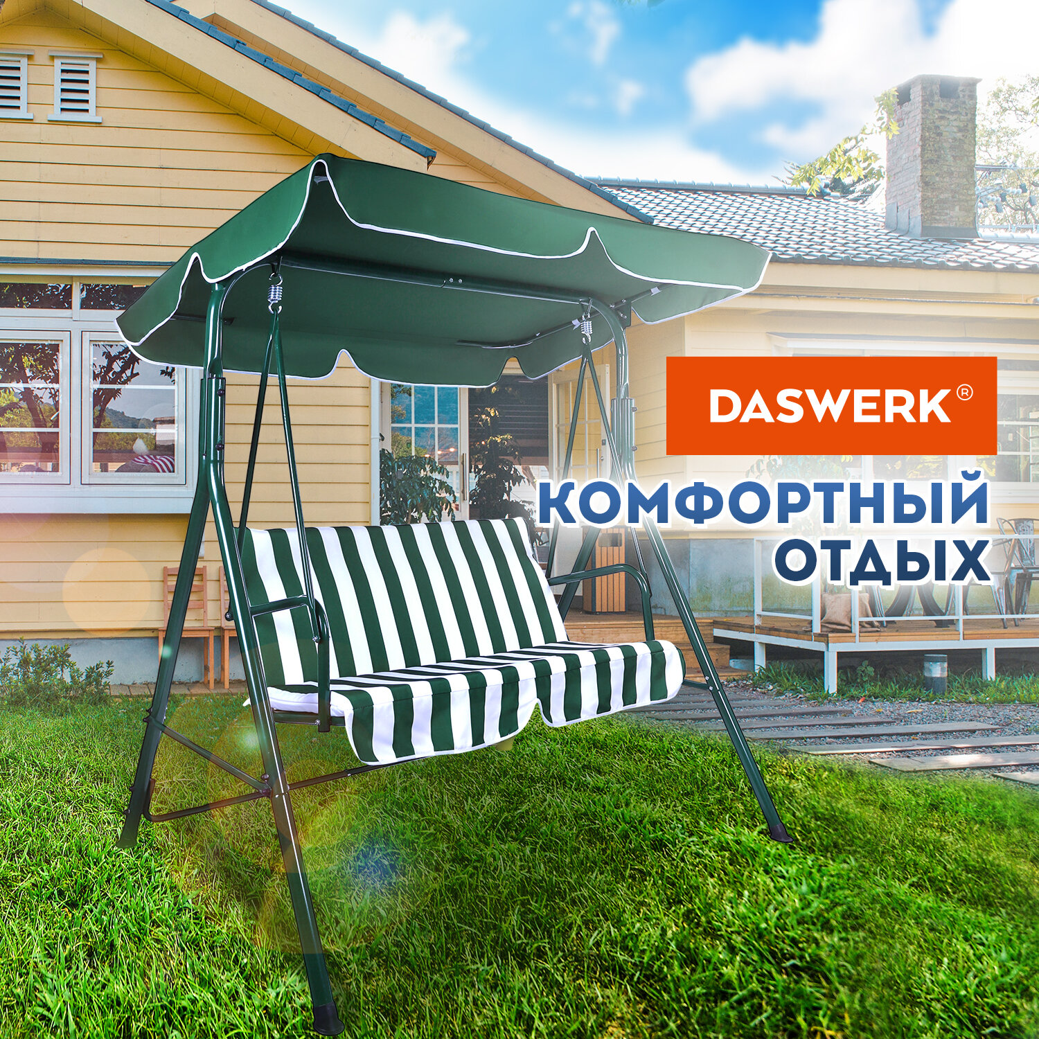 Качели садовые DASWERK (ДАСВЕРК) «RELAX SC-001», 2 места, Ш140хГ110хВ153 см, мягкое сиденье, зеленый/белый, 680050