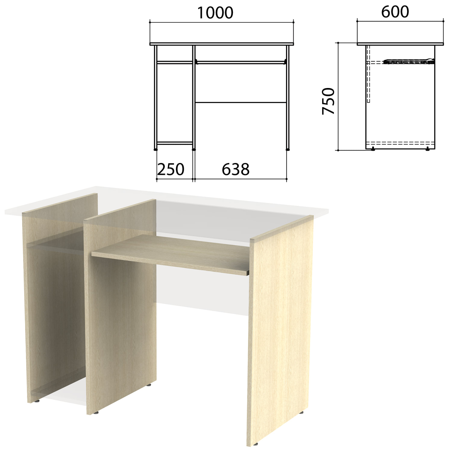 Каркас к столу компьютерному «Канц» 1000х600х750 мм, цвет дуб молочный, СК24.15.2
