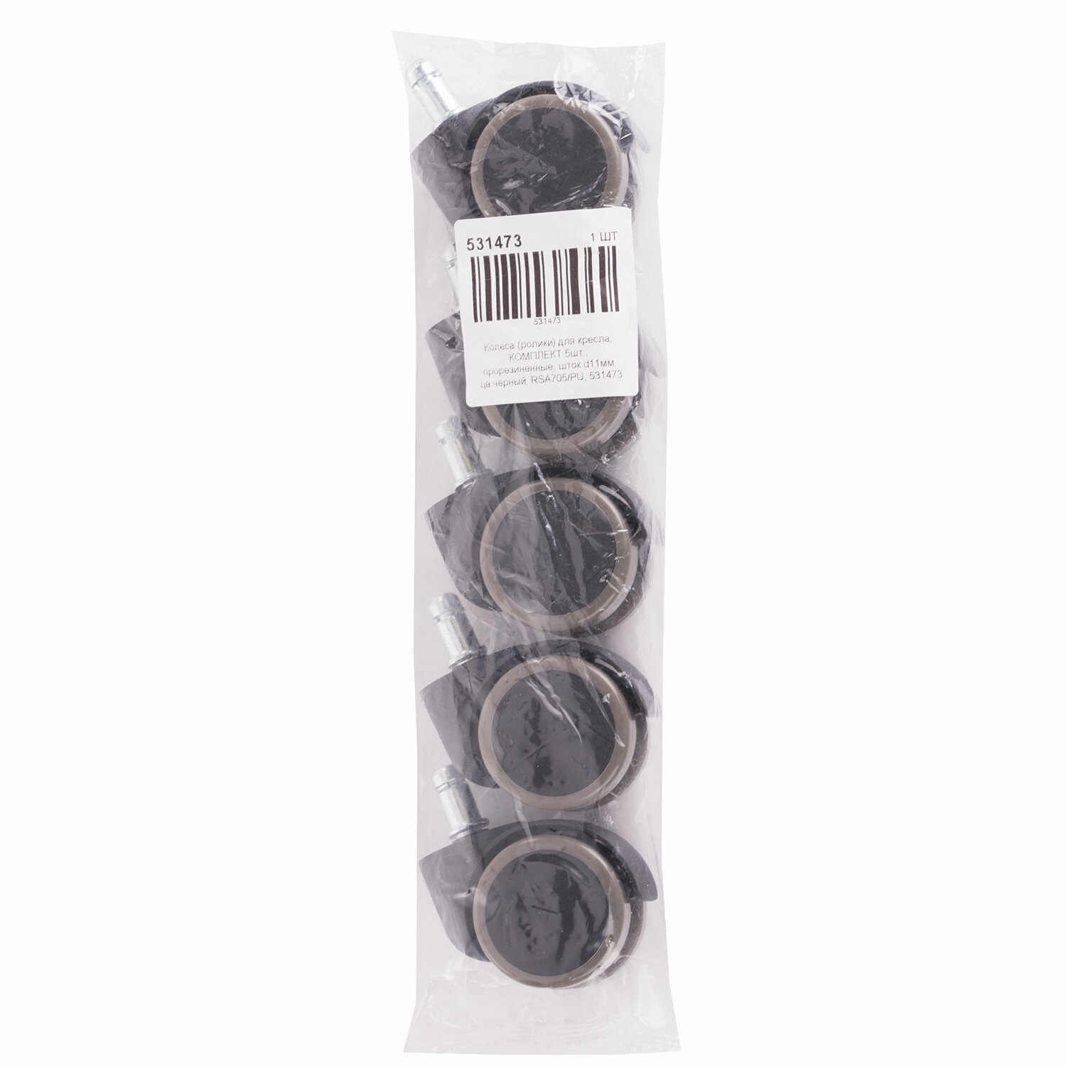 Колеса (ролики) для кресла, комплект 5 шт., прорезиненные, шток d — 11 мм, цвет черный