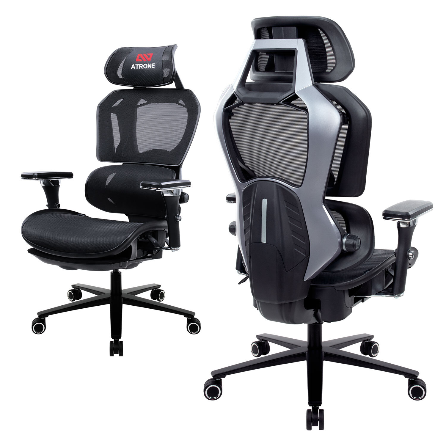 Кресло ATRONE (АТРОН) «Optimus ER-707», адаптивный механизм со слайдером, сетка, черный/серый, 532967