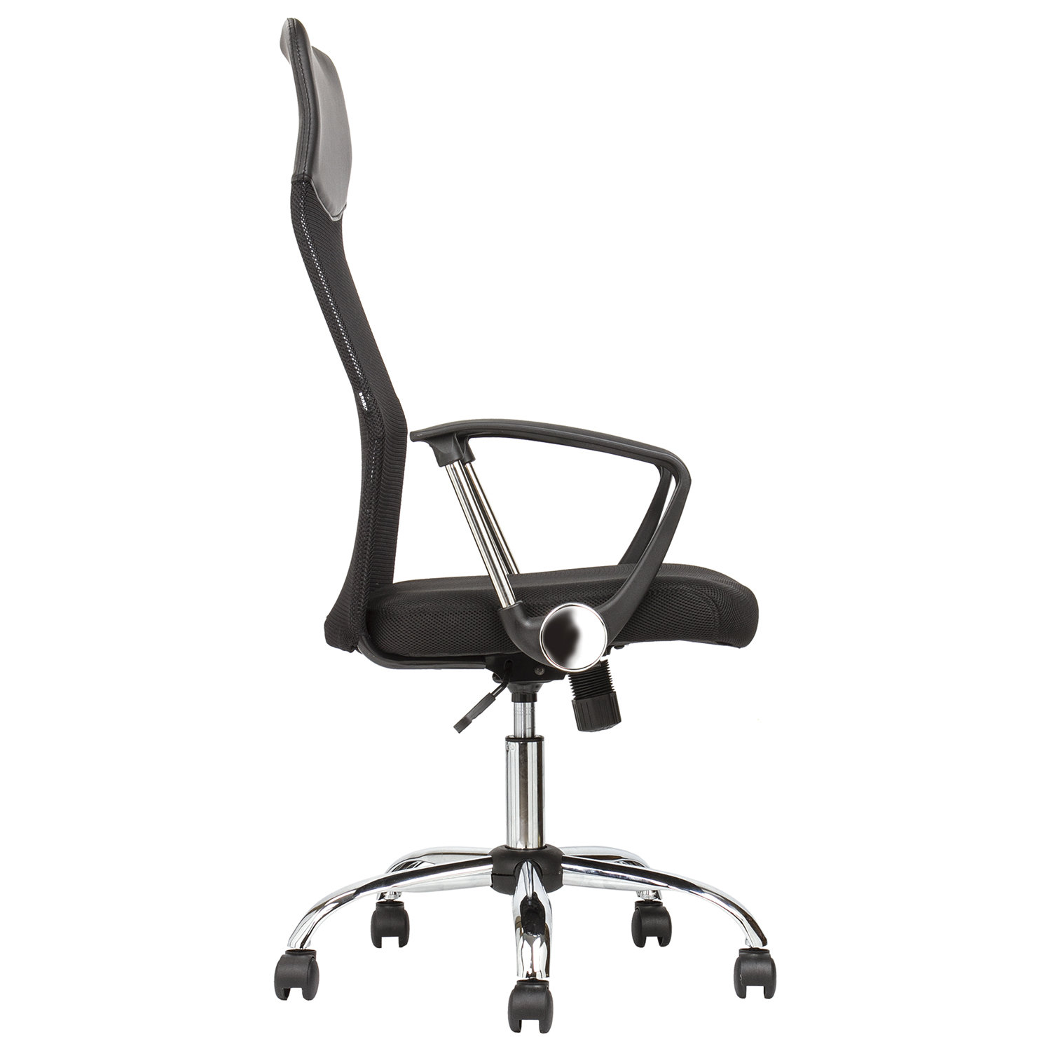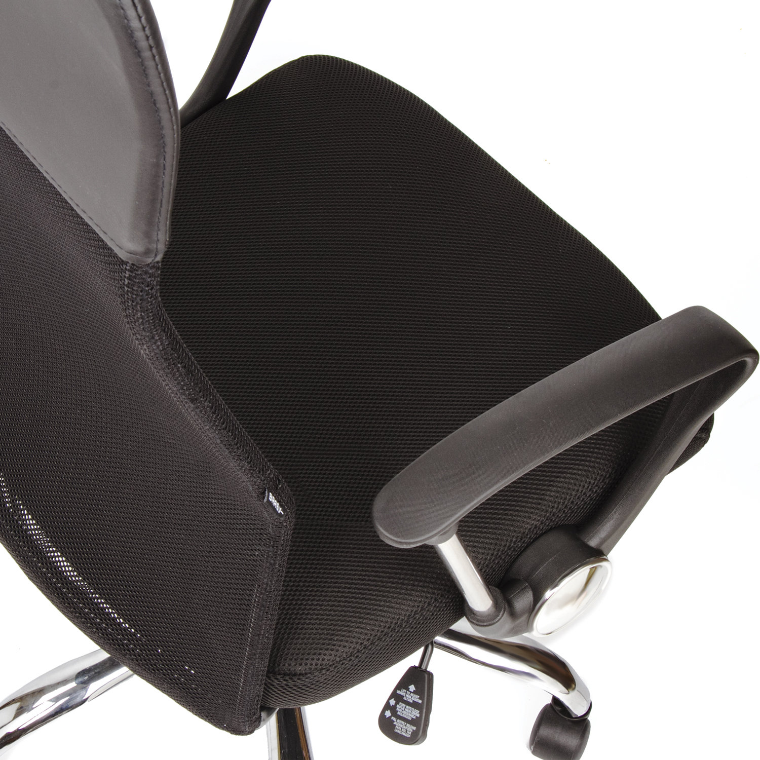 Спинка кресла выполнена из прочного сетчатого акрила. Материал обладает высокой воздухопроницаемостью, легко чистится, способен подстраиваться под физиологические изгибы спины, при этом сохраняет форму и не растягивается. Верхняя, наиболее подверженная износу, часть спинки изготовлена из экокожи. Помимо этого в области поясницы предусмотрена специальная вставка из эластичной ленты для дополнительной поддержки спины.В обивке сиденья использована технологичная ткань серии TW — сложный композитный материал толщиной 5-7 мм, состоящий из нескольких слоев тканных и нетканых компонентов. Материал отлично пропускает воздух, устойчив к износу, долго сохраняет цвет, неприхотлив в уходе. Каркас спинки изготовлен из двух металлических труб вставленных друг в друга — это уникальное конструкторское решение позволяет добиться высоких показателей жесткости. Кресло оснащено механизмом качания «топ-ган» с регулировкой под вес пользователя и возможностью фиксации спинки в рабочем положении.В основании кресла прочное металлическое пятилучие и надежный газпатрон. Конструкцией предусмотрена нагрузка до 110 кг.