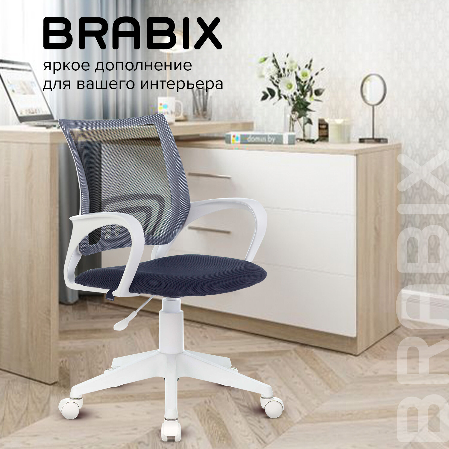 BRABIX «Fly MG-396» — доступное, качественное кресло с эргономичной сетчатой спинкой на белом пластике. Прекрасный вариант для повседневной работы в офисе и дома.