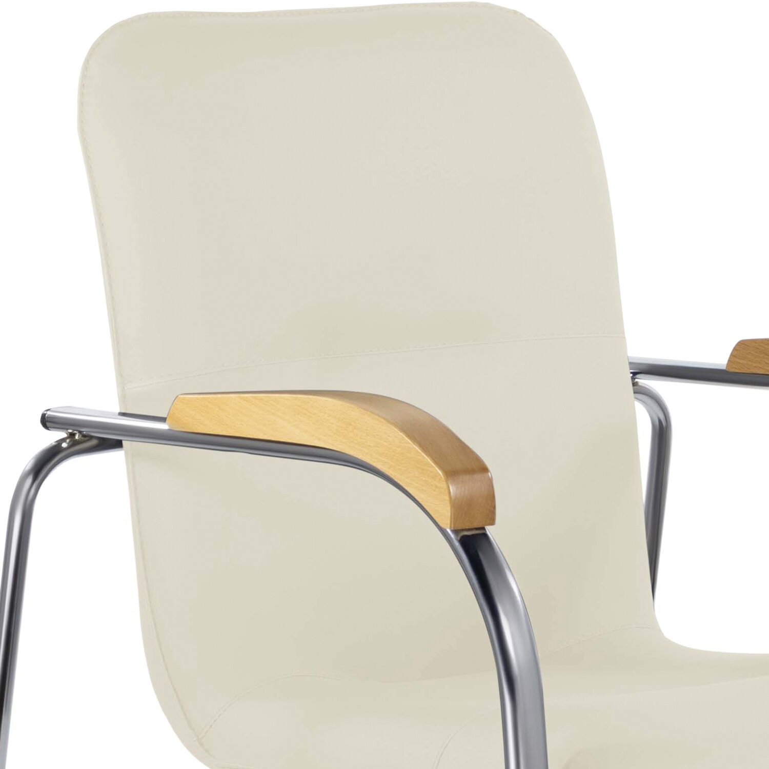 В отличие от своих аналогов, «Samba» марки BRABIX отличается более аккуратным исполнением. Чехол плотно обтягивает монолитный каркас из утолщенной 7-слойной фанеры. Плотность набивки также увеличена, что продлевает срок службы изделия. Материал — пенополиуретан (жесткость — 24, плотность — 18 кг/м3).Хромированная металлическая рама способна выдержать нагрузку 120 кг. Передние ножки — плоскоовальная труба сечением 30х15 мм и толщиной стенки 1,2 мм. Задние опоры — круглая труба диаметром 16 мм, толщиной стенки 1,2 мм.Подлокотники имеют накладки из натурального дерева, покрытого полиуретановым лаком.Кресла можно штабелировать до 5 штук в стопке.