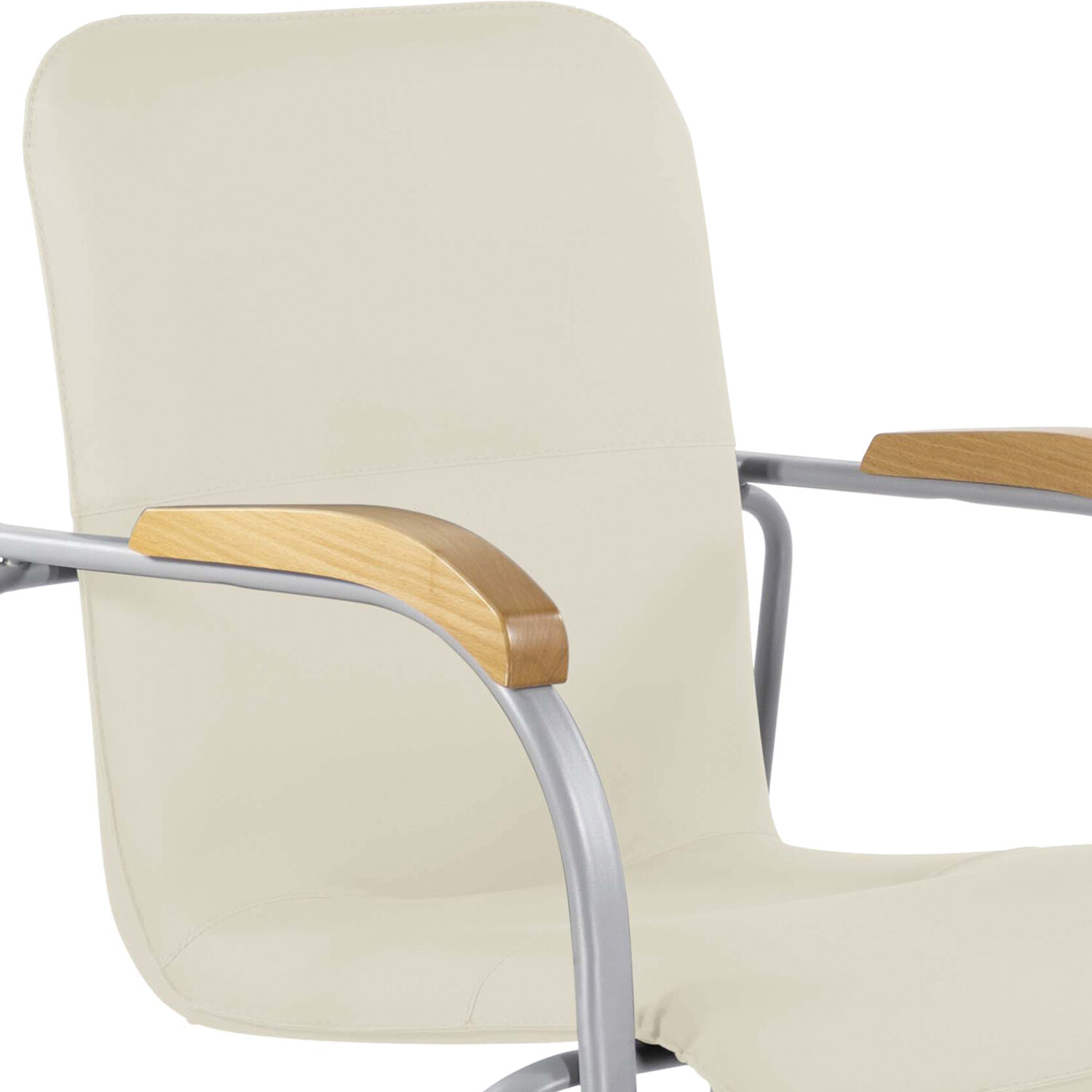 В отличие от своих аналогов, «Samba» марки BRABIX отличается более аккуратным исполнением. Чехол плотно обтягивает монолитный каркас из утолщенной 7-слойной фанеры. Плотность набивки также увеличена, что продлевает срок службы изделия. Материал — пенополиуретан (жесткость — 24, плотность — 18 кг/м3).Металлическая рама покрашена в серый цвет, способна выдержать нагрузку 120 кг. Передние ножки — плоскоовальная труба сечением 30х15 мм и толщиной стенки 1,2 мм. Задние опоры — круглая труба диаметром 16 мм, толщиной стенки 1,2 мм.Подлокотники имеют накладки из натурального дерева, покрытого полиуретановым лаком.Кресла можно штабелировать до 5 штук в стопке.