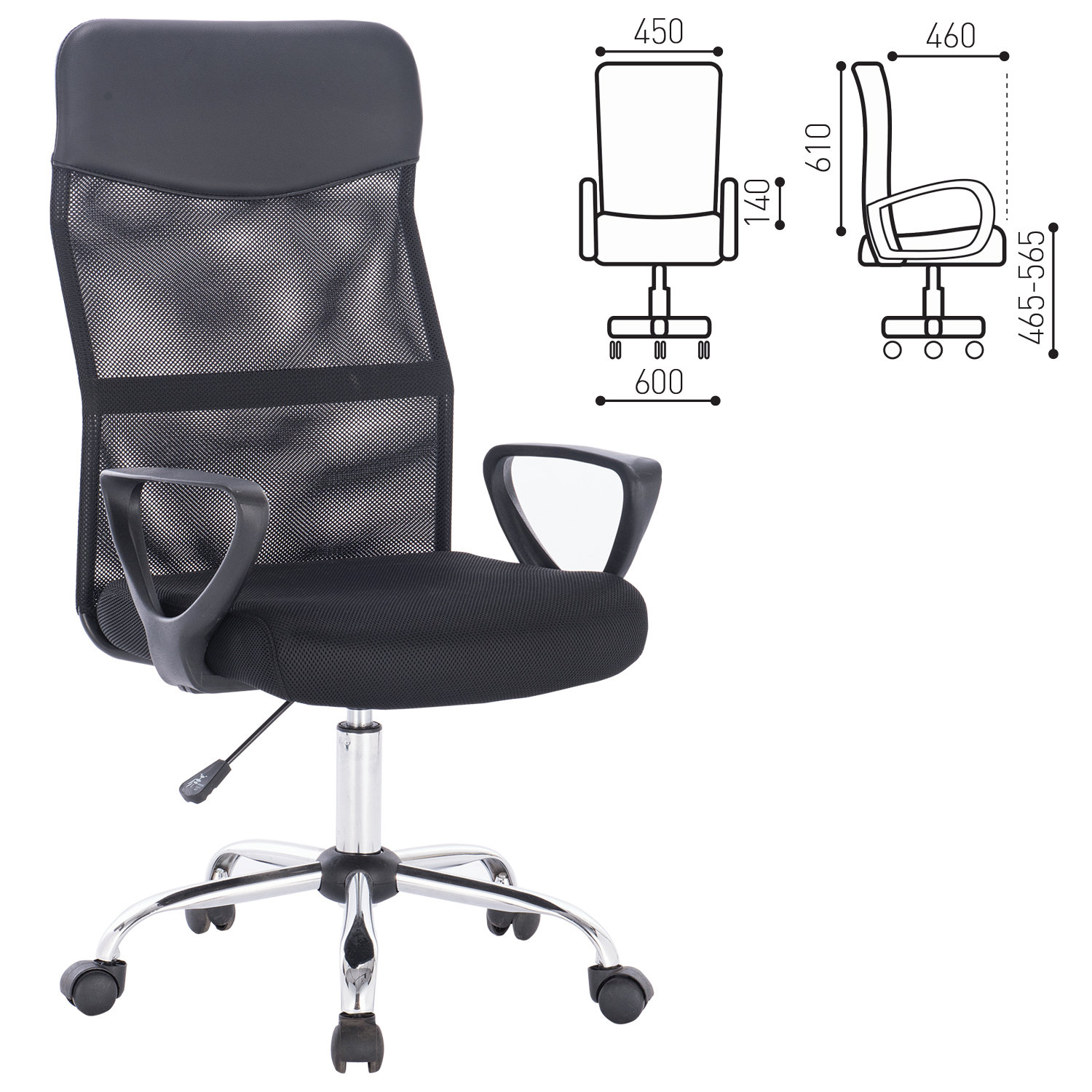 Кресло BRABIX «Tender MG-330», с подлокотниками, хром, черное, 531845