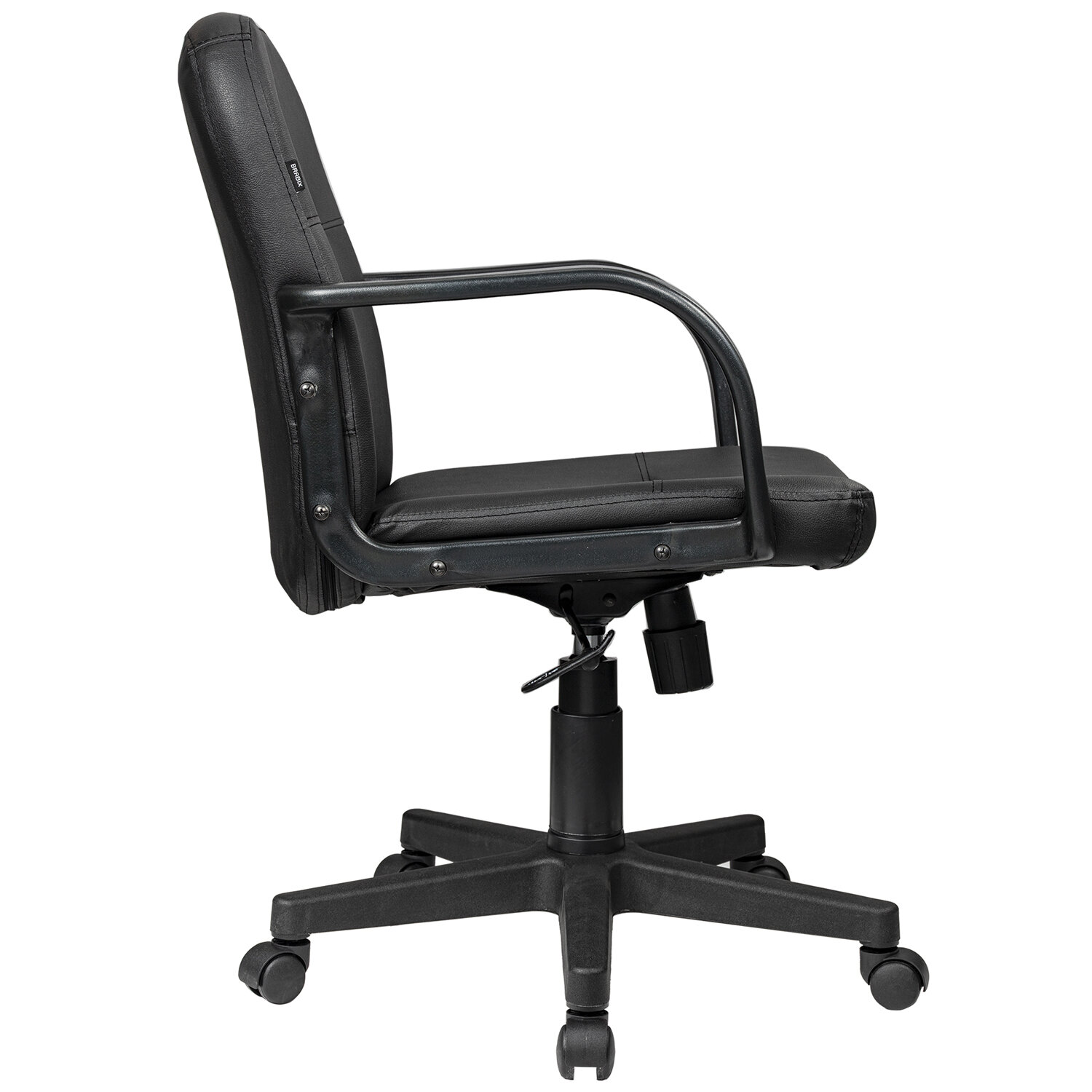 Данное кресло коренным образом отличается от аналогов. Его конструкция усилена мощным металлическим кронштейном, соединяющим спинку и сиденье. Этот узел придает каркасу кресла исключительную прочность и надежность, делает кресло более устойчивым, снижает нагрузку на спину, исключает нежелательный люфт. В обивке кресла использован материал кожзам, практичный и неприхотливый в уходе. Надежный механизм «Top Gun» гарантирует хорошую поддержку спины и комфорт за счет возможности свободного качания с фиксацией в одном рабочем положении и регулировкой усилия качания под вес сидящего, позволяет регулировать высоту сиденья.В основании кресла — прочное пластиковое пятилучие и надежный газпатрон. Конструкцией предусмотрена нагрузка до 100 кг.