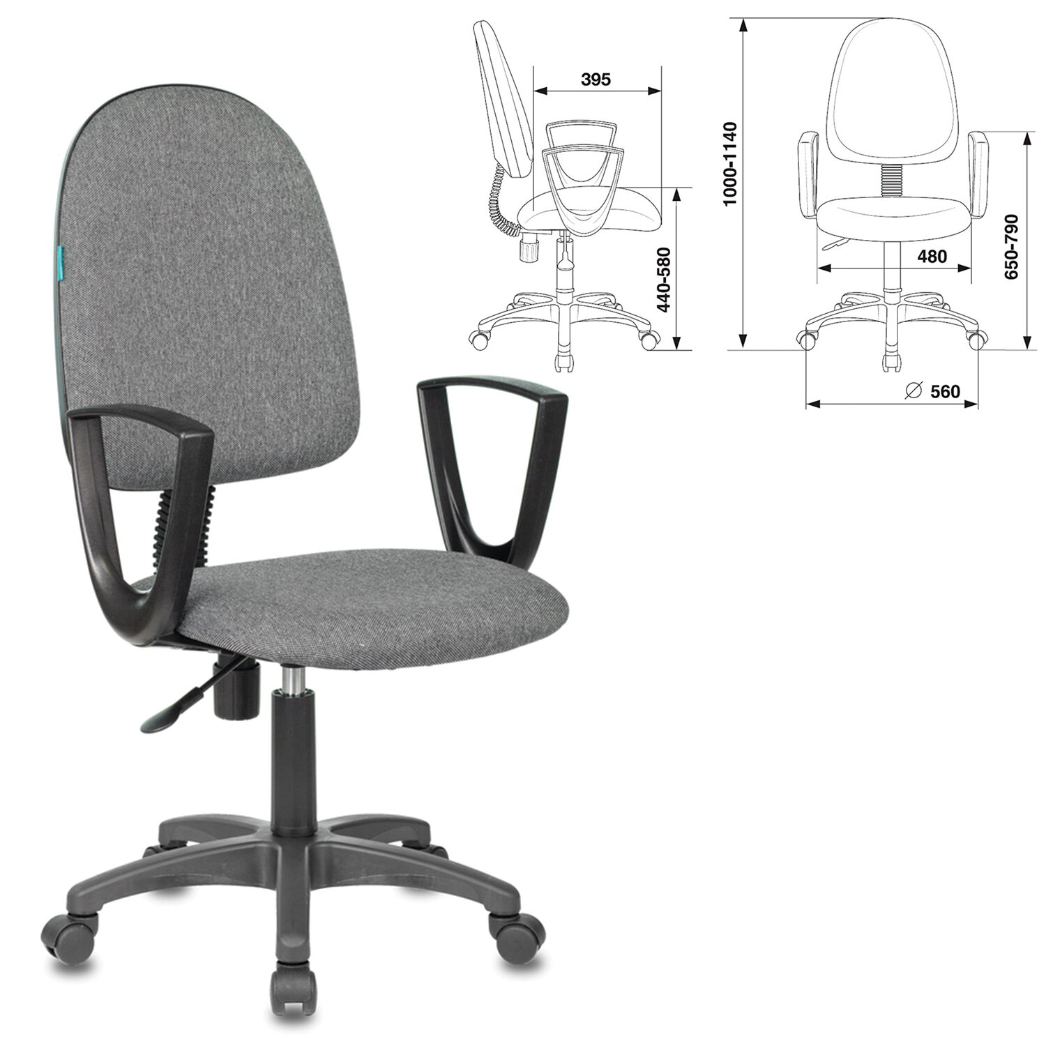 Кресло CH-1300N «Престиж+», с подлокотниками, ткань, серое, 1215476