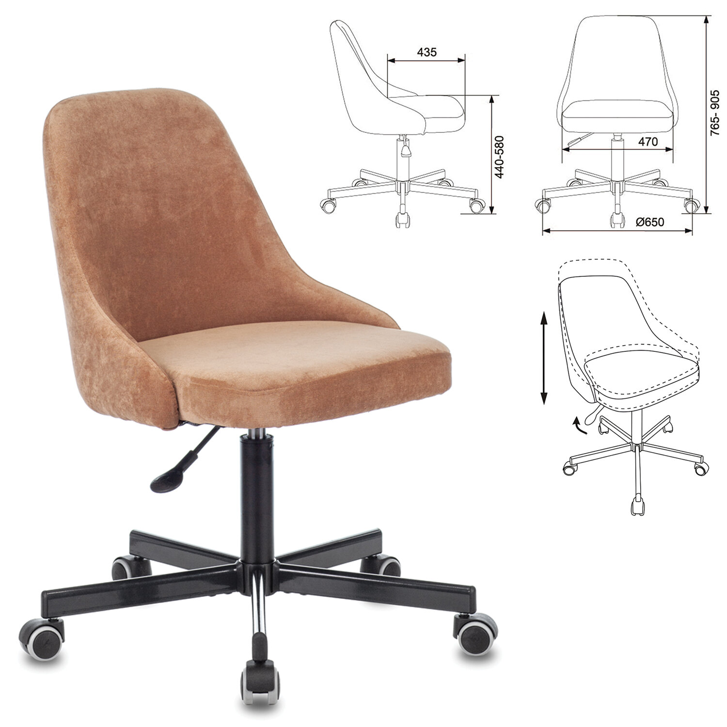 Каркас сиденья и спинки выполнен целиком из фанеры, формирующей жесткость всей конструкции и эргономику спинки.Отличительной особенностью материала обивки является густой бархатистый ворс, мягкий и приятный на ощупь. Бархатистые переливы велюра завораживают взгляд, изумляют своим блеском и удивляют практичностью. Пятилучие металлическое разборное, выдерживает нагрузку до 120 кг.Модель оснащена механизмом с регулировкой высоты посадки.