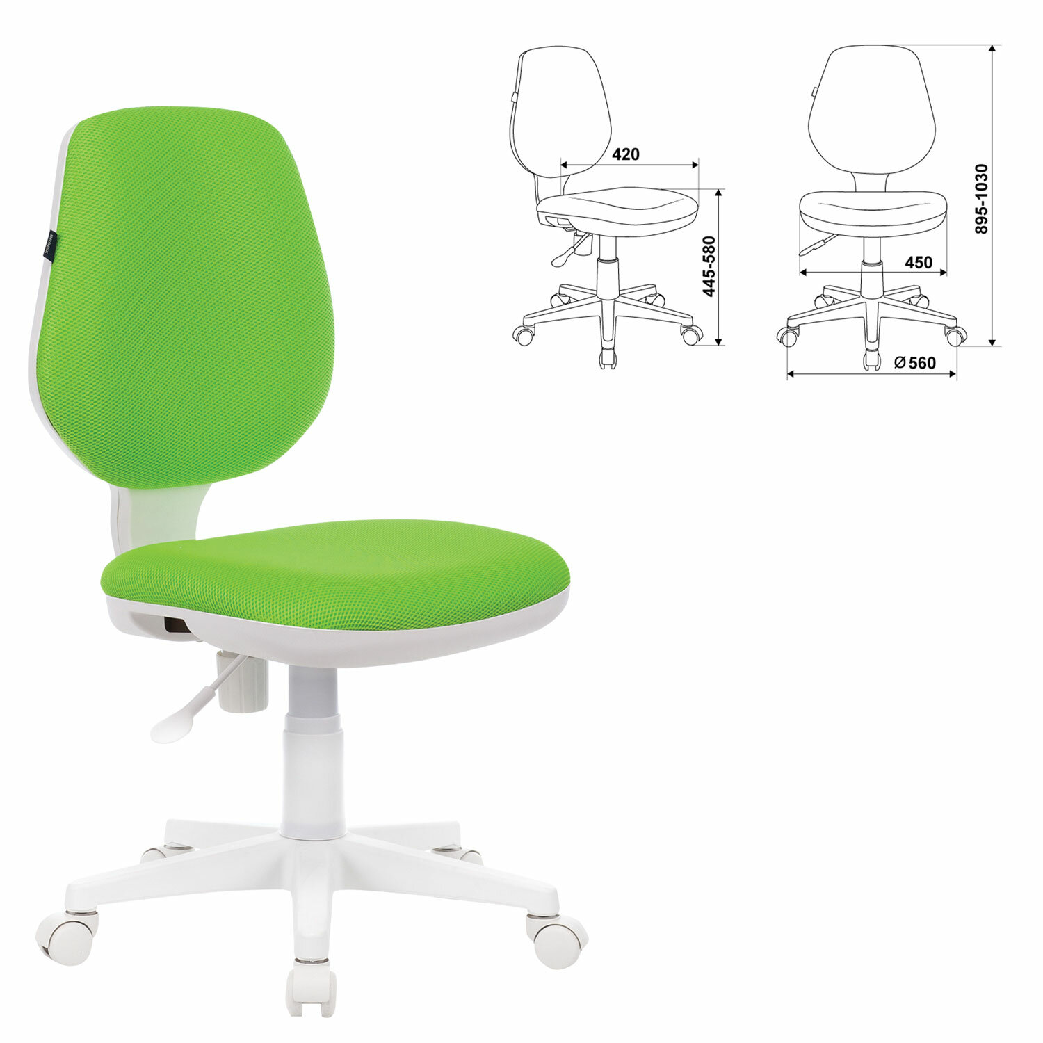 Пружинно-винтовой механизм качания спинки обеспечивает опору и поддержку, а также позволяет регулировать угол наклона. При помощи специального рычага можно отрегулировать высоту сидения. Крестовина кресла максимально увеличивает площадь основания и почти исключает возможность опрокидывания. Газлифт выдерживает и ребенка, и взрослого весом до 120 кг. Пятилучие – пластиковое белого цвета.Спинка и сиденье имеют плотную набивку средней жесткости. Компактная модель, которая легко выдерживает нагрузку взрослого человека.