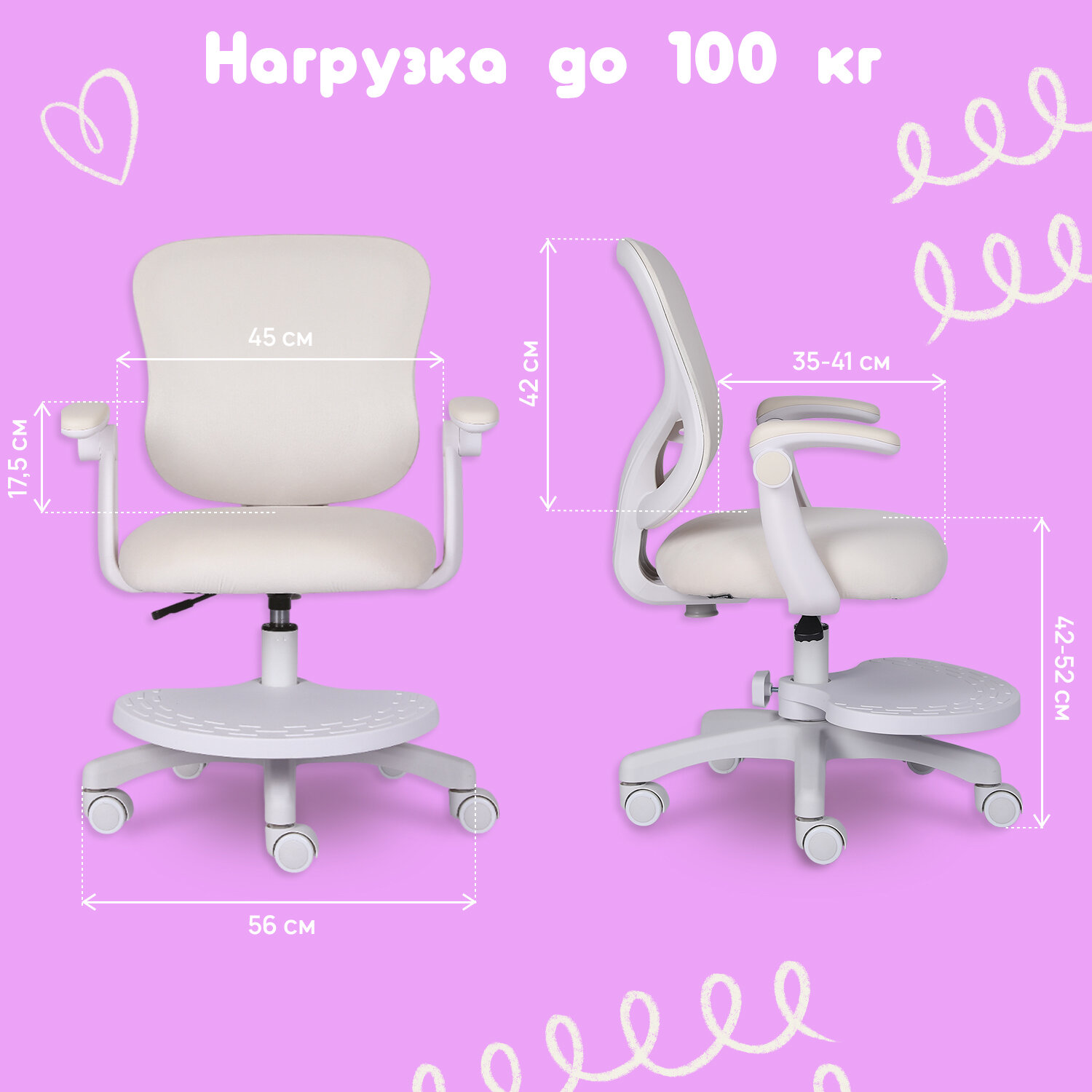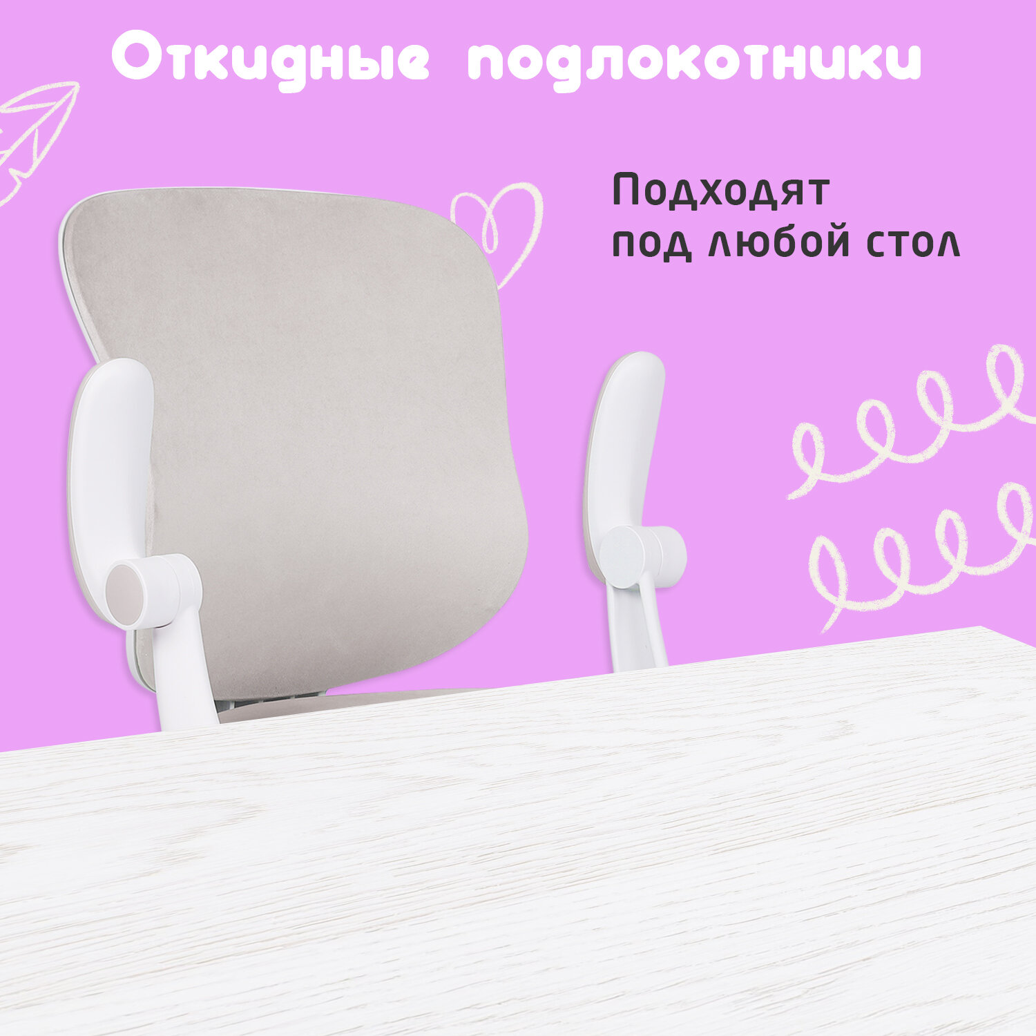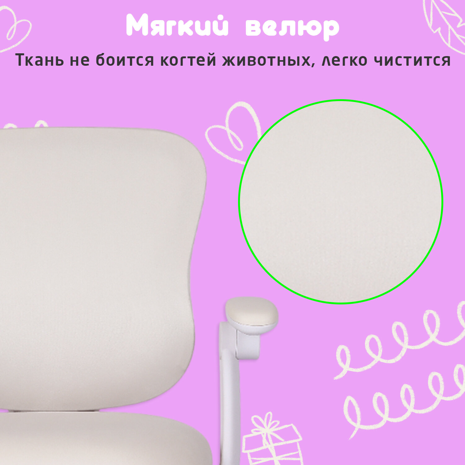 Обивка кресла выполнена из износостойкого велюра. Такая ткань не только приятна наощупь, но и легко чистится. Для набивки сиденья используется новый качественный поролон, который при правильной эксплуатации долгое время сохраняет исходную форму и остается упругим.Спинка анатомической формы поддерживает поясницу и помогает сохранять правильную осанку. Её можно регулировать вперёд или назад, изменяя глубину сиденья под индивидуальные потребности ребёнка.Подлокотники при необходимости можно откидывать вверх, чтобы они не стесняли движения. Кроме того, подставку для ног можно отрегулировать под рост пользователя или вовсе убрать. Таким образом, кресло будет расти вместе с ребенком!