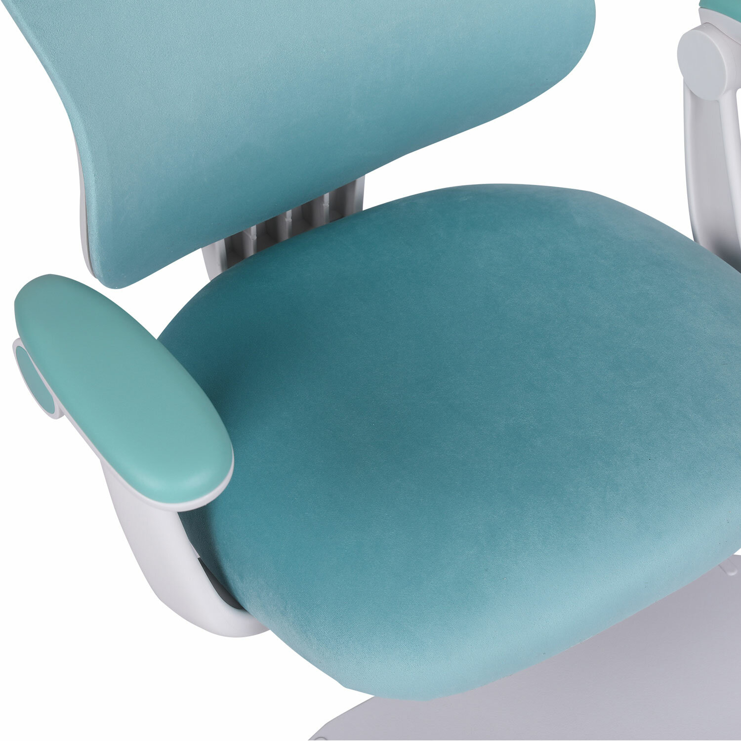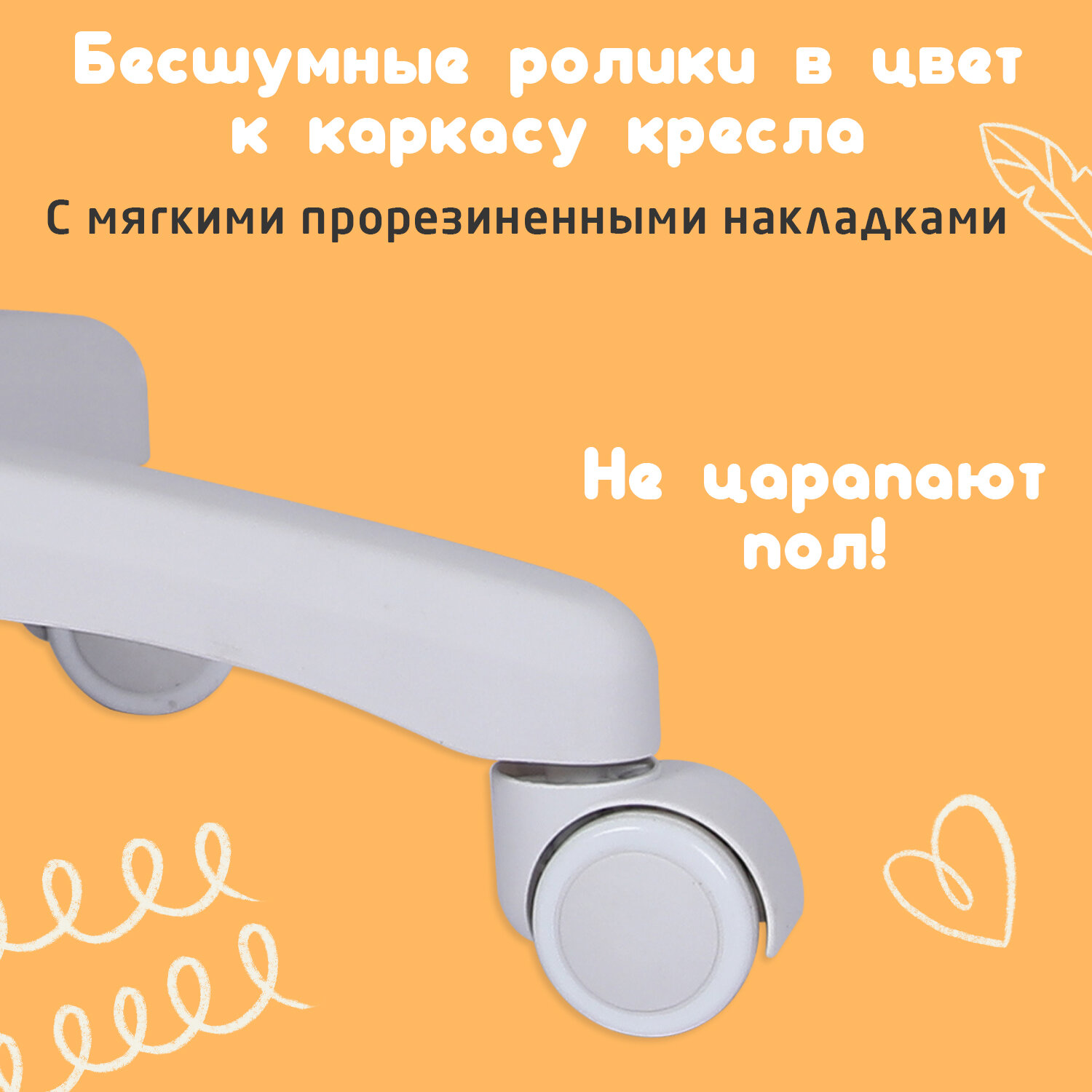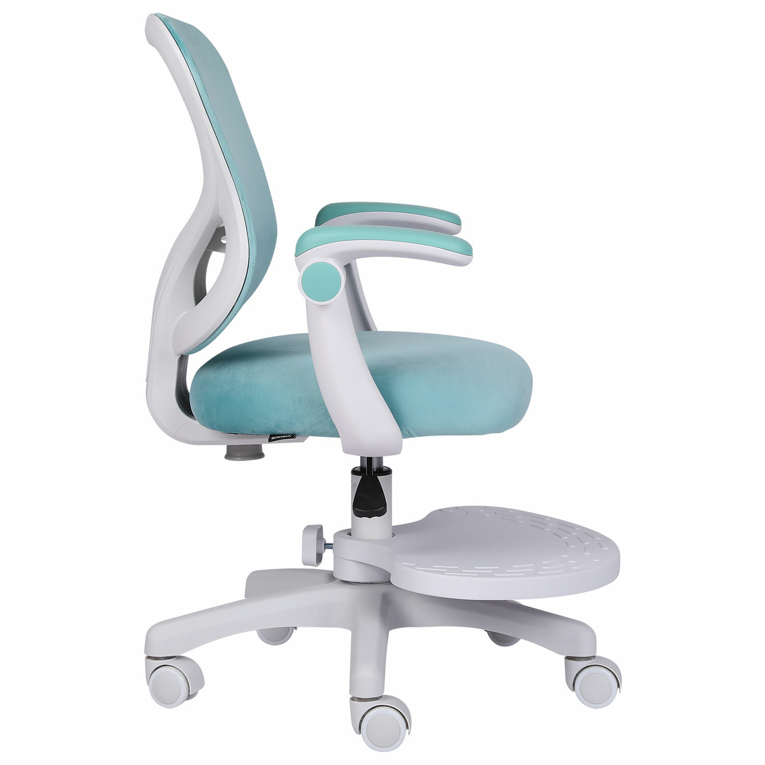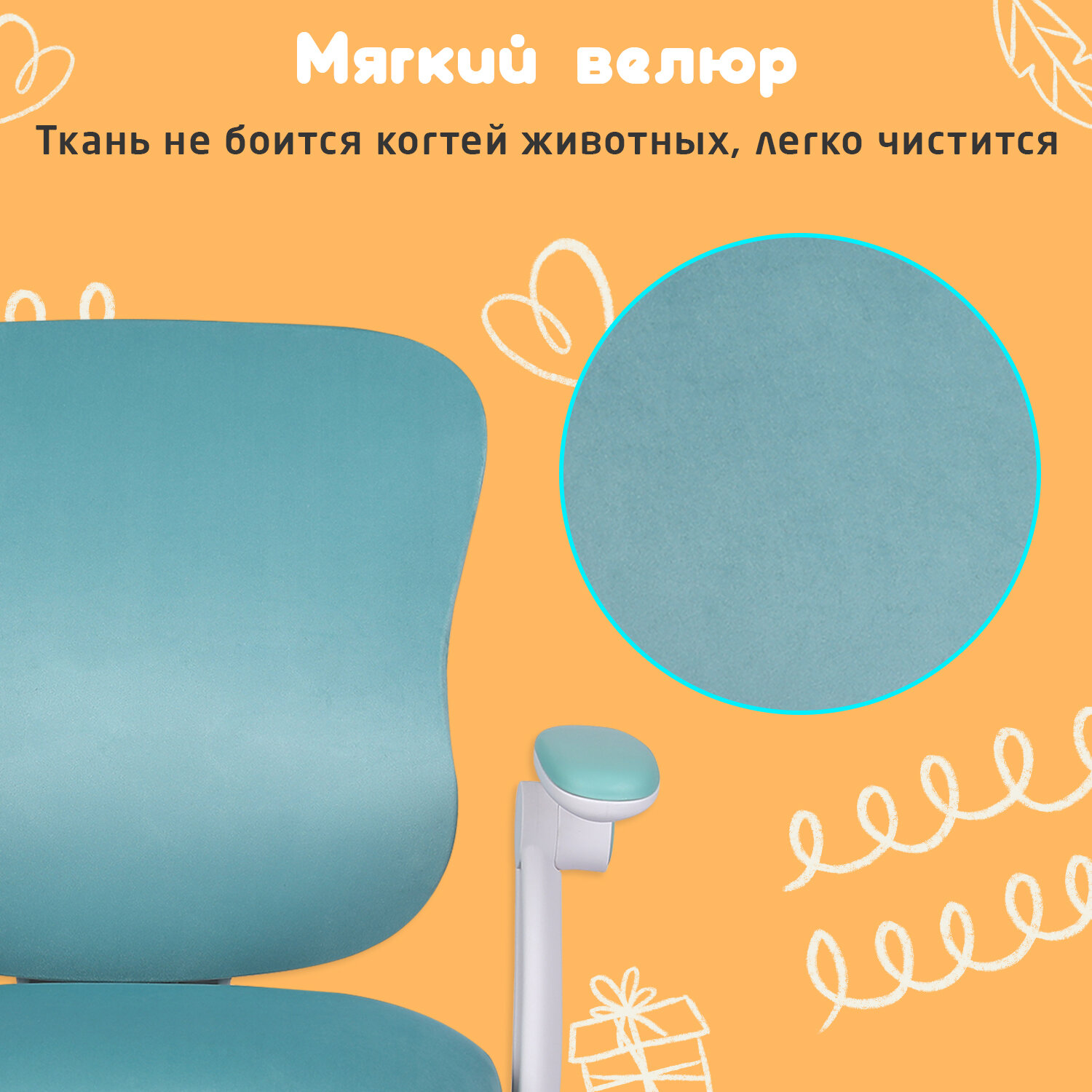 Обивка кресла выполнена из износостойкого велюра. Такая ткань не только приятна наощупь, но и легко чистится. Для набивки сиденья используется новый качественный поролон, который при правильной эксплуатации долгое время сохраняет исходную форму и остается упругим.Спинка анатомической формы поддерживает поясницу и помогает сохранять правильную осанку. Её можно регулировать вперёд или назад, изменяя глубину сиденья под индивидуальные потребности ребёнка.Подлокотники при необходимости можно откидывать вверх, чтобы они не стесняли движения. Кроме того, подставку для ног можно отрегулировать под рост пользователя или вовсе убрать. Таким образом, кресло будет расти вместе с ребенком!