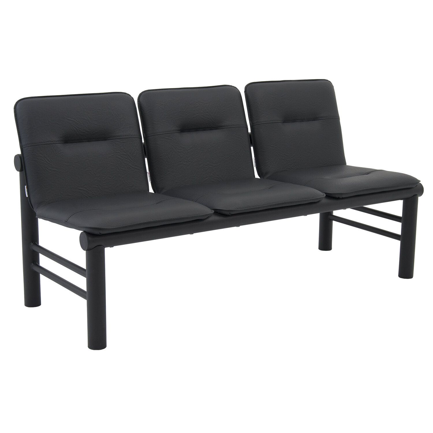 Кресло для посетителей трехсекционное «Троя»,1470х590х755 мм, черный каркас, кожзам черный, СМ 105-03 К01