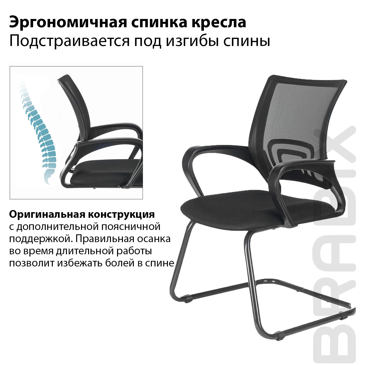 Спинка выполнена из прочного материала — акриловой сетки и имеет выраженную поясничную поддержку, обеспечивающую комфортную посадку в течение всего рабочего дня.Ткань TW обладает высокой воздухопроницаемостью и прочностью, практически не истирается.Наполнитель сиденья — утолщенный поролон средней жесткости.Металлические полозья способны выдержать нагрузку до 120 кг!Неприхотливая модель для дома и офиса среднего ценового сегмента.Кресла марки BRABIX отличаются современным дизайном, эргономикой, аккуратным исполнением и отличным соотношением цены и качества.