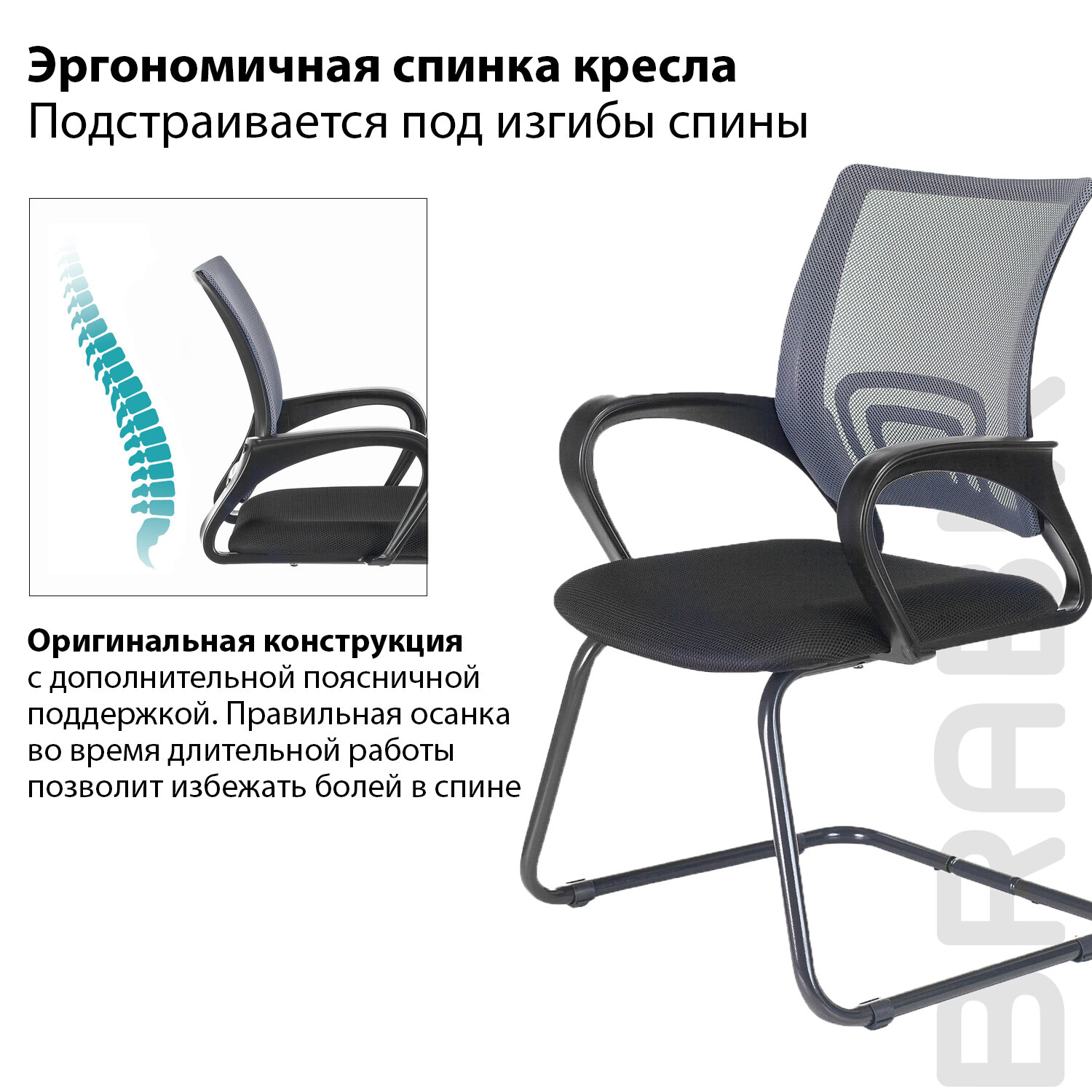 Спинка выполнена из прочного материала — акриловой сетки и имеет выраженную поясничную поддержку, обеспечивающую комфортную посадку в течение всего рабочего дня.Ткань TW обладает высокой воздухопроницаемостью и прочностью, практически не истирается.Наполнитель сиденья — утолщенный поролон средней жесткости.Металлические полозья способны выдержать нагрузку до 120 кг!Неприхотливая модель для дома и офиса среднего ценового сегмента.Кресла марки BRABIX отличаются современным дизайном, эргономикой, аккуратным исполнением и отличным соотношением цены и качества.