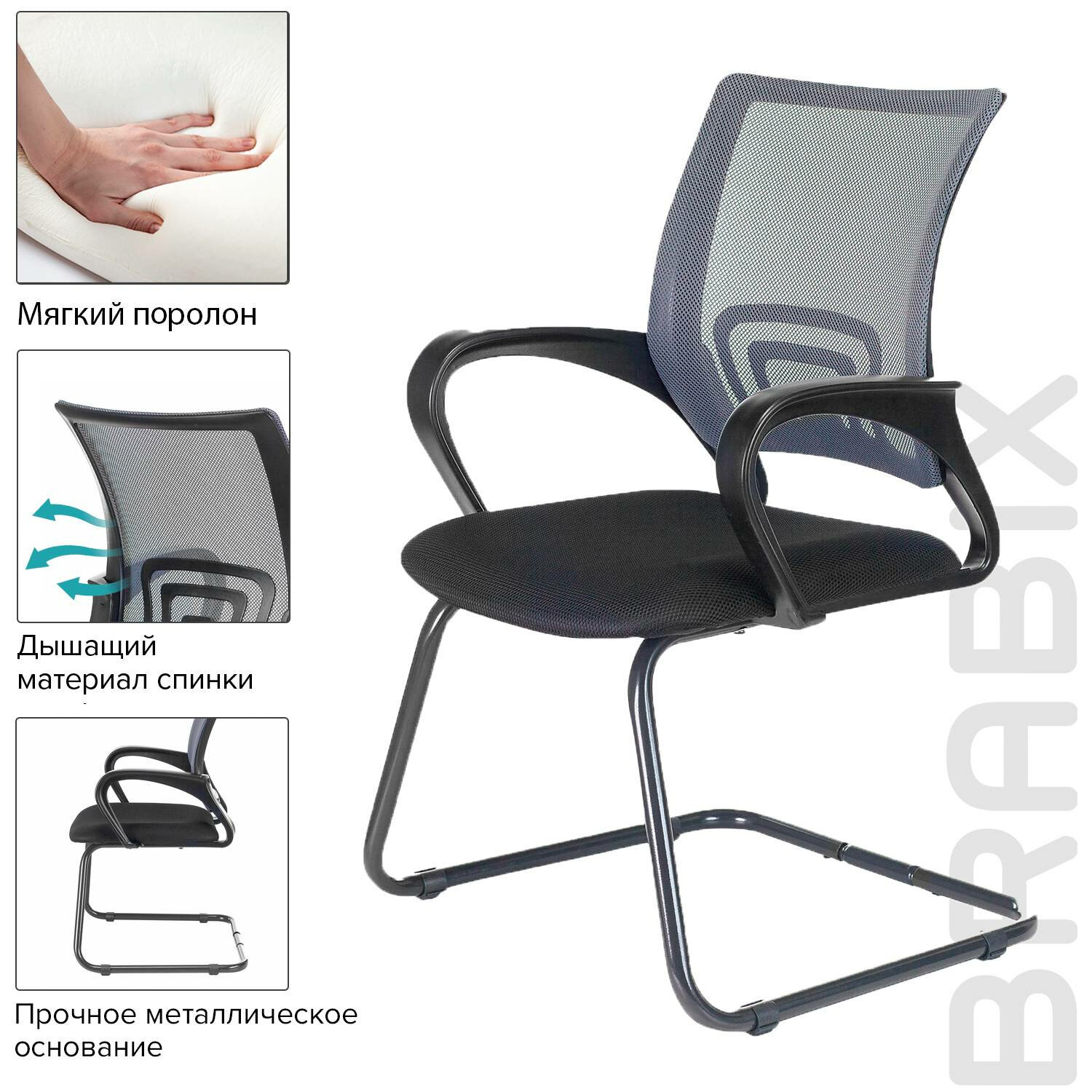 BRABIX «Fly CF-100» — доступное, качественное кресло с эргономичной сетчатой спинкой. Бюджетный вариант многофункционального кресла для оборудования приемных и переговорных.