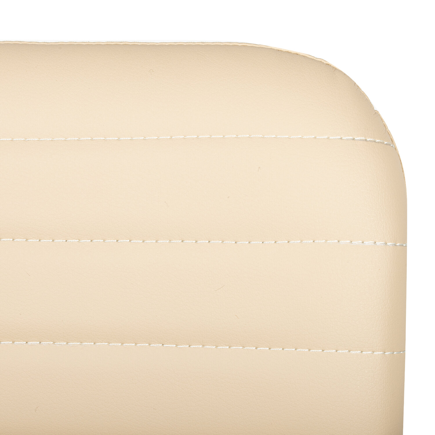 Каркас сиденья и спинки является монолитным, выполнен целиком из фанеры, формирующей жесткость всей конструкции и эргономику спинки.Обивка выполнена из высококачественного материала — экокожи «santorini», значительно превосходящего стандартные материалы по сроку эксплуатации. Кроме того, материал мягкий и приятный на ощупь, мало отличим от натуральной кожи.Поролон средней жесткости, достаточно плотной набивки.Хромированная металлическая рама способна выдержать нагрузку до 120 кг.Подлокотники имеют накладки из пластика.
