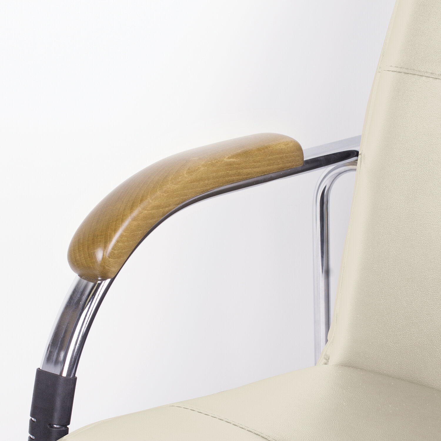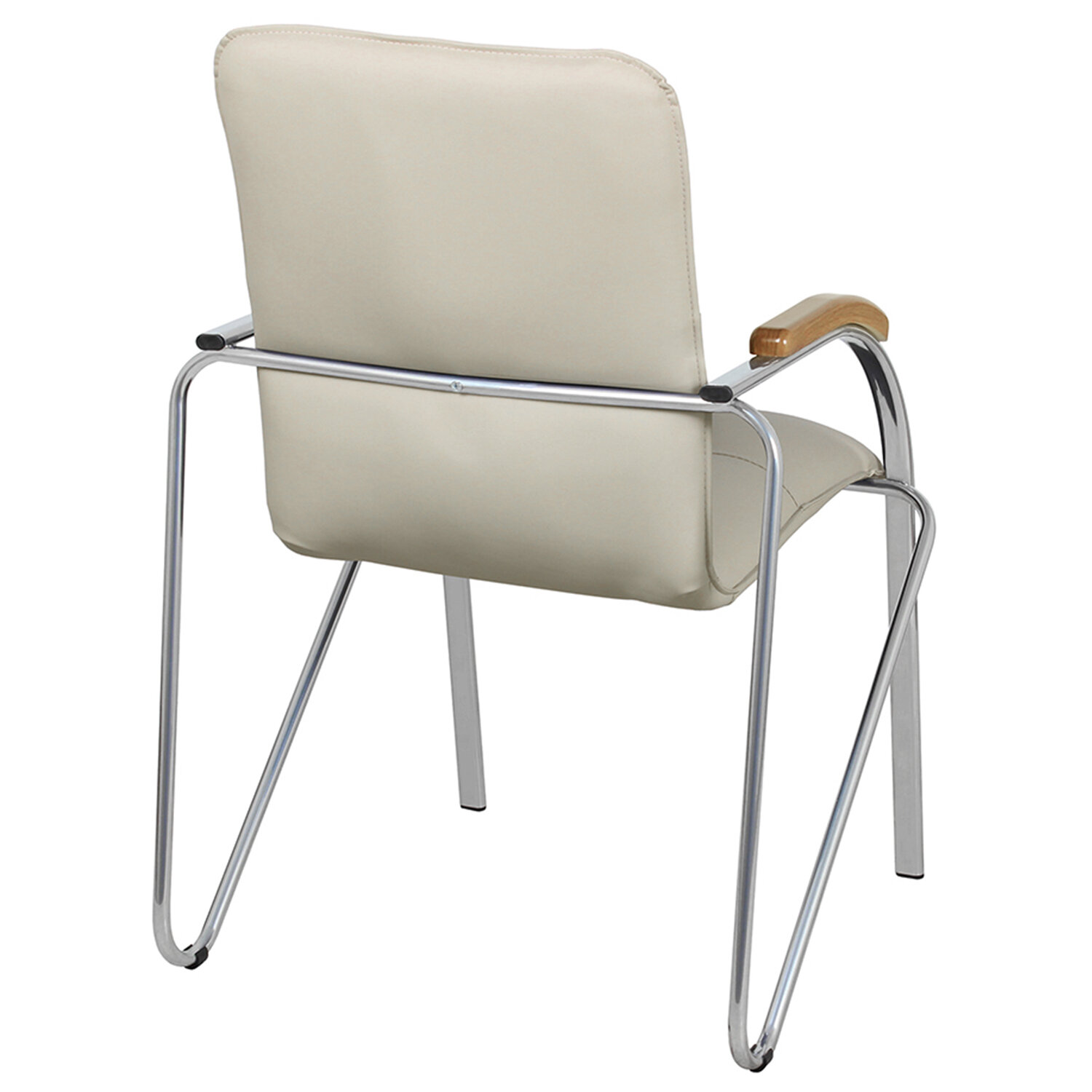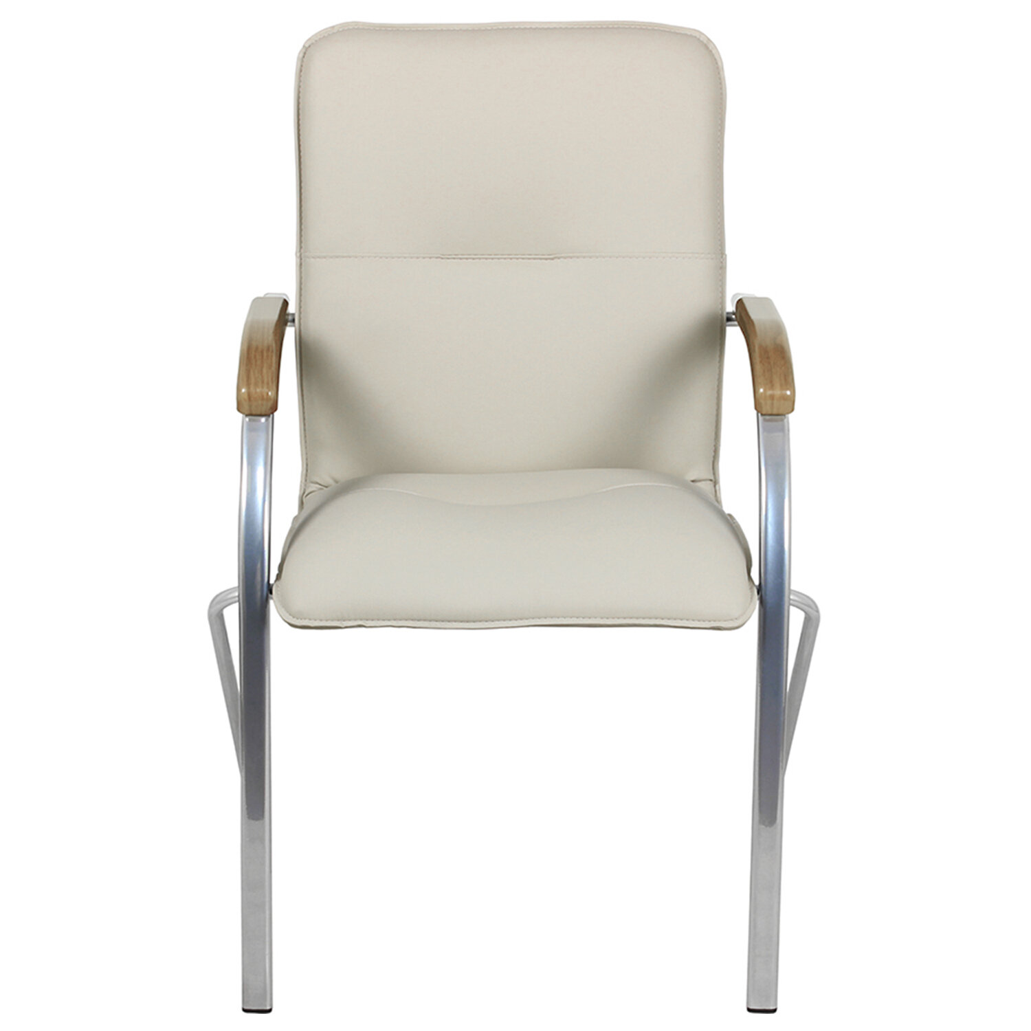 Кресло для приемных и переговорных «Samba», деревянные накладки, хромированный каркас, кожзам бежевый