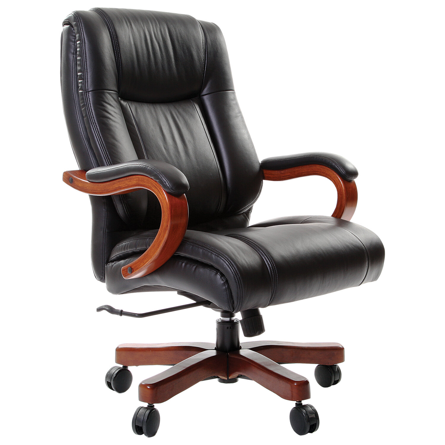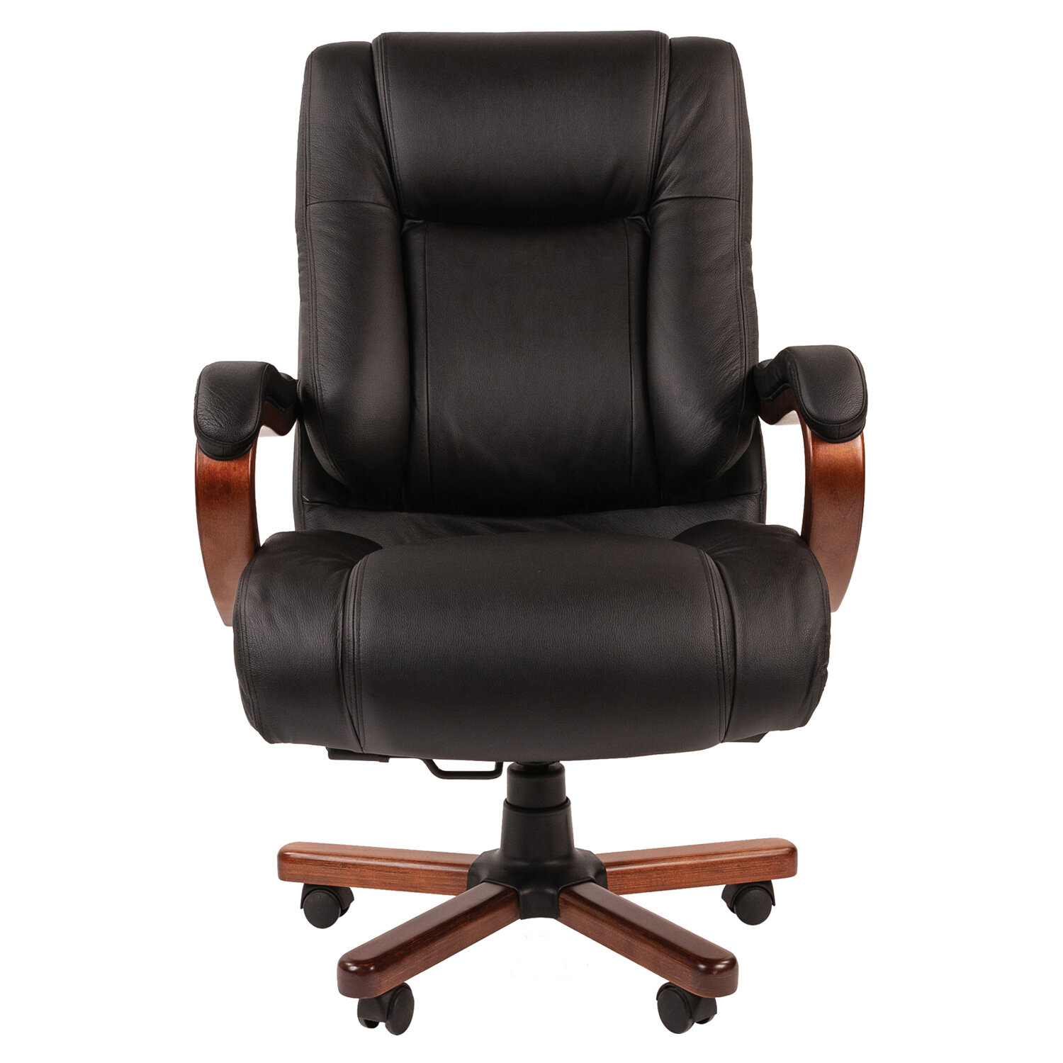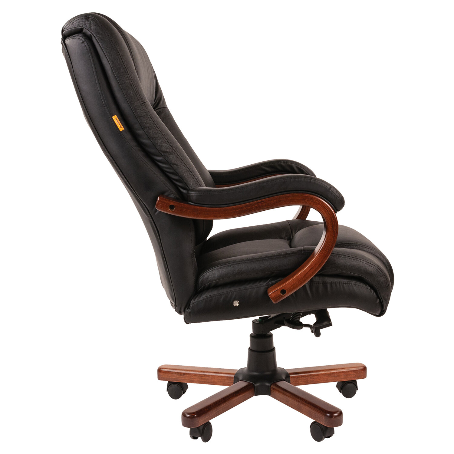 Обивка из натуральной кожи на рабочих поверхностях кресла и экокожи на нерабочих поверхностях.Каркас монолитный.Сиденье и спинка мягкие, удобные и просторные.Сиденье оснащено пружинным блоком с независимыми пружинами.Подлокотники деревянные с мягкими накладками, обитыми натуральной кожей.Механизм качания усиленный, с возможностью фиксации кресла в рабочем положении.Пятилучие металлическое с деревянными накладками, усиленное.Максимальная рекомендованная нагрузка до 180 кг.Модель класса «премиум».