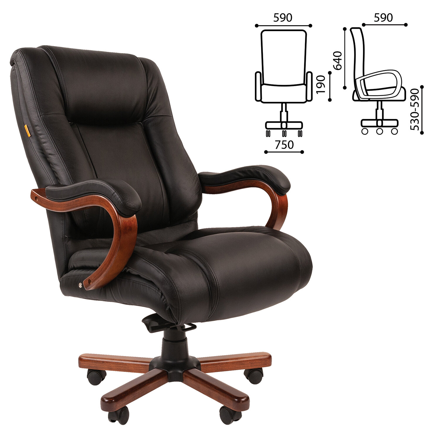 Кресло из натуральной кожи CH 503, нагрузка до 180 кг, дерево, черное