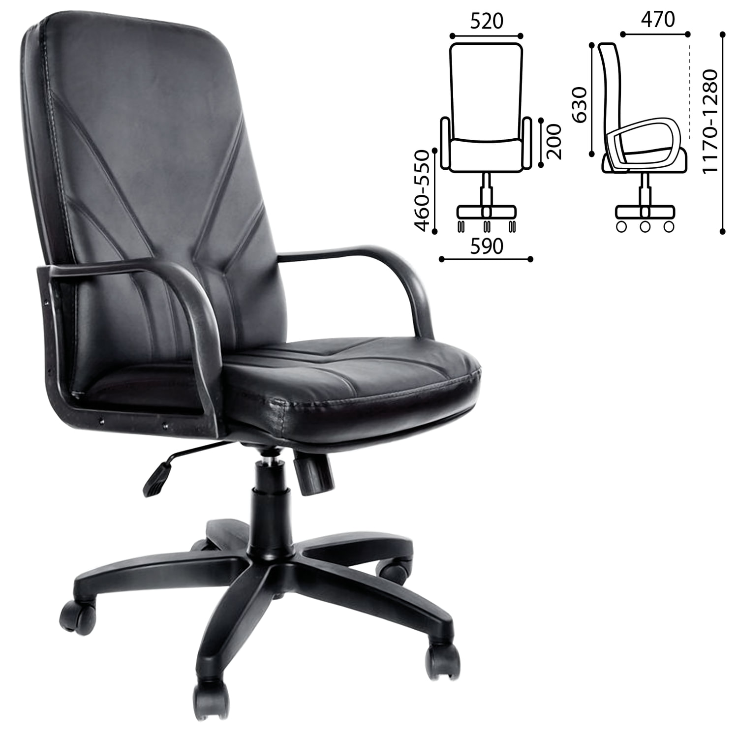 Кресло из натуральной кожи «Менеджер», монолитный каркас, черное