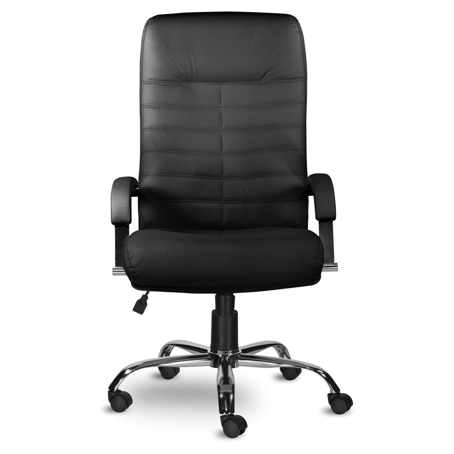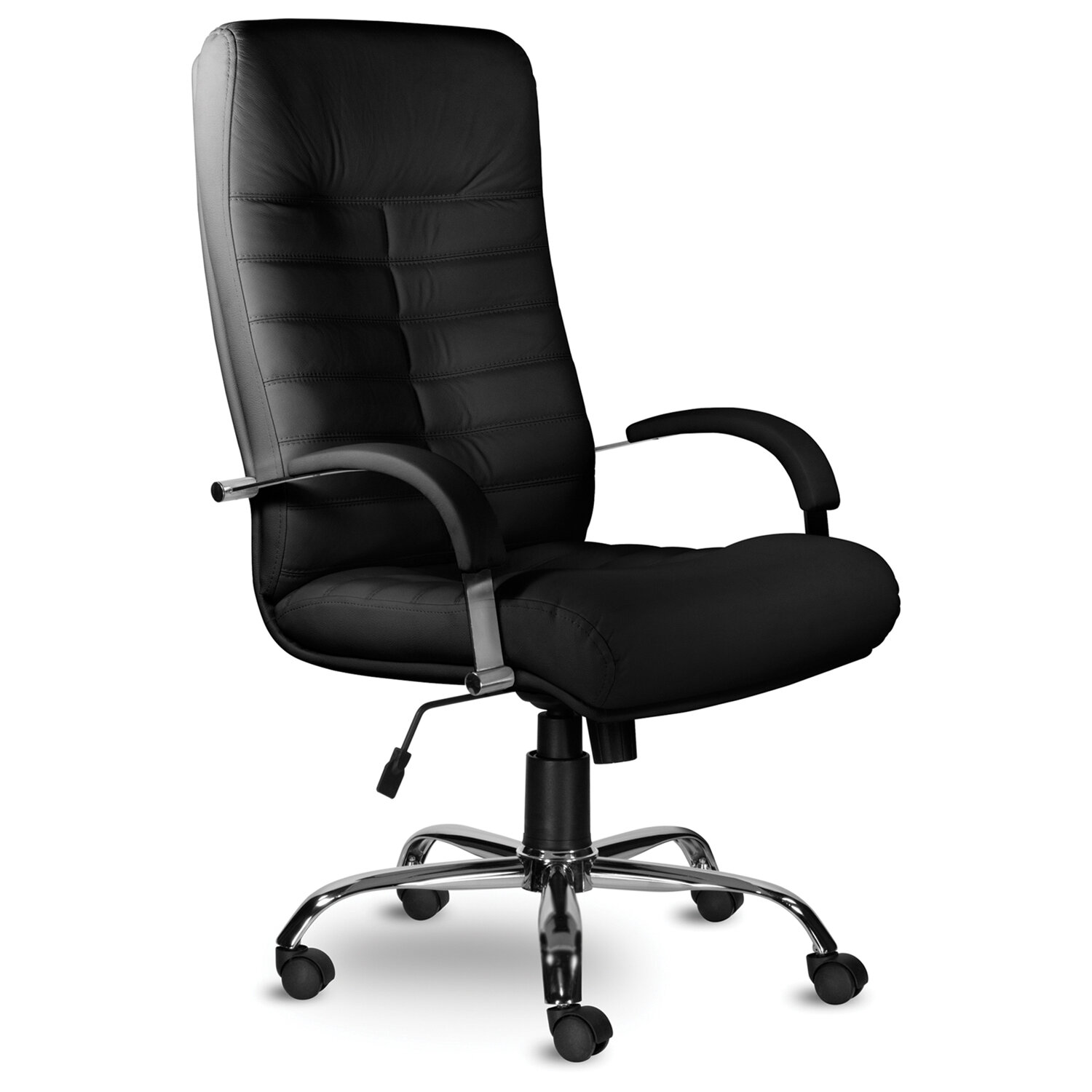 Кресло из натуральной кожи «Орион», хром, монолитный каркас, черное