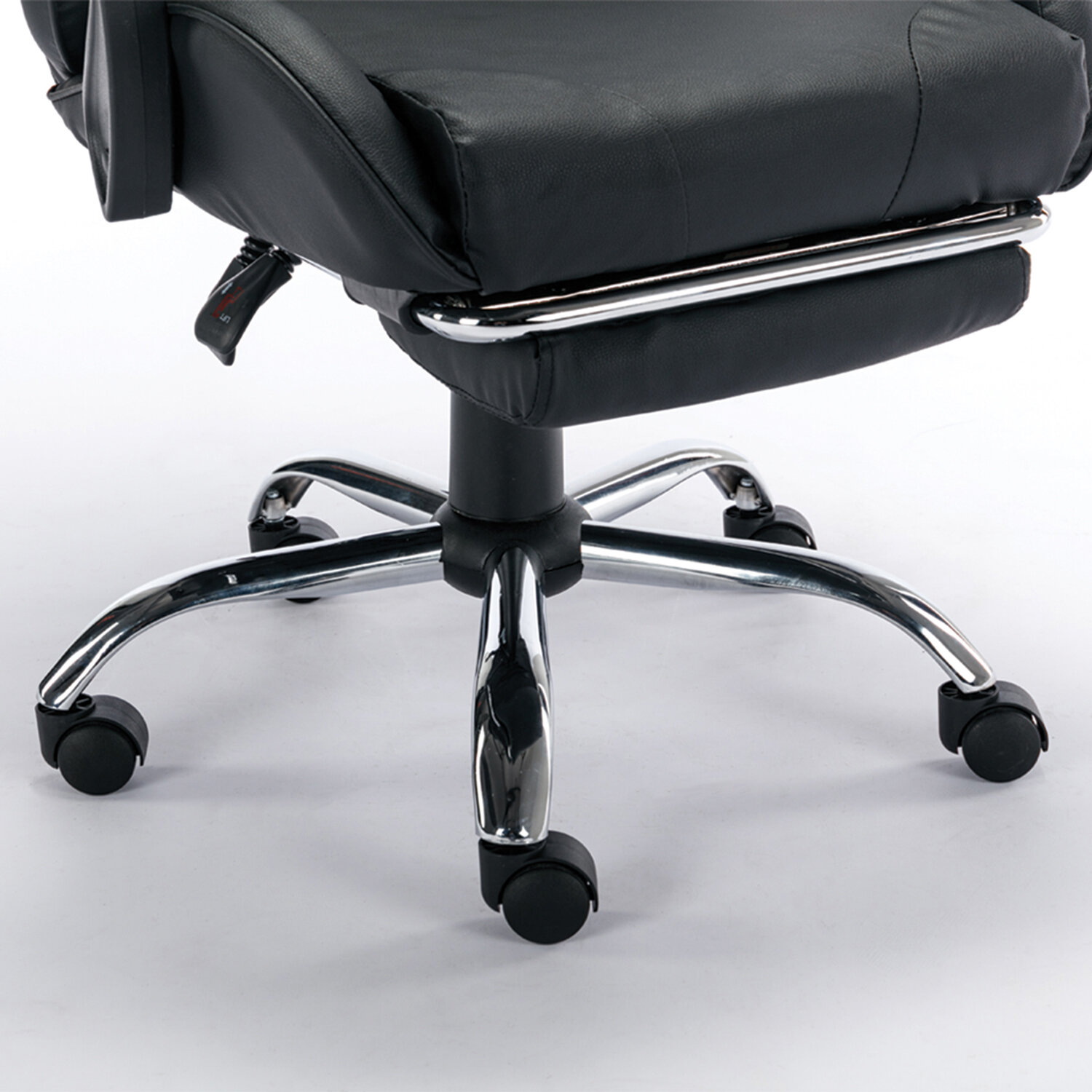 Кресло выполнено из материалов высокого качества. Обивка из экокожи легко чистится и долго сохраняет привлекательный внешний вид, а плотная набивка гарантирует продолжительную эксплуатацию без проминания. Эргономичный дизайн разработан с заботой о вашем здоровье. Мягкие подушки обеспечивают комфорт и поддержку спине и шее.Широкие пластиковые подлокотники с мягкими накладками позволят с удобством разместиться в кресле, а чтобы полностью расслабиться, достаточно откинуть подставку для ног и принять удобное положение. В основании – надежное пятилучие и газлифт 2 класса.Максимальная нагрузка – 140 кг.