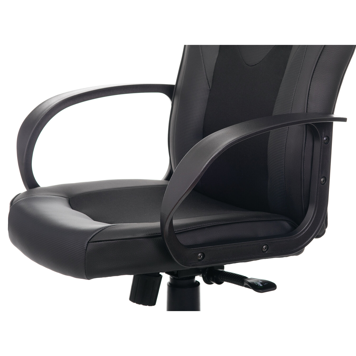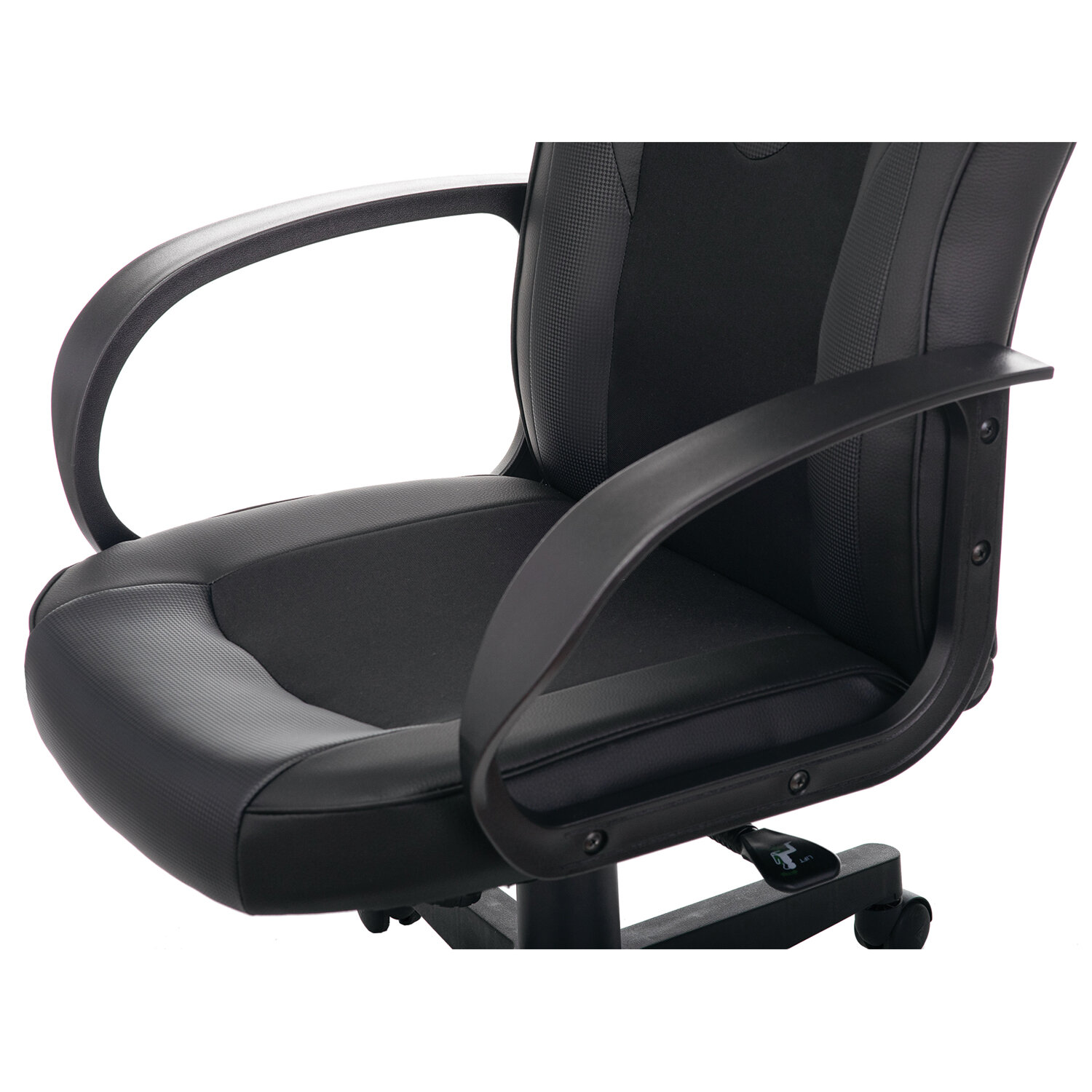 На кресло установлен усовершенствованный механизм «Top-Gun Lux», который обеспечивает плавное качание, а главное, позволяет зафиксировать угол наклона в любом положении. Плавность качания можно регулировать под вес конкретного пользователя. Данный тип механизма обеспечивает максимальную устойчивость, повышенный комфорт и, как следствие, увеличивает срок эксплуатации всего кресла. В обивке кресла использованы прочная мебельная ткань и экокожа высокого качества. Материал хорошо пропускает воздух, устойчив к износу, не выцветает и легко чистится.Плотная набивка и эргономичная форма спинки позволят находиться в кресле долгие часы с комфортом. Оригинальный дизайн с «карбоновыми» вставками делает модель не только функциональной, но и стильной. В основании — надежное пластиковое пятилучие и газлифт 3 класса. Кресло рассчитано на нагрузку до 120 кг.
