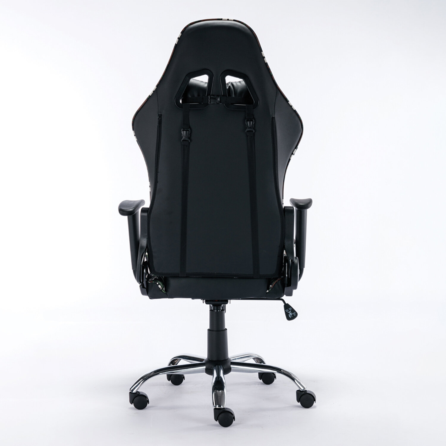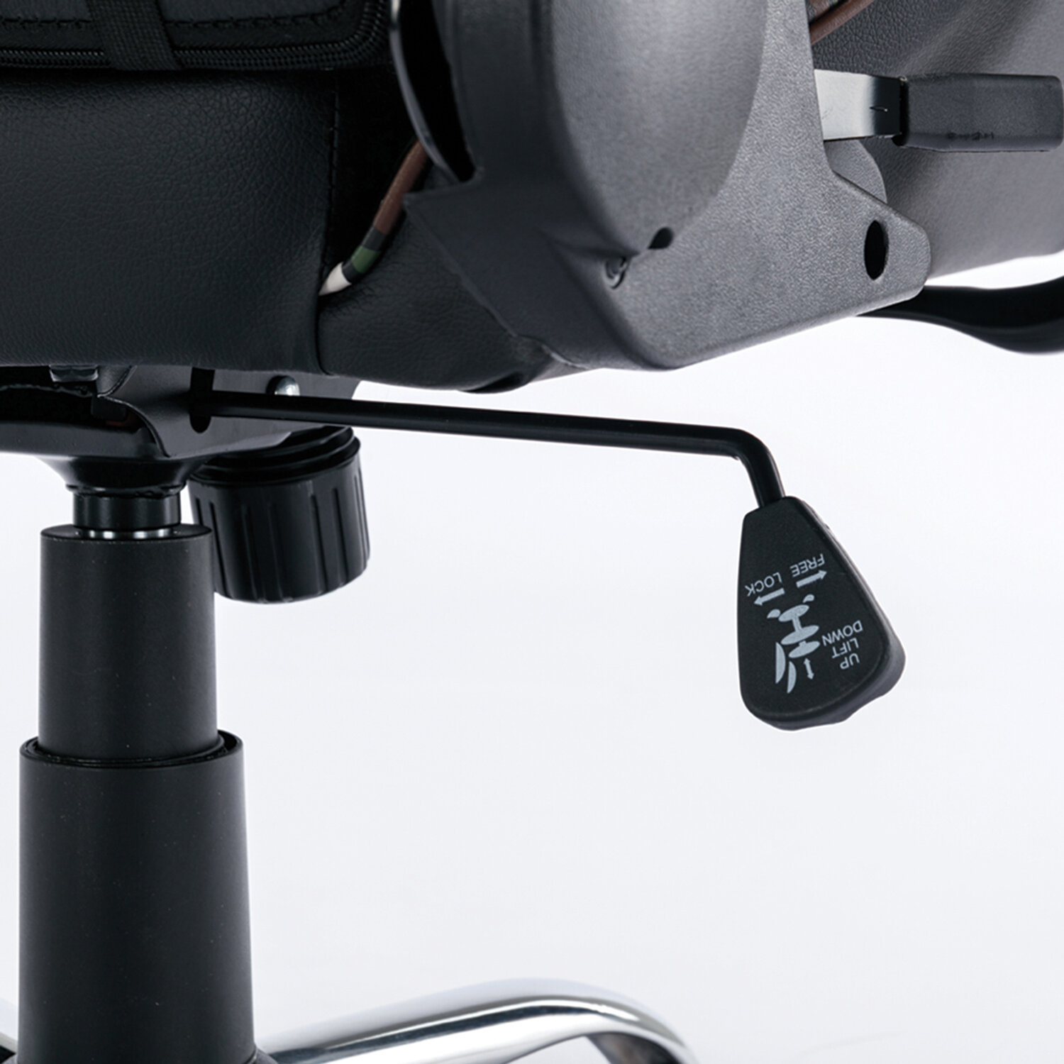 Обивка кресла выполнена из высококачественной экокожи с неброским, но оригинальным принтом.Установлен механизм качания «топ-ган» с регулировкой под вес и возможностью фиксации в рабочем положении. При желании можно полностью откинуть спинку и зафиксировать ее в вертикальном положении. Кресло оснащено мягкими подушками, которые помогают поддерживать правильную осанку и защищают от развития сутулости.Продуманная эргономика и выраженная боковая поддержка позволяют с комфортом провести время за компьютером. В основании установлено надежное металлическое пятилучие и газлифт 2 класса.Максимальная нагрузка рассчитана на вес до 140 кг.