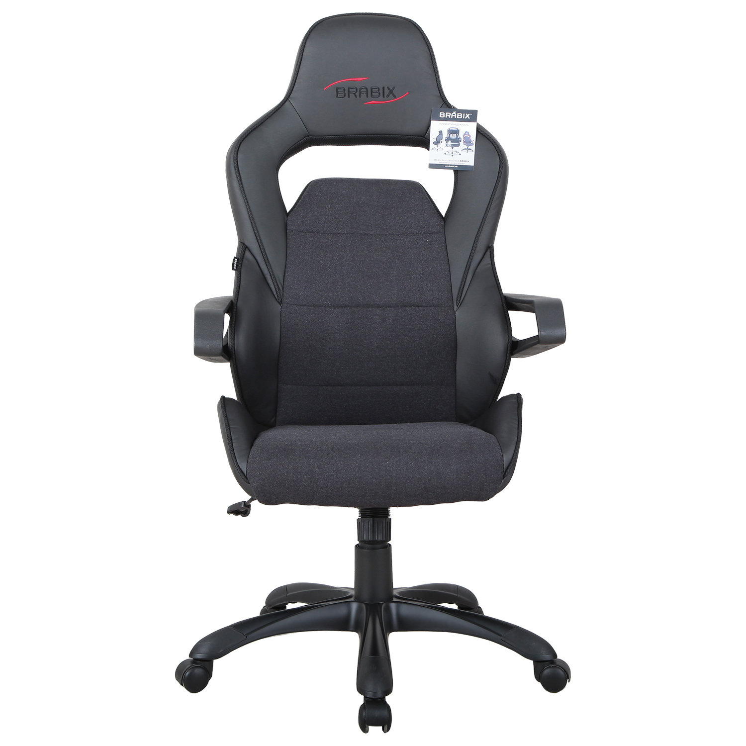 В обивке кресла использована экокожа высокого качества и прочная мебельная ткань. Материал хорошо пропускает воздух, устойчив к износу, не выцветает и легко чистится.Плотная набивка, выраженная боковая поддержка и продуманная эргономика позволят находиться в кресле долгие часы с комфортом. Кресло оснащено механизмом качания «топ-ган» с регулировкой под вес пользователя и возможностью фиксации в рабочем положении. В основании надежное пластиковое пятилучие и газлифт 3 класса. Кресло рассчитано на нагрузку до 120 кг.
