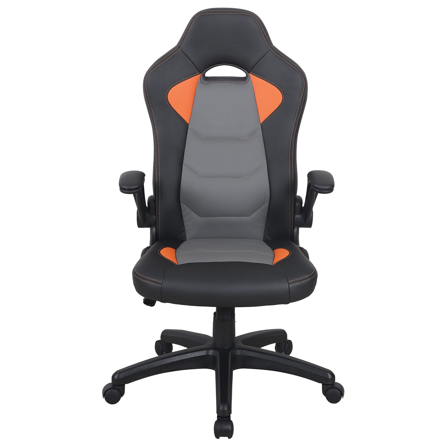 В обивке кресла использована экокожа высокого качества. Материал хорошо пропускает воздух, устойчив к износу, не выцветает и легко чистится.Откидные подлокотники делают модель еще более функциональной.Яркая контрастная отстрочка и детали добавляют модели особый стиль.Кресло оснащено механизмом качания «топ-ган» с регулировкой под вес пользователя и возможностью фиксации в рабочем положении.В основании надежное пластиковое пятилучие и газлифт 3 класса.Кресло рассчитано на нагрузку до 120 кг.