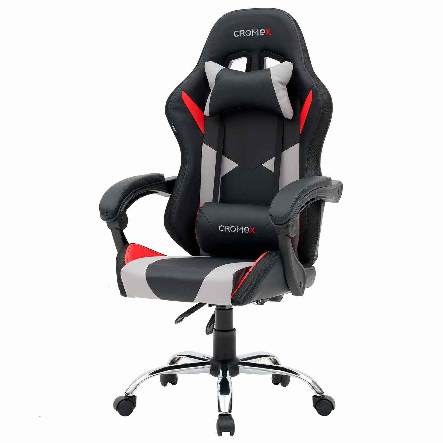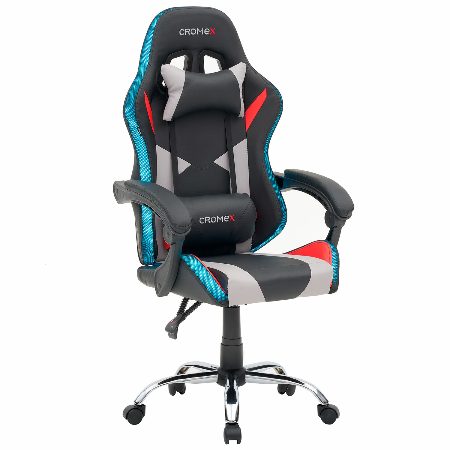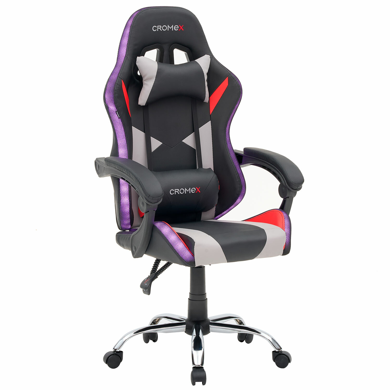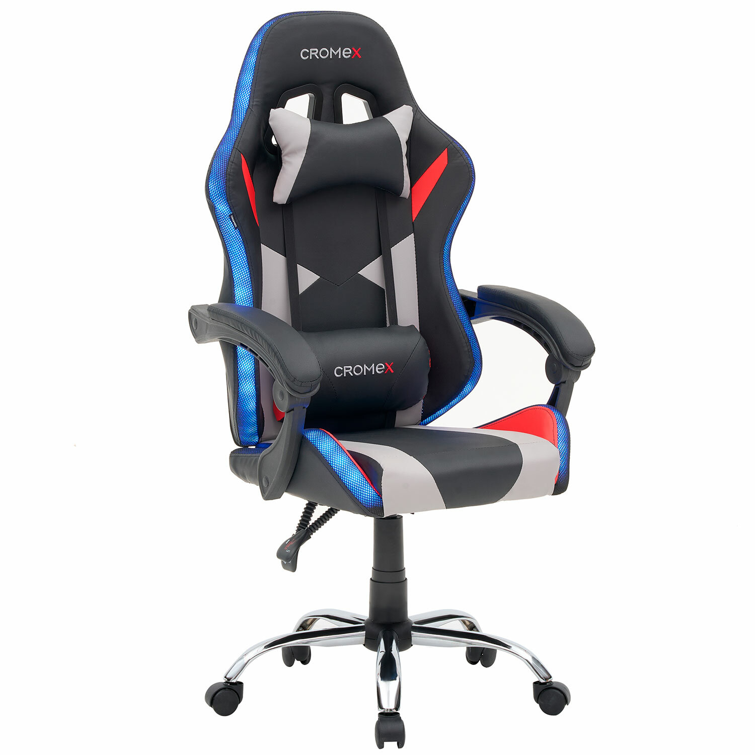 Кресло компьютерное CROMEX (КРОМЕКС) «Quantum GM-155 RGB», подсветка, две подушки, экокожа, черное/красное/серое, 532955