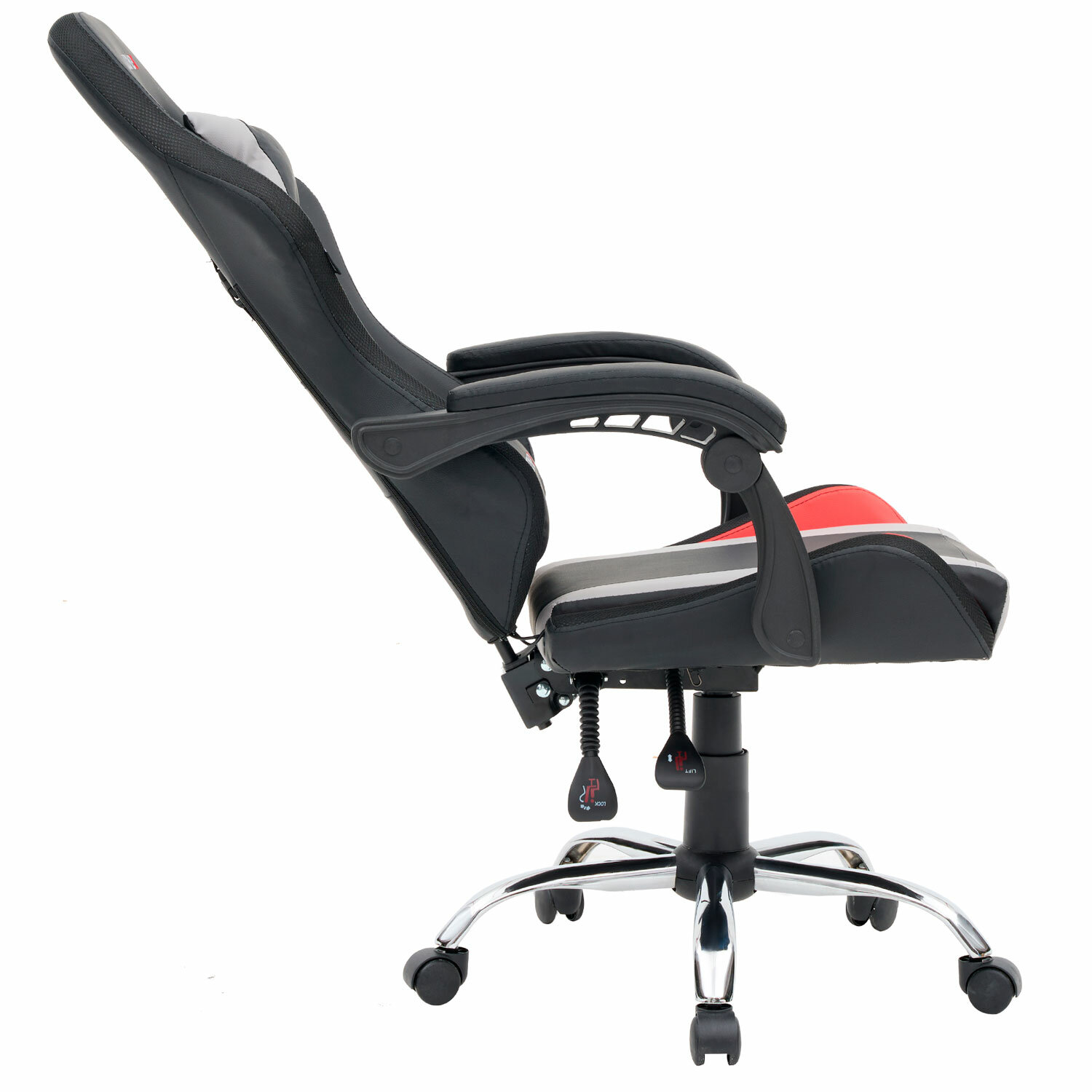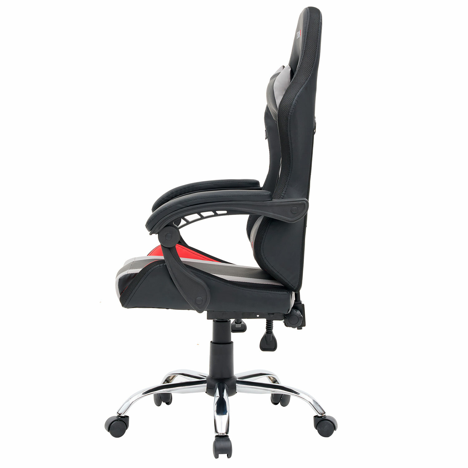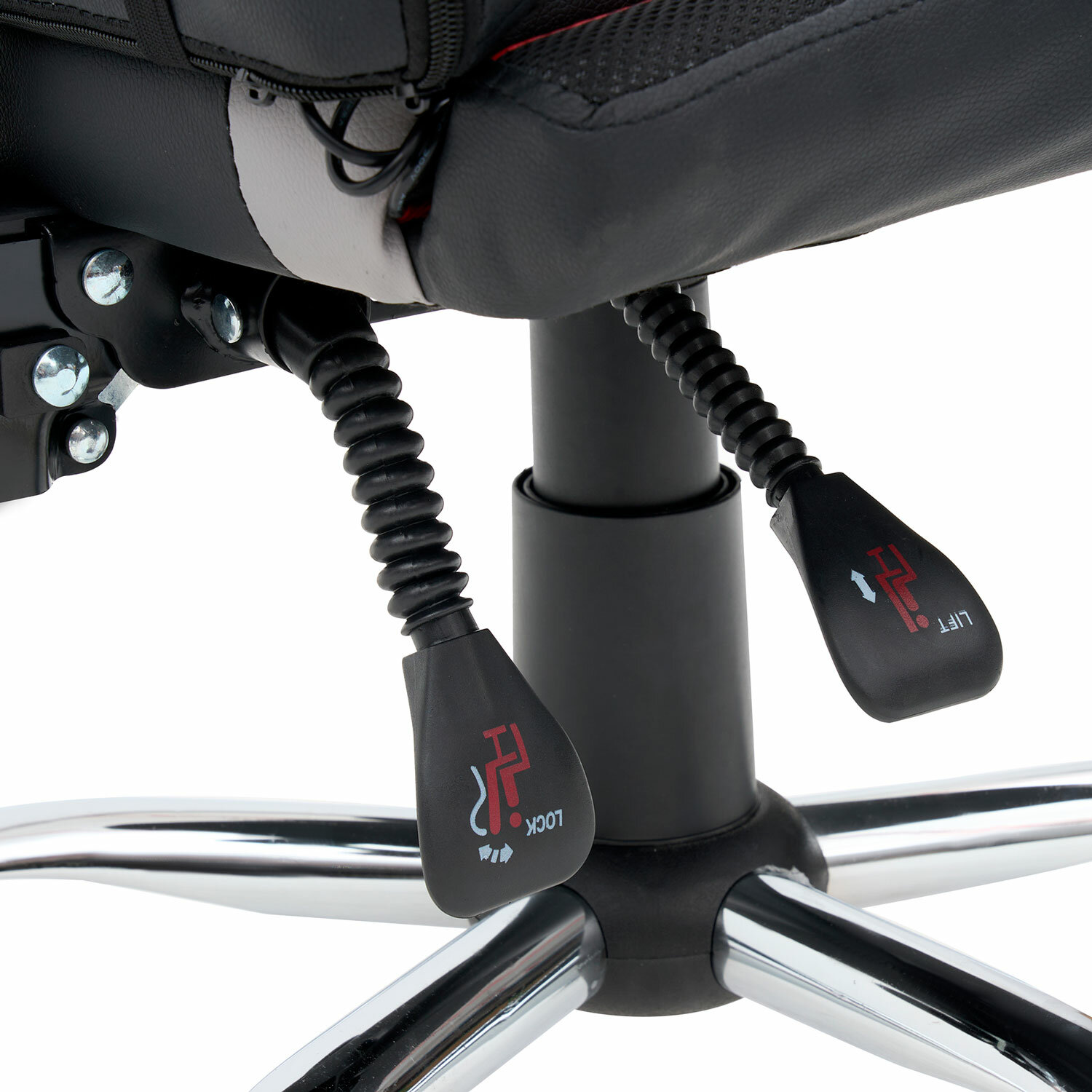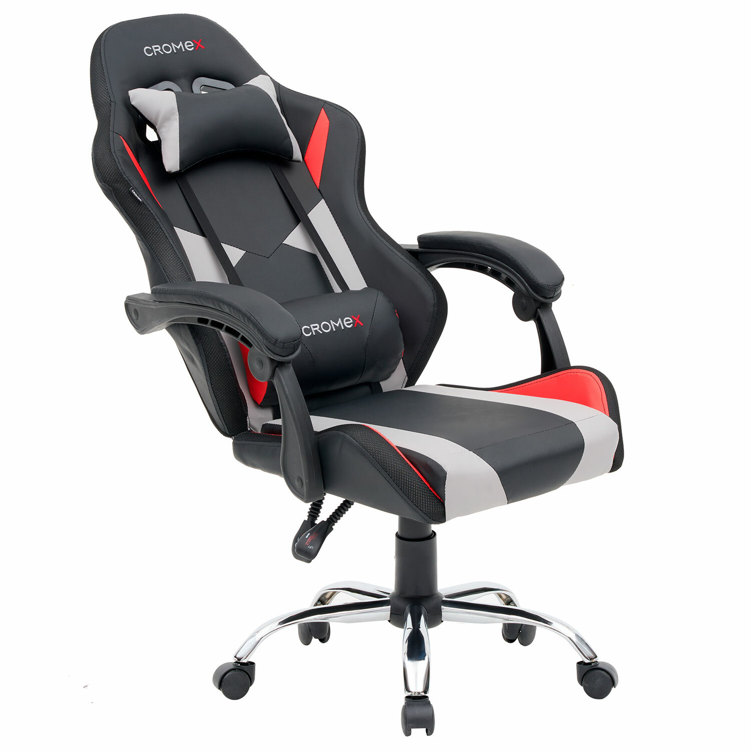 Кресло компьютерное CROMEX (КРОМЕКС) «Quantum GM-155 RGB», подсветка, две подушки, экокожа, черное/красное/серое, 532955