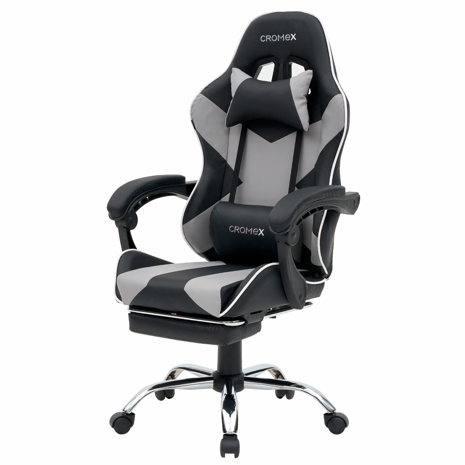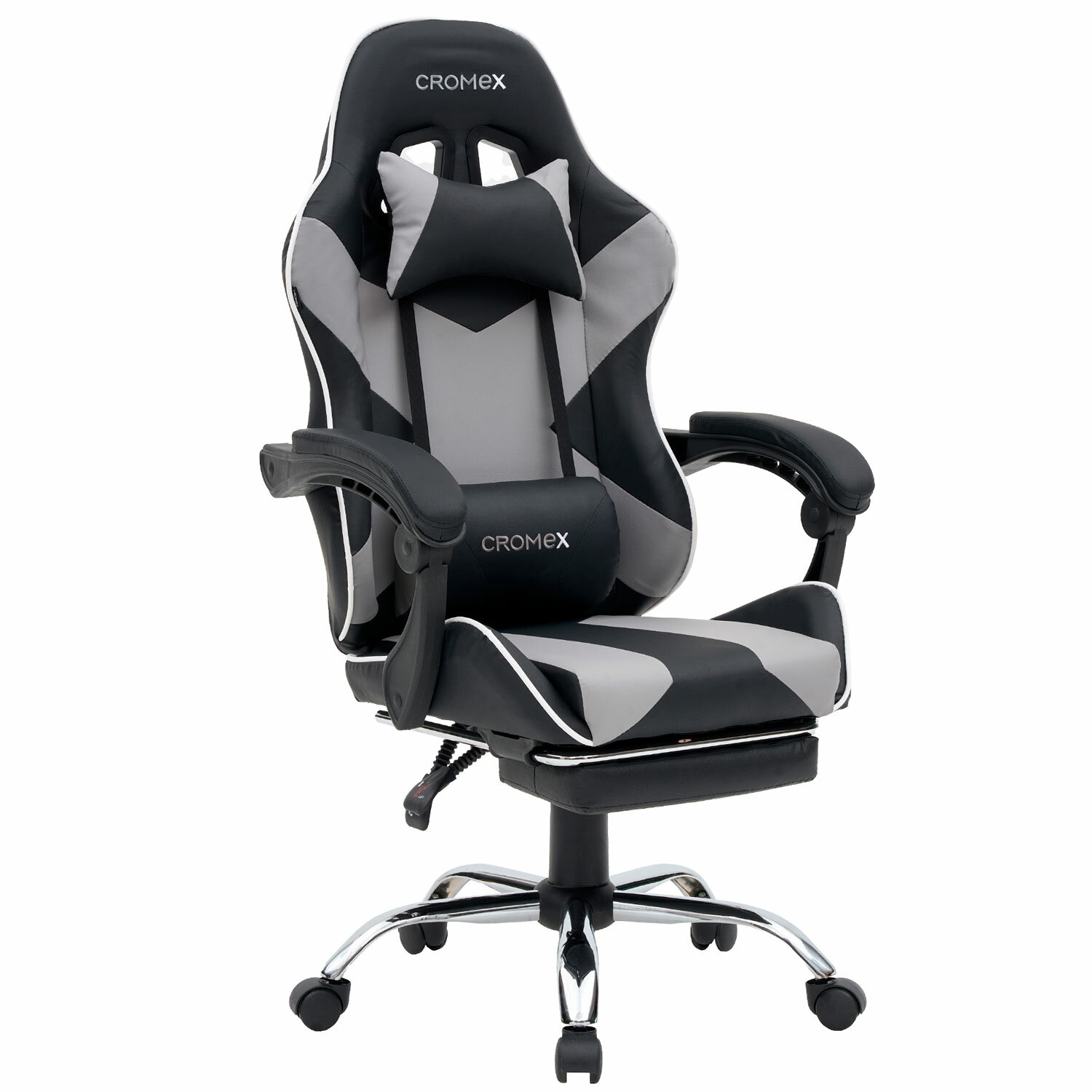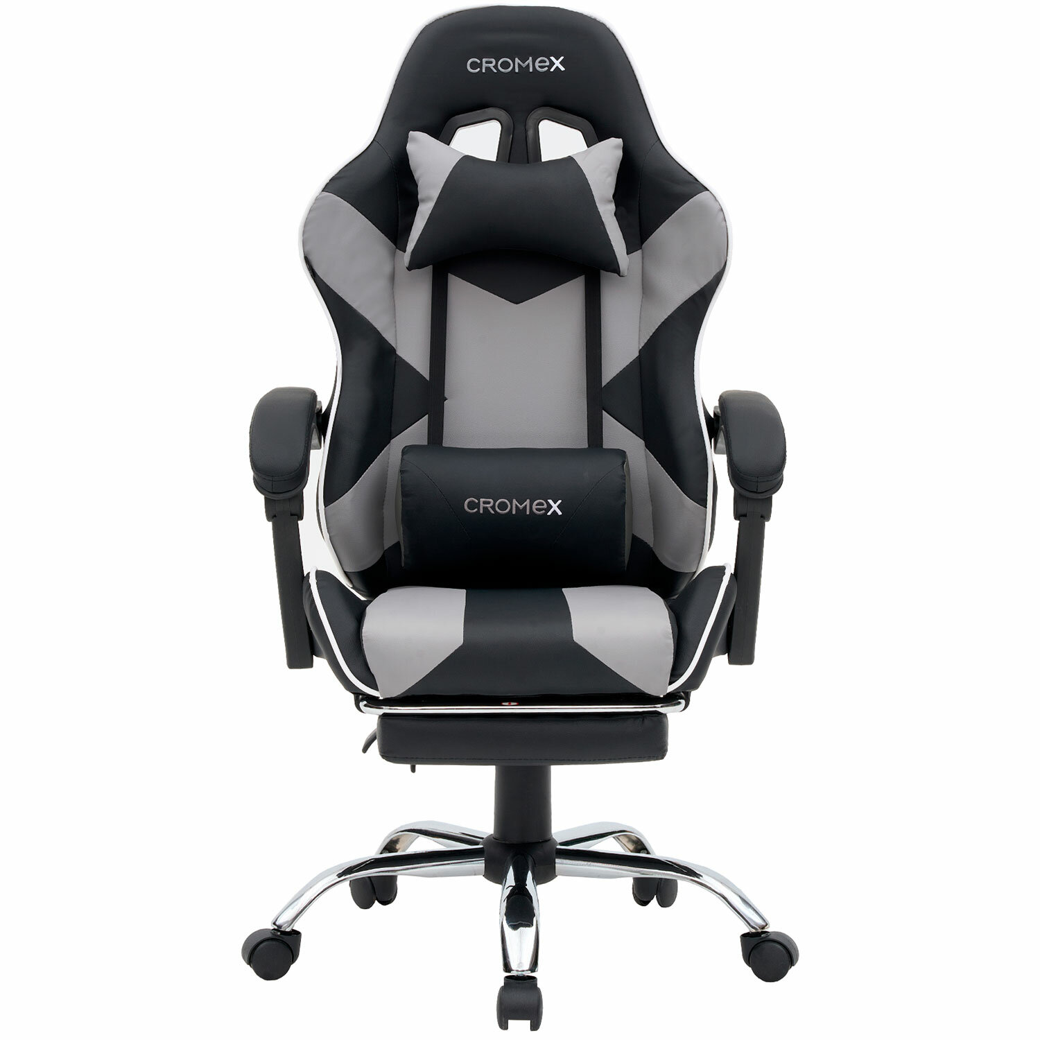 Кресло компьютерное CROMEX (КРОМЕКС) «Wave GM-145», вибромассаж, подножка, подушки, экокожа, черное/серое, 532956