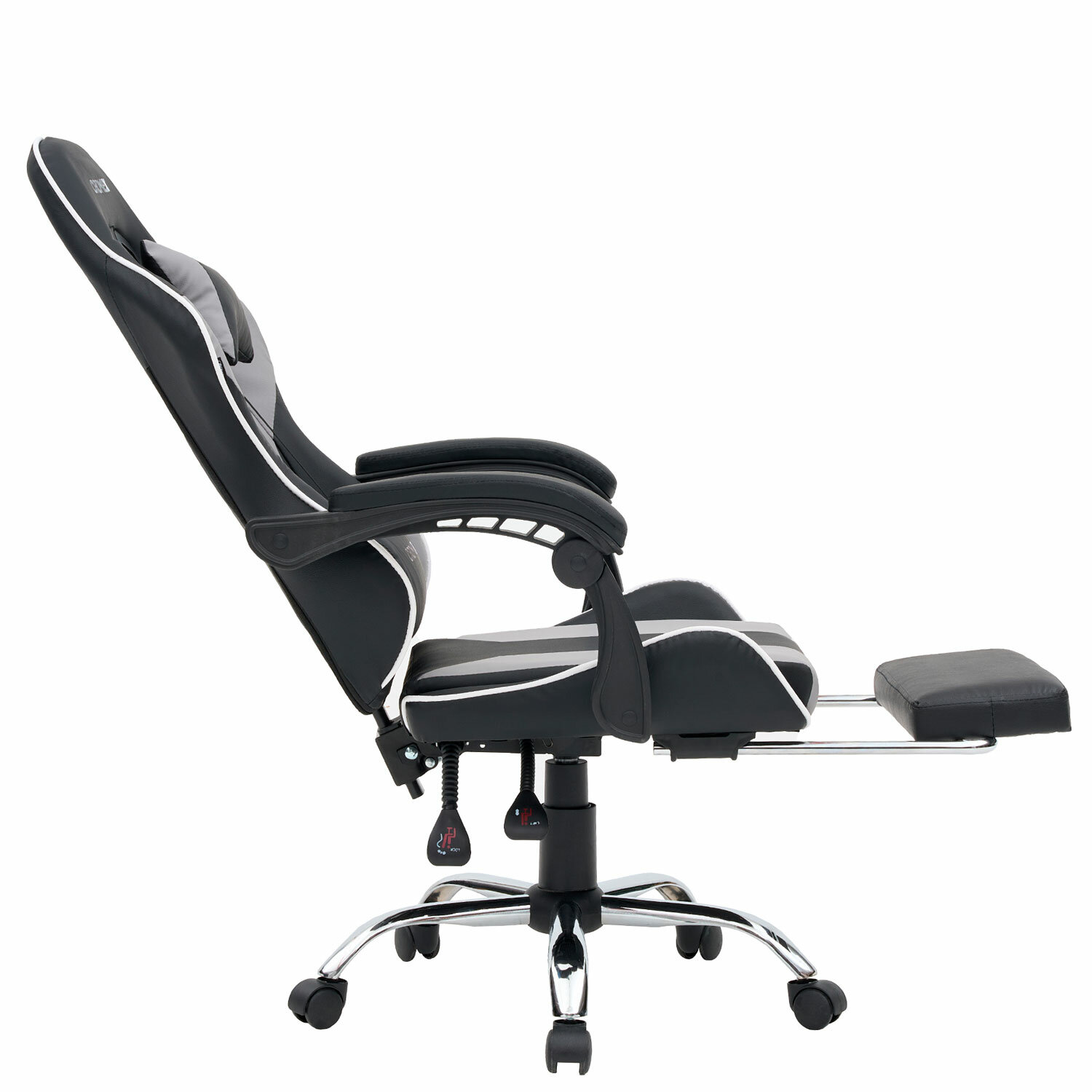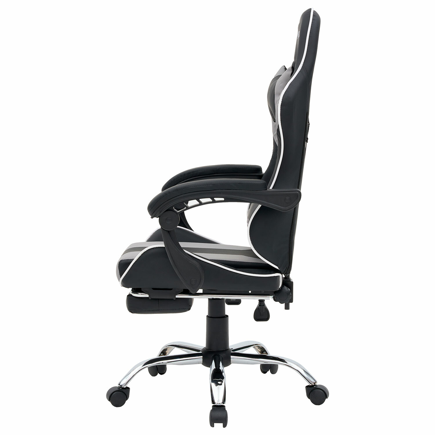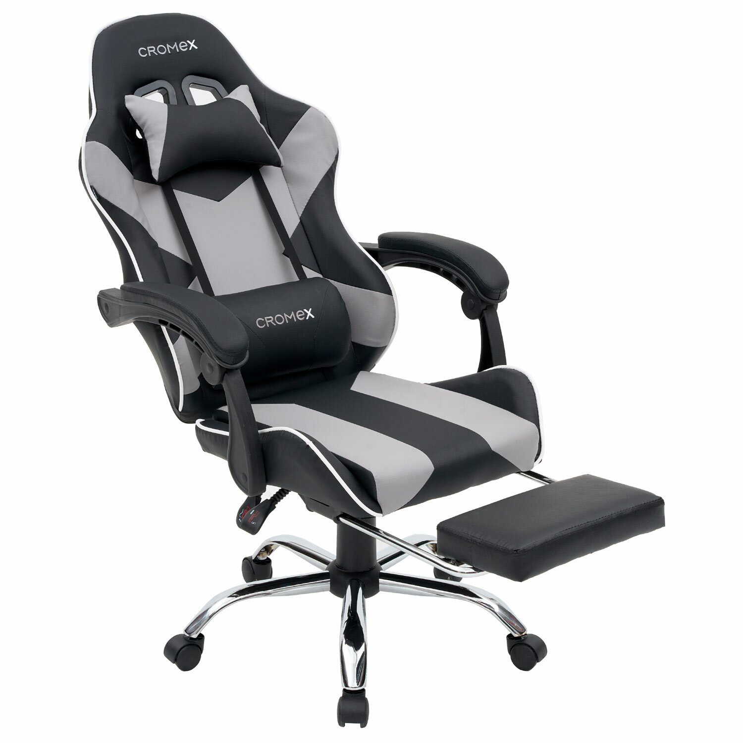 Кресло компьютерное CROMEX (КРОМЕКС) «Wave GM-145», вибромассаж, подножка, подушки, экокожа, черное/серое, 532956