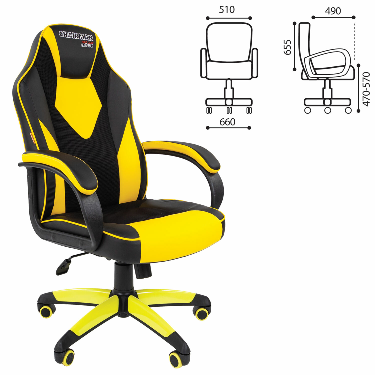 Кресло компьютерное СН GAME 17, ткань TW/экокожа, черное/желтое, 7028515