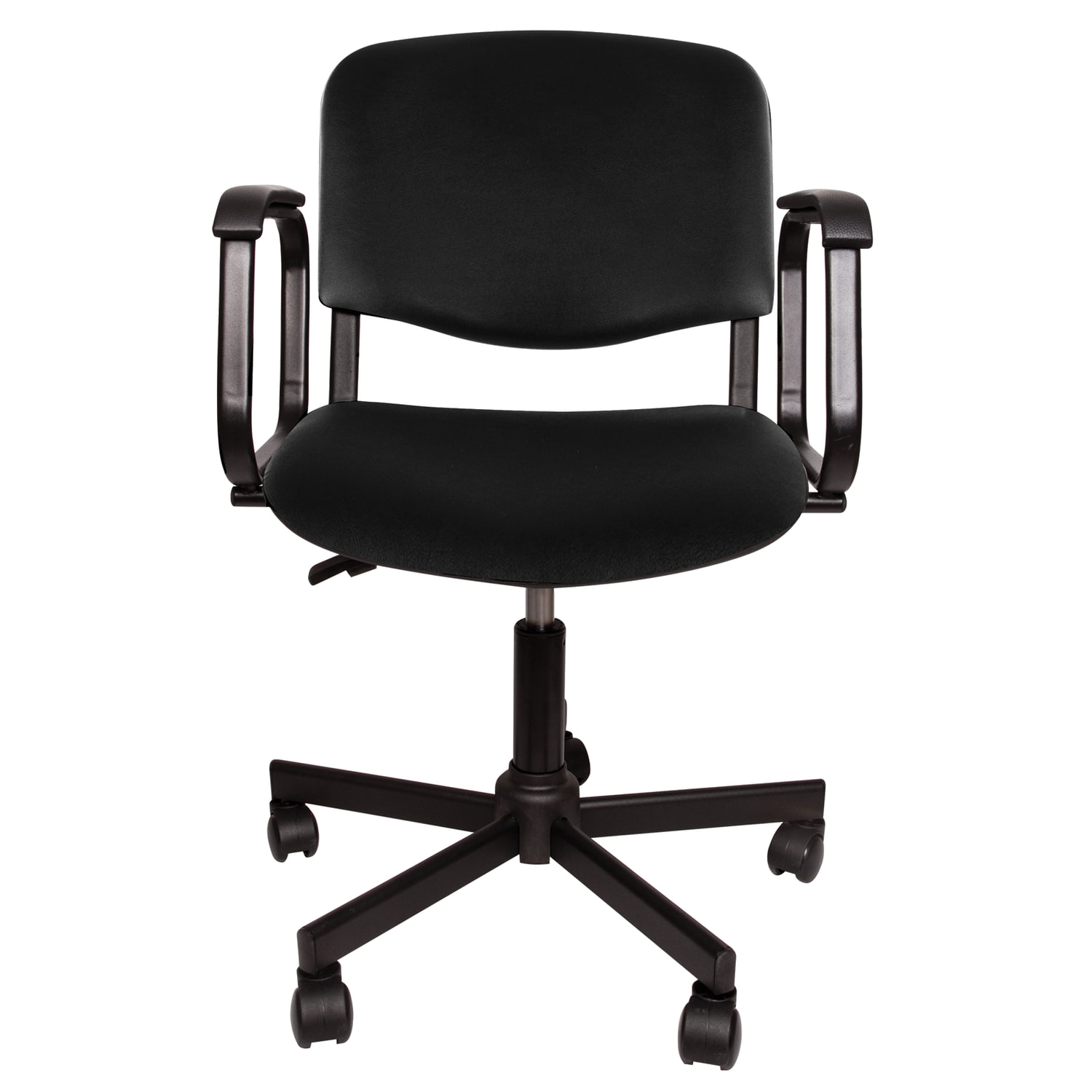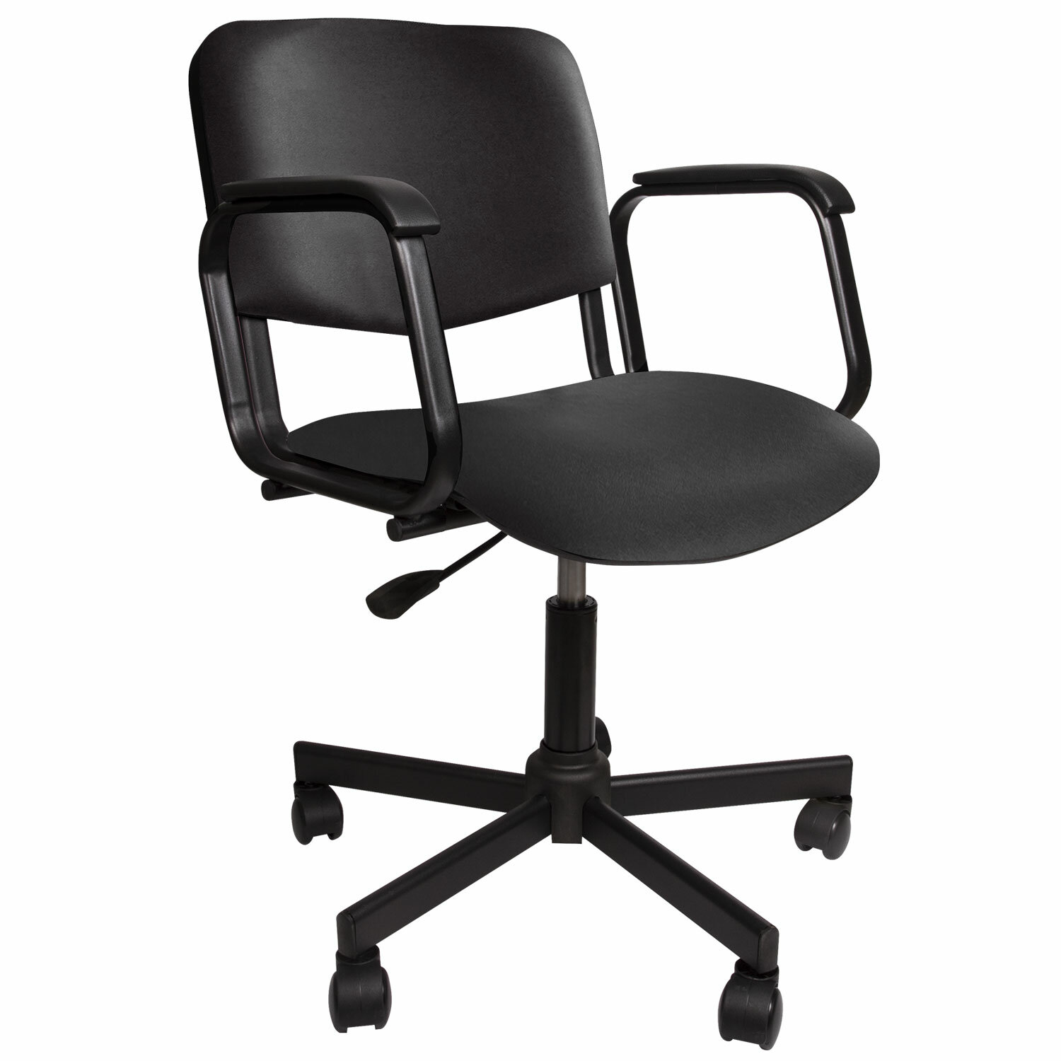 Материал обивки кожзам — практичный и неприхотливый в уходе материал.Эргономичные спинка и сиденье.Сварной металлический каркас обладает повышенной прочностью и надежностью.Подлокотники с мягкими накладками, регулируются по ширине кресла.Металлическое пятилучие.Рекомендуемая нагрузка на кресло до 120 кг.Идеальное сочетание небольшой цены и больших преимуществ!