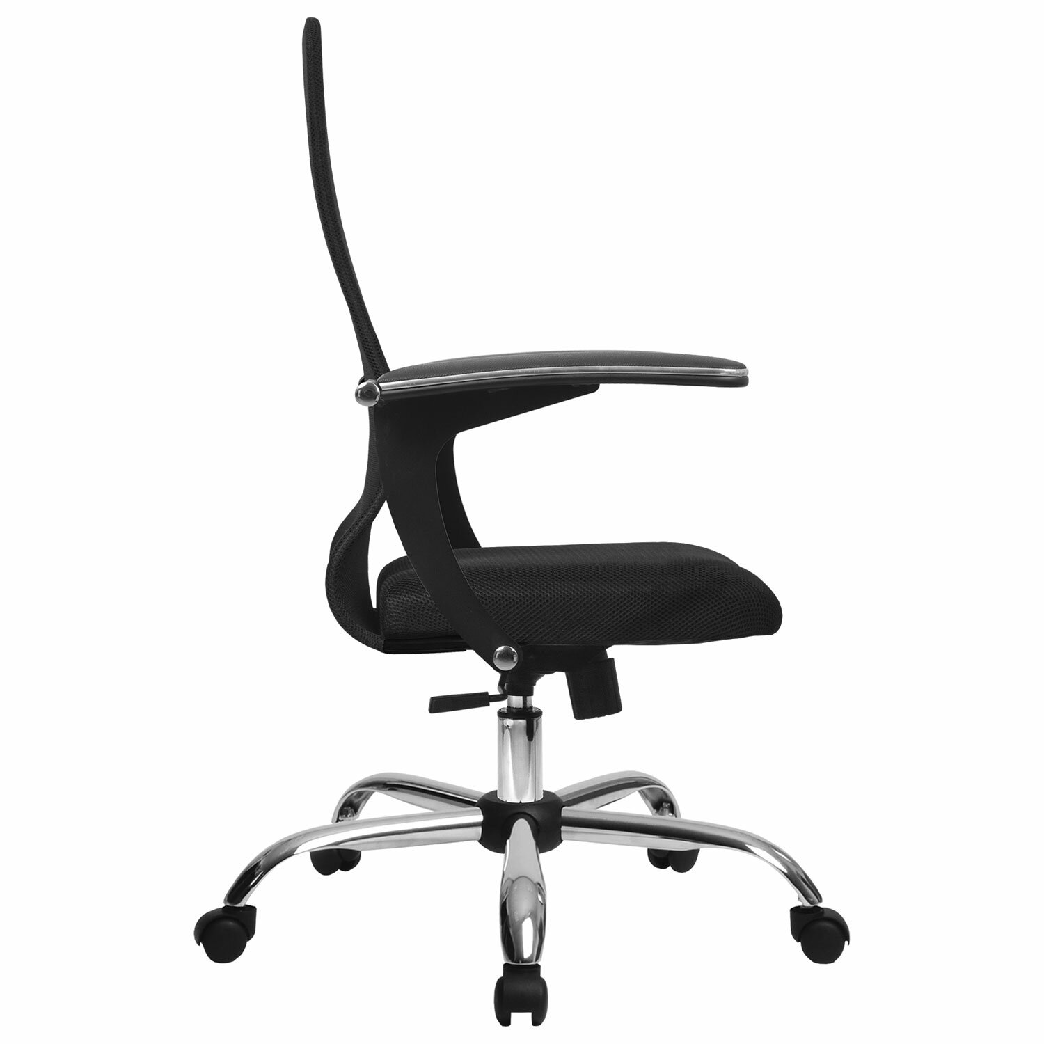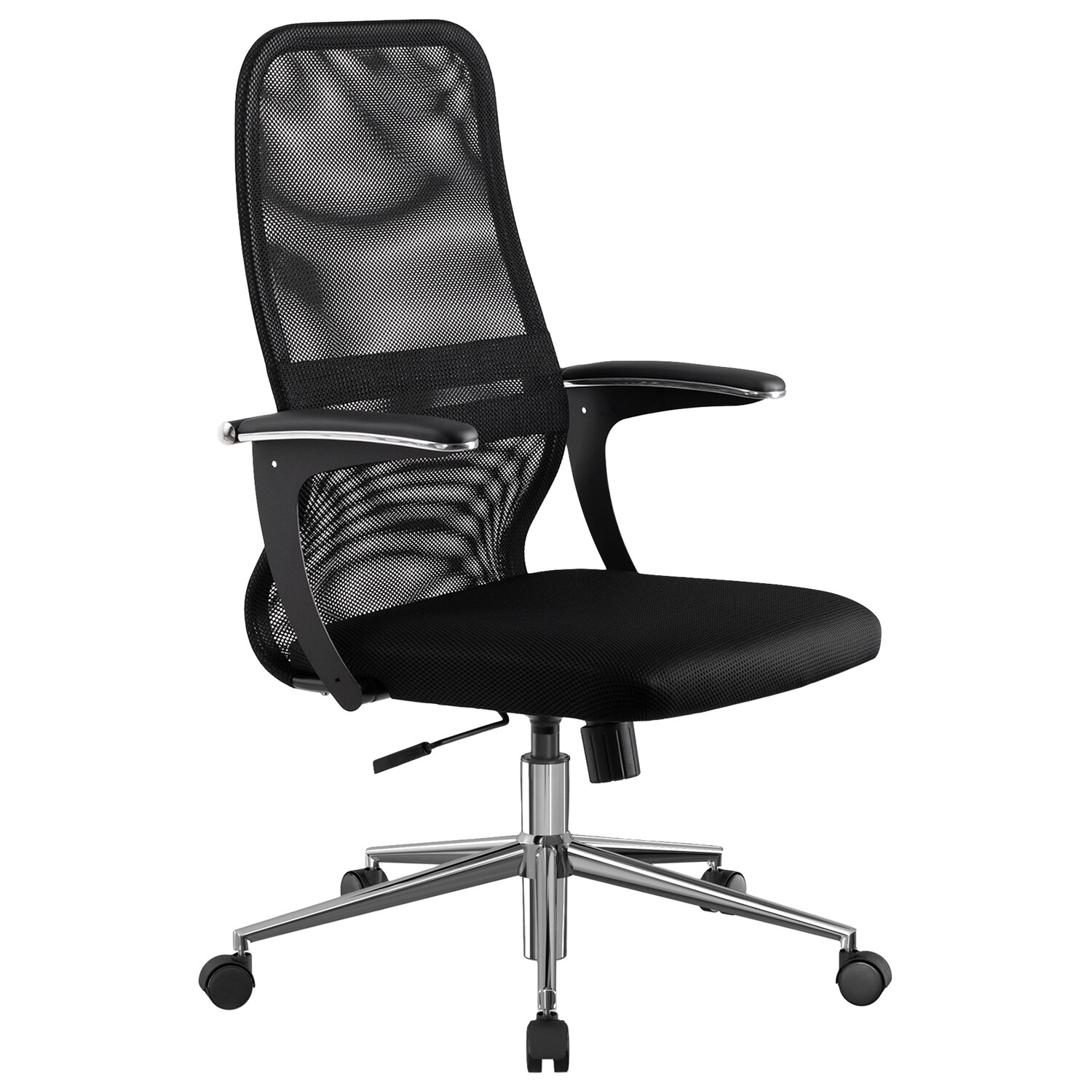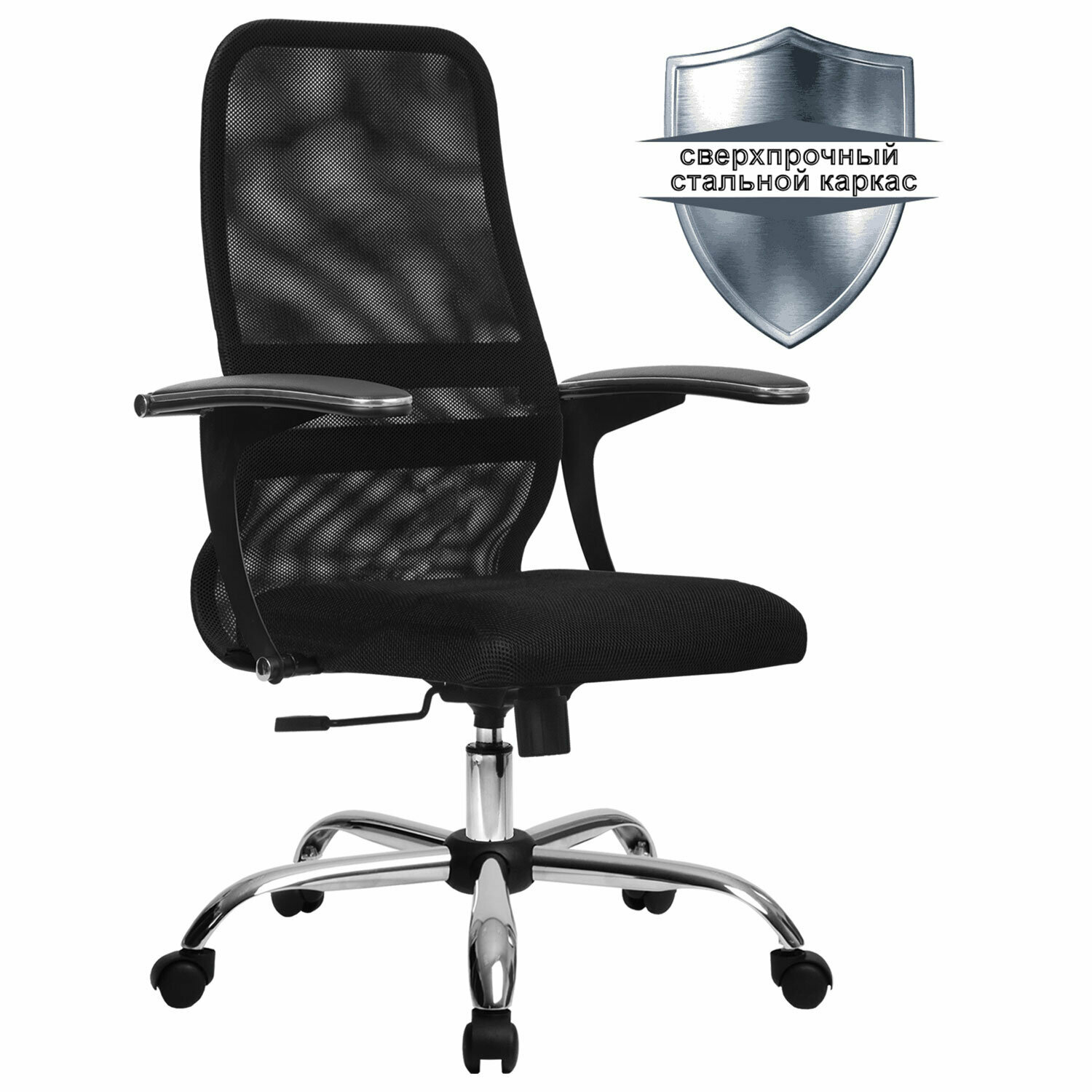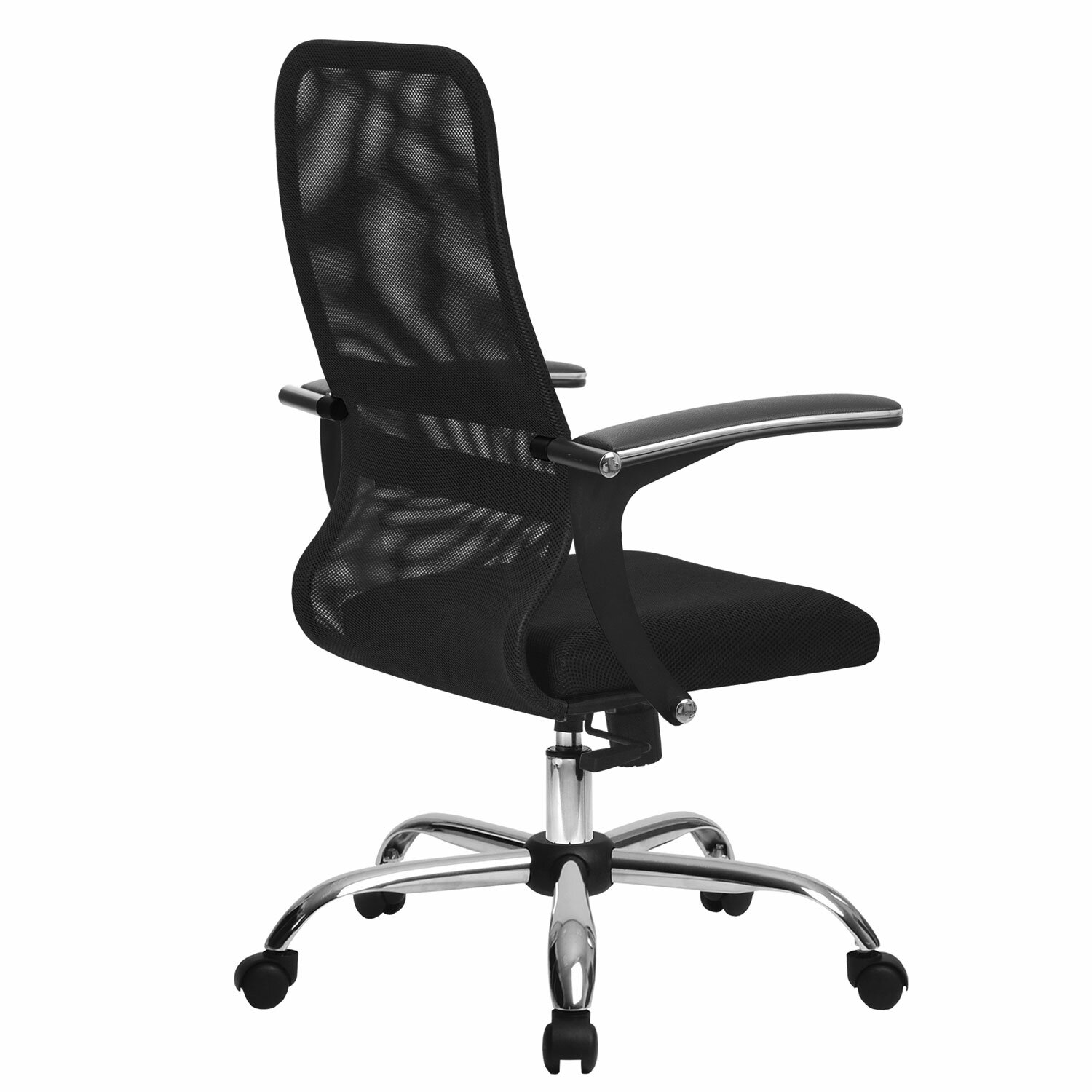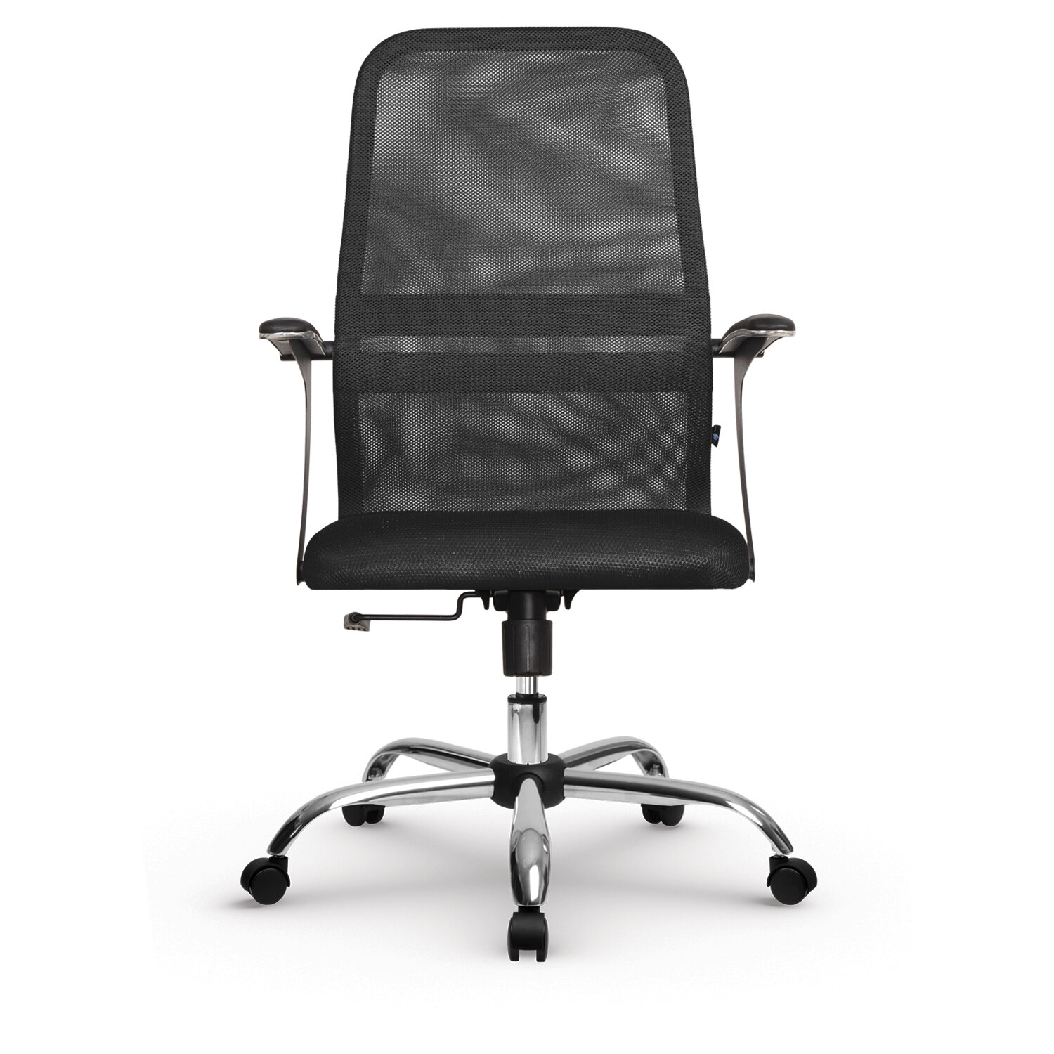 Кресло МЕТТА «SU-C-8-Т» хром, с подлокотниками, ткань-сетка, сиденье мягкое, черное