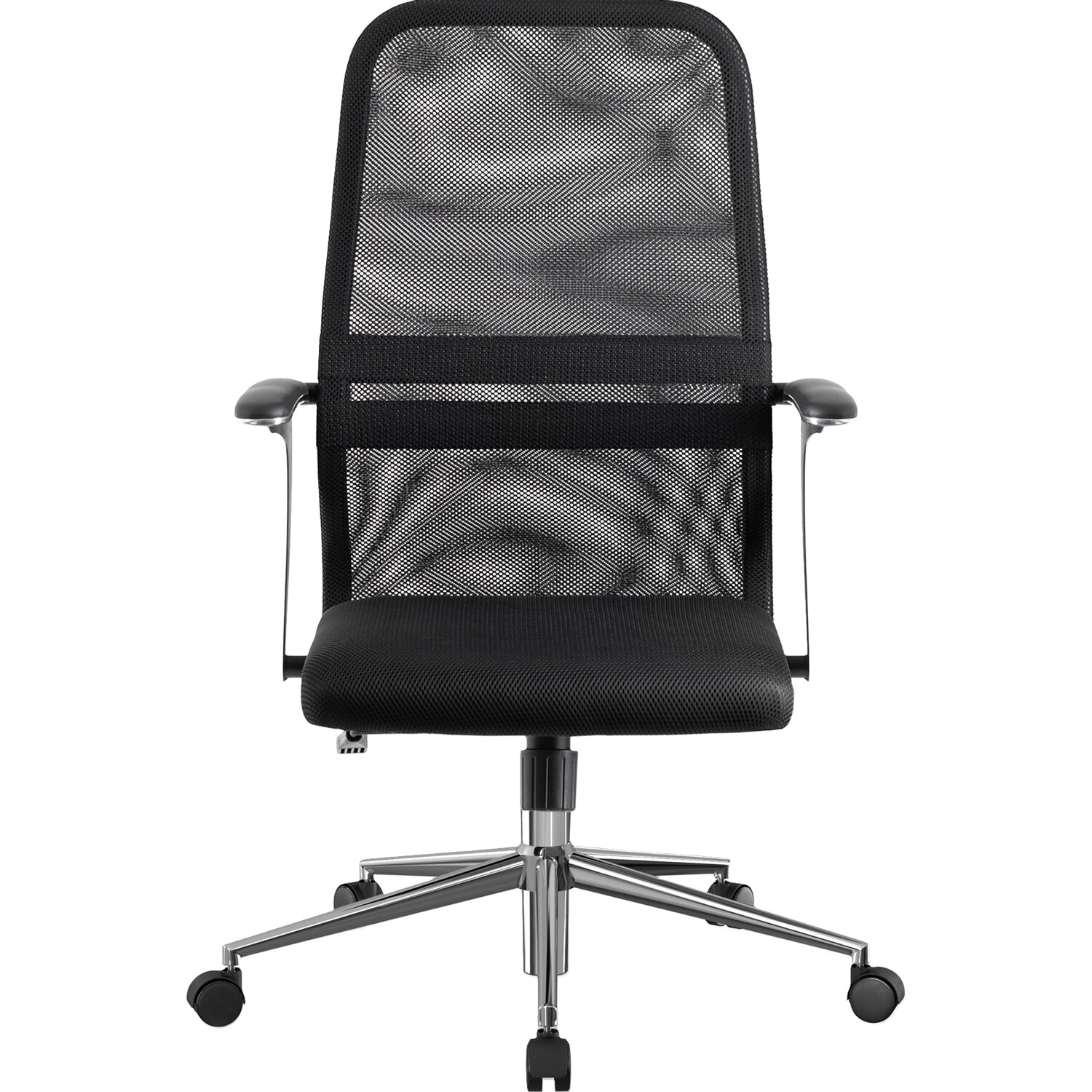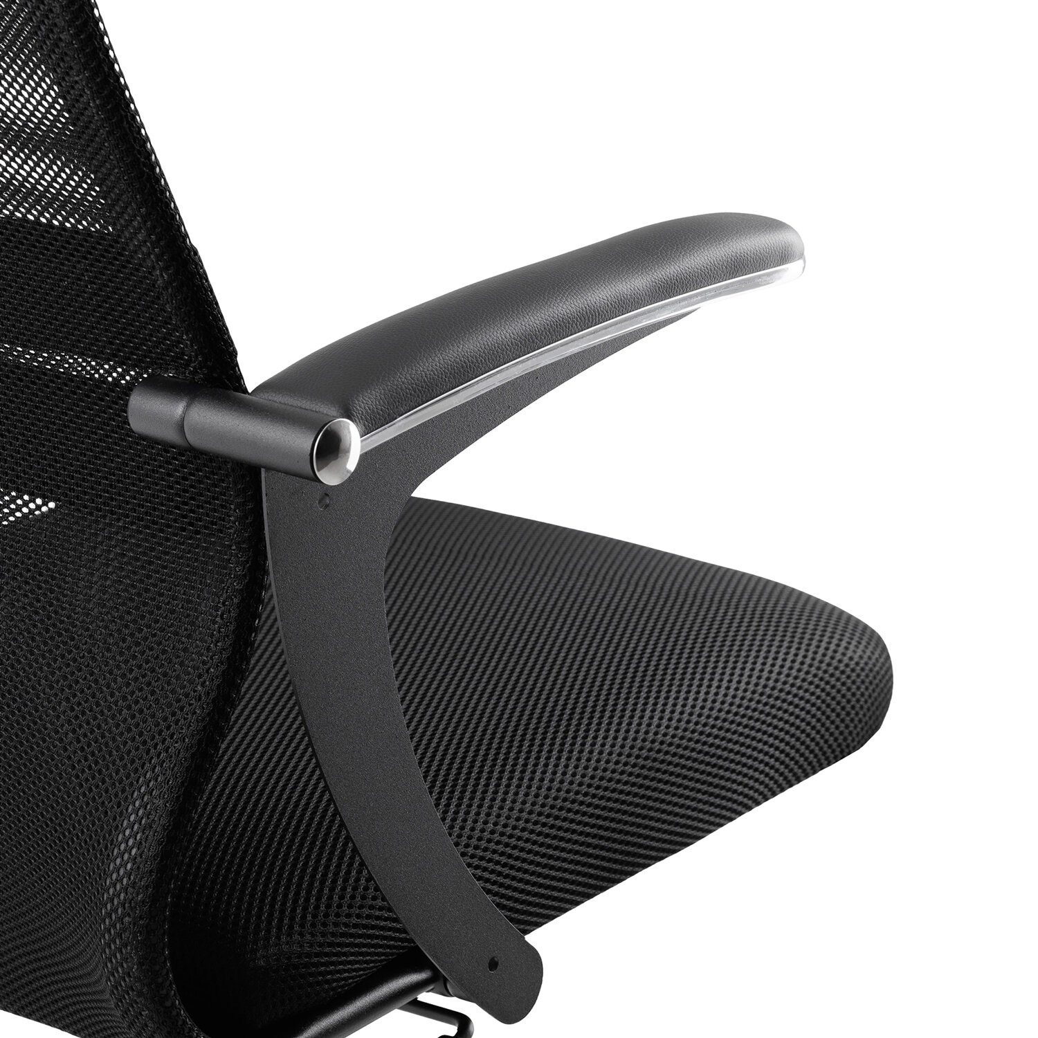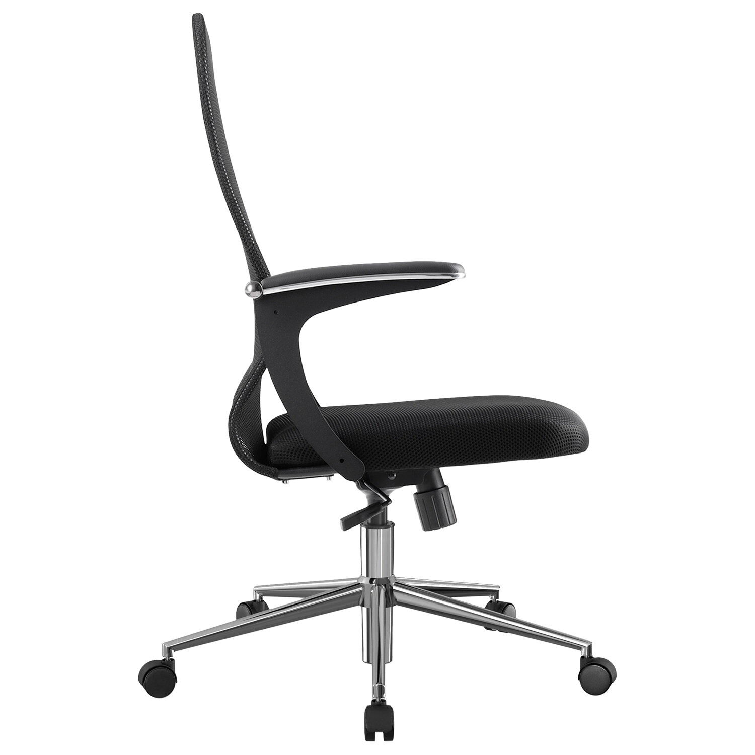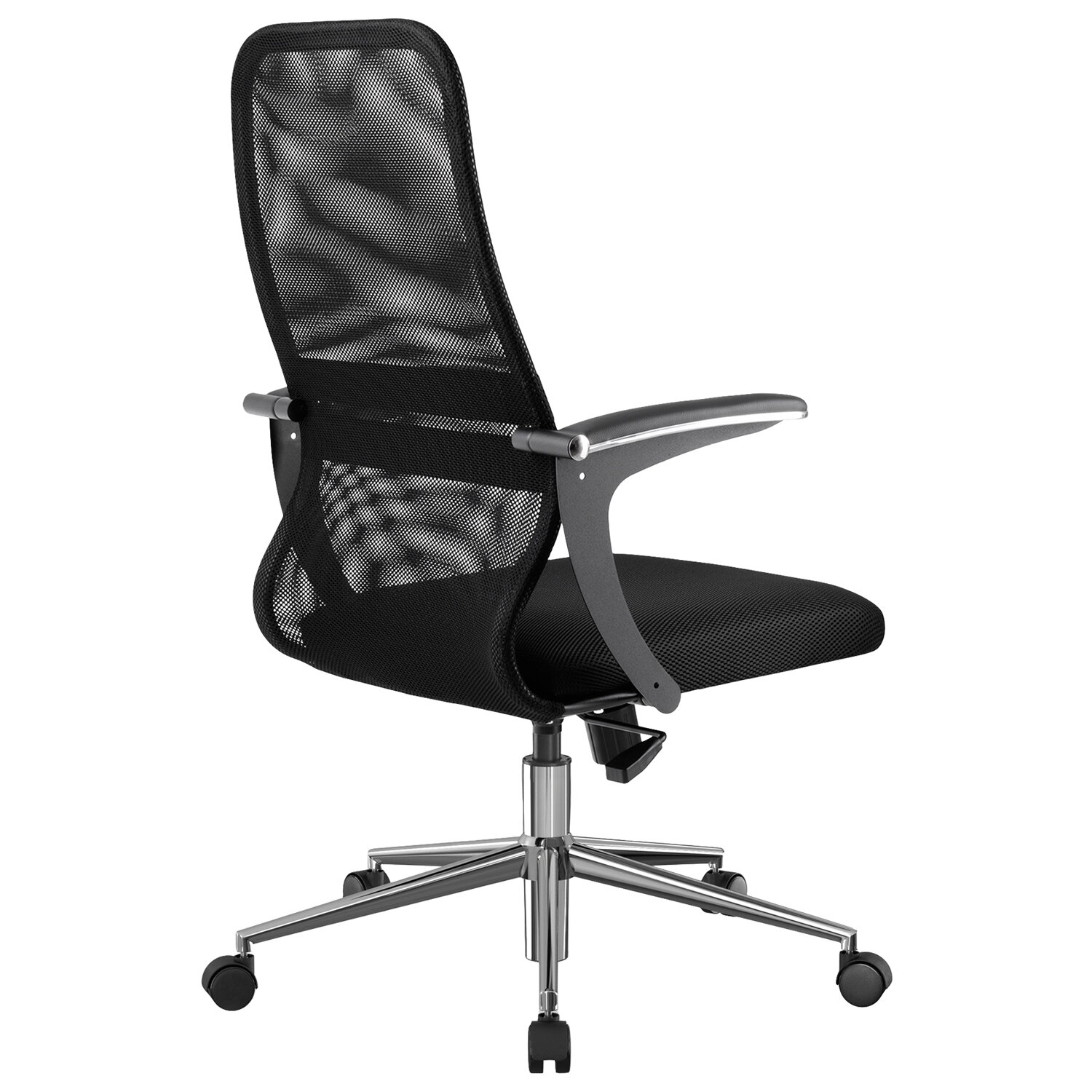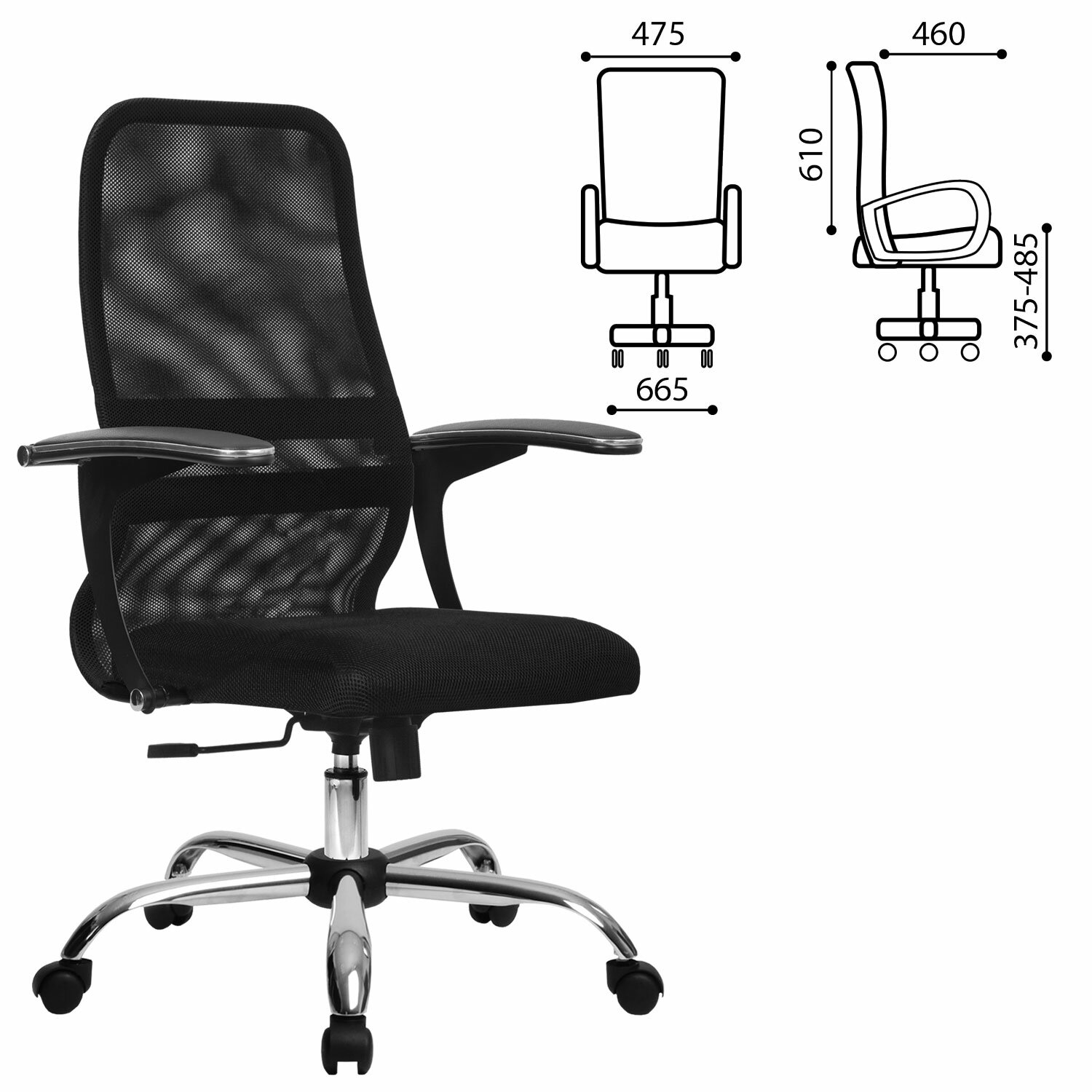 Кресло МЕТТА «SU-C-8-Т» хром, с подлокотниками, ткань-сетка, сиденье мягкое, черное
