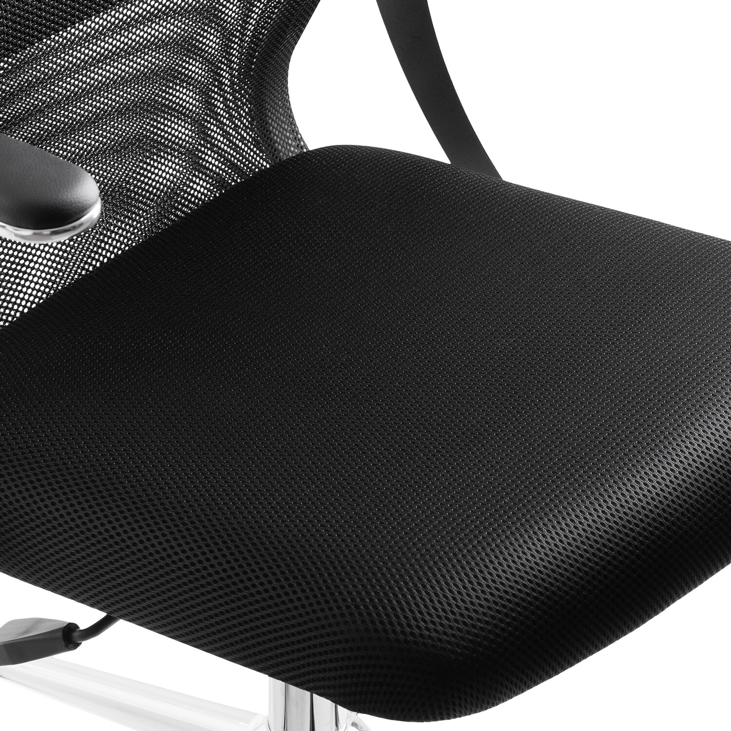 Спинка низкая, эргономичной формы с ярко выраженной поясничной поддержкой.Спинка имеет сверхпрочный стальной каркас с износостойким полимерным покрытием черного цвета.Сиденье средней жесткости, объемное на столярном каркасе.Обивка из износоустойчивой «дышащей» сетчатой ткани.Подлокотники современные «Бумеранг», стальные с полимерным покрытием черного цвета, c хромированным молдингом, с мягкими накладками из экокожи.Пятилучие — металлическое хромированное.Модель оснащена механизмом качания «Top-Gun» с регулировкой под вес и возможностью фиксации в рабочем положении.